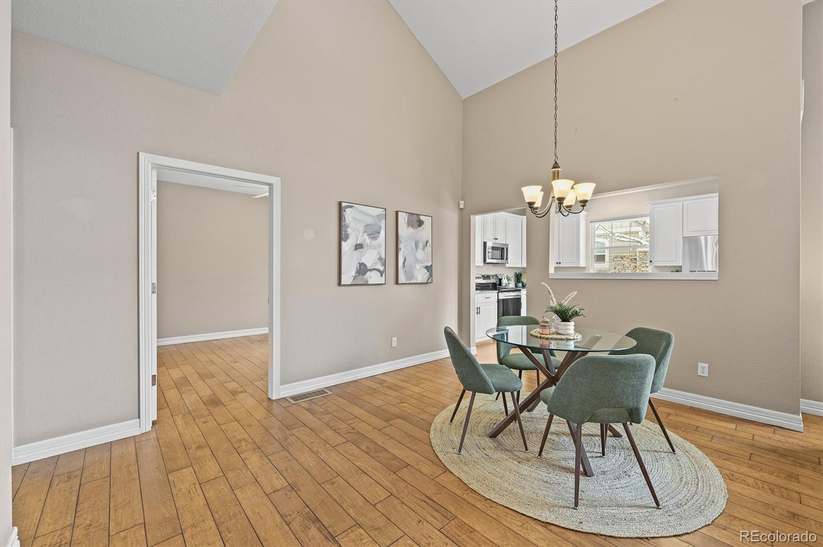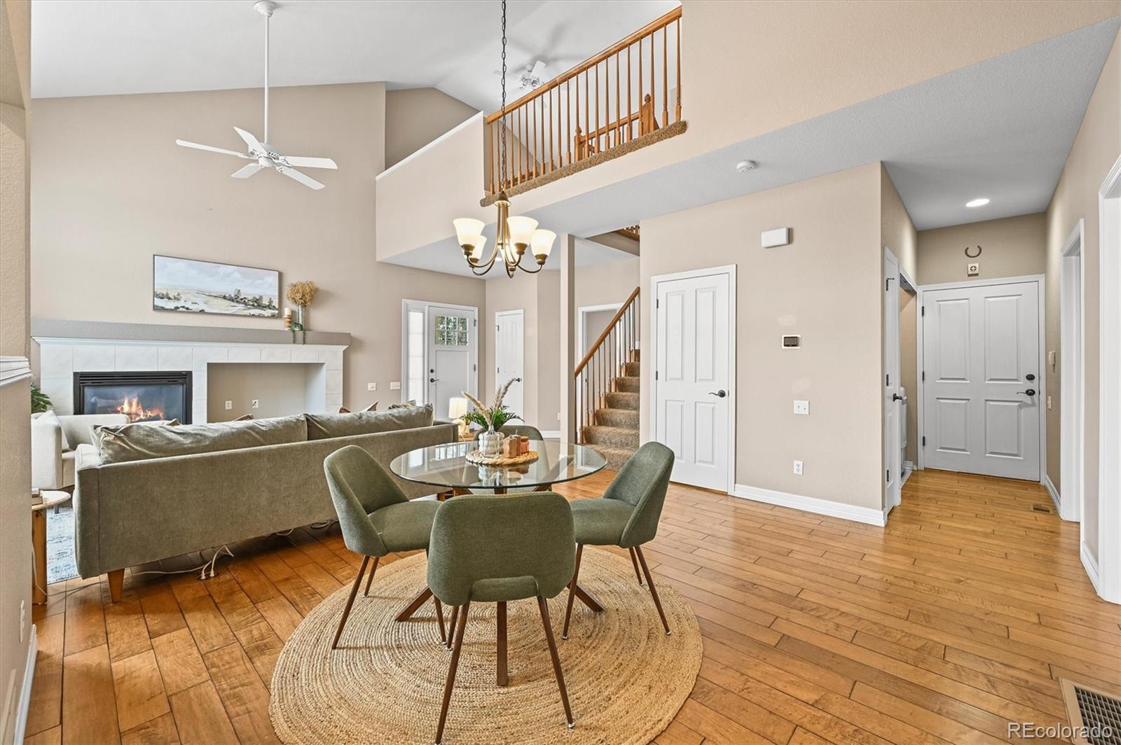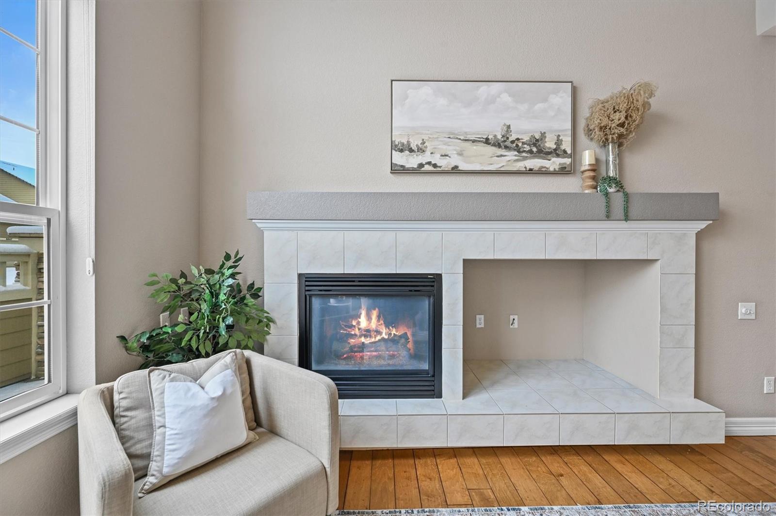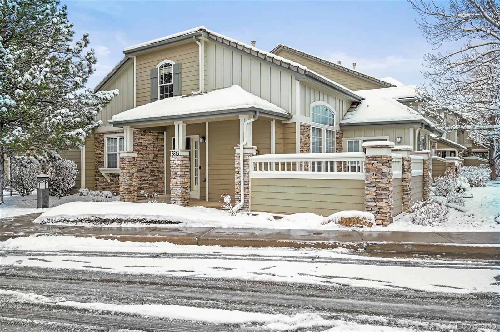 This beautifully maintained end-unit townhome offers a rare combination of space, natural light, and convenience, complete with an attached two-car garage and access to outstanding community amenities. The main level features engineered hardwood flooring throughout, creating a warm and cohesive flow. The living room is highlighted by vaulted ceilings, a gas fireplace, and an inviting openness that seamlessly connects to a generous dining area, ideal for everyday living and entertaining. The updated kitchen is thoughtfully designed with stainless steel appliances, granite countertops, recessed lighting, and a small eating space that offers flexibility for casual meals. Direct access to the private patio provides an effortless extension of the living space, perfect for outdoor relaxation. The main-floor primary suite offers comfort and functionality with plush carpet, two closets including a large walk-in with organizer, and a spacious five-piece bath featuring a jetted soaking tub. A secondary bedroom with walk-in closet, a full bath, and a convenient laundry closet with washer and dryer complete the main level. Upstairs, a bright and open loft with carpeting provides flexible space ideal for a home office, sitting room, or play area, complemented by a half bath. The open basement presents an excellent opportunity to expand the living space to suit your needs, already equipped with egress windows, a utility sink, and a radon mitigation system. Ideally located near trails, parks, shopping, and dining, this home also enjoys access to the amenities at 4 rec centers throughout Highlands Ranch.