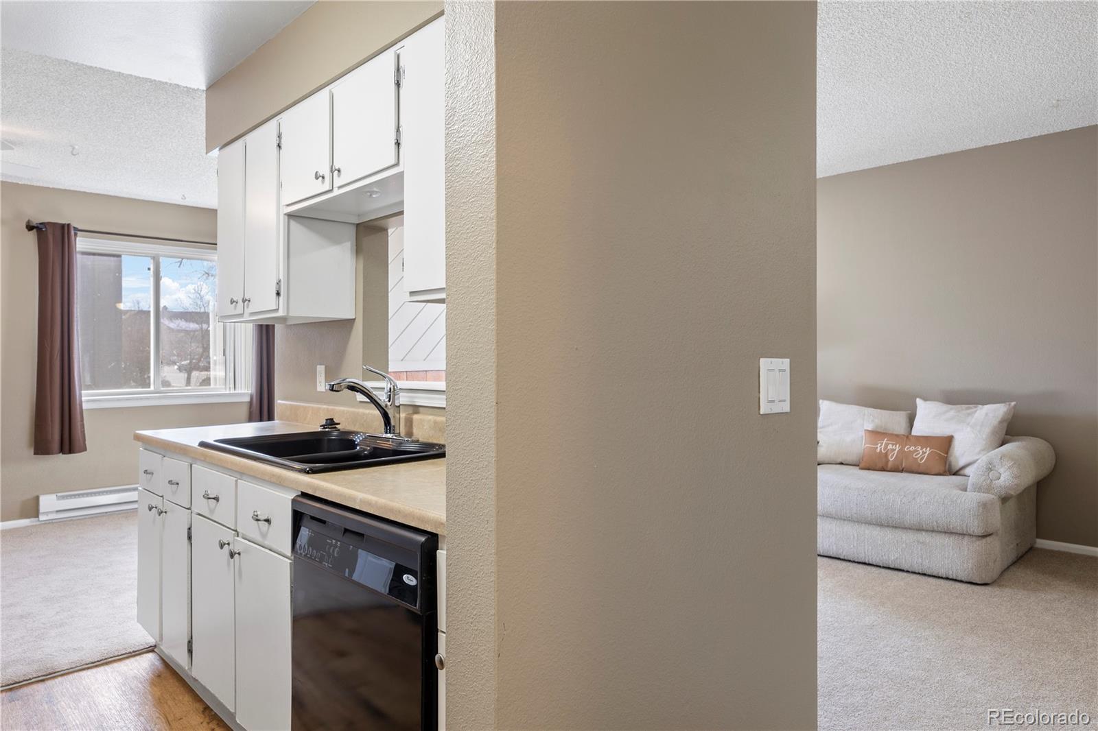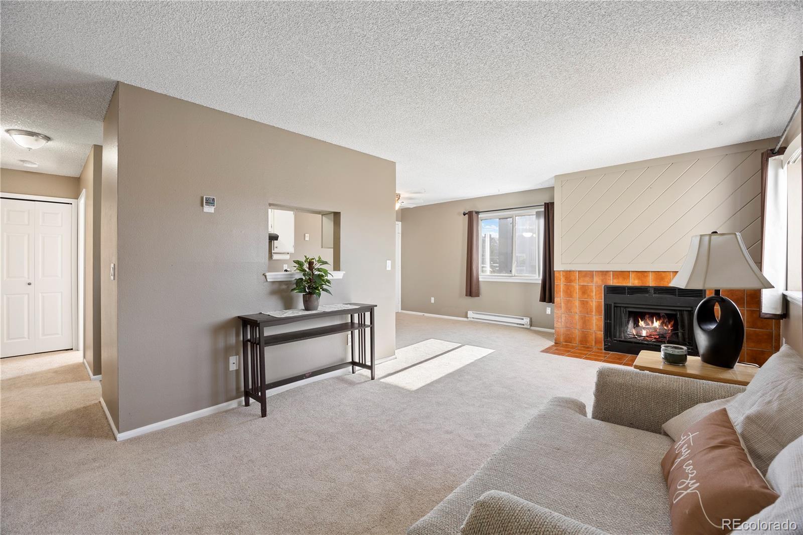 Charming and inviting, this one-bedroom, one-bathroom, ground floor condo is nestled in Lake Chalet community. Brand new carpet has been installed throughout the unit. The front of the unit faces west, sheltered with trees, mountain views and overlooks a lake. The primary bedroom is a cozy retreat, featuring a spacious walk-in closet, a new ceiling fan, and a sliding door that leads to the lovely courtyard. The bright and cheerful kitchen offers plenty of cabinet space, and the dining area also opens to the courtyard. You'll find ample storage with three large hall closets and a private storage space. Cozy up by the wood-burning fireplace on those chilly Colorado nights. The unit also boasts a laundry room equipped with washer and dryer and convenient storage cabinets. Delight in the community amenities, including a pool and tennis courts, and enjoy easy access to Hwy. 285, E-470, Southwest Plaza, parks, trails, shopping, and dining. There's plenty of parking for your guests in the complex. Why rent when you can make this charming condo your own?