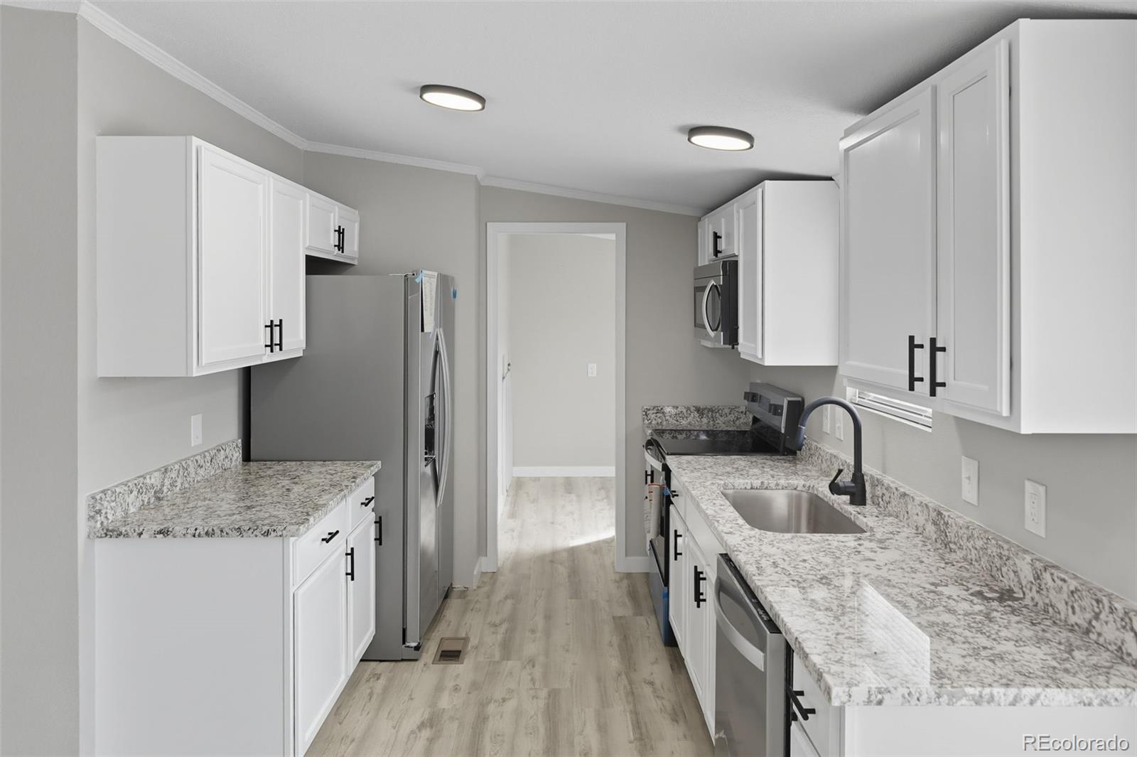 Step into modern comfort with this beautifully fully remodeled double wide in Front Range Community. Every detail has been upgraded—from the brand-new roof to the sleek finishes inside. Enjoy year-round comfort with central air conditioning and the convenience of a washer and dryer included. The open floor plan features fresh flooring, updated kitchen and bath, and stylish fixtures throughout. This move-in ready home combines affordability with quality. Located in a well-maintained community close to shopping, dining, and easy highway access, it’s the perfect blend of value and lifestyle.