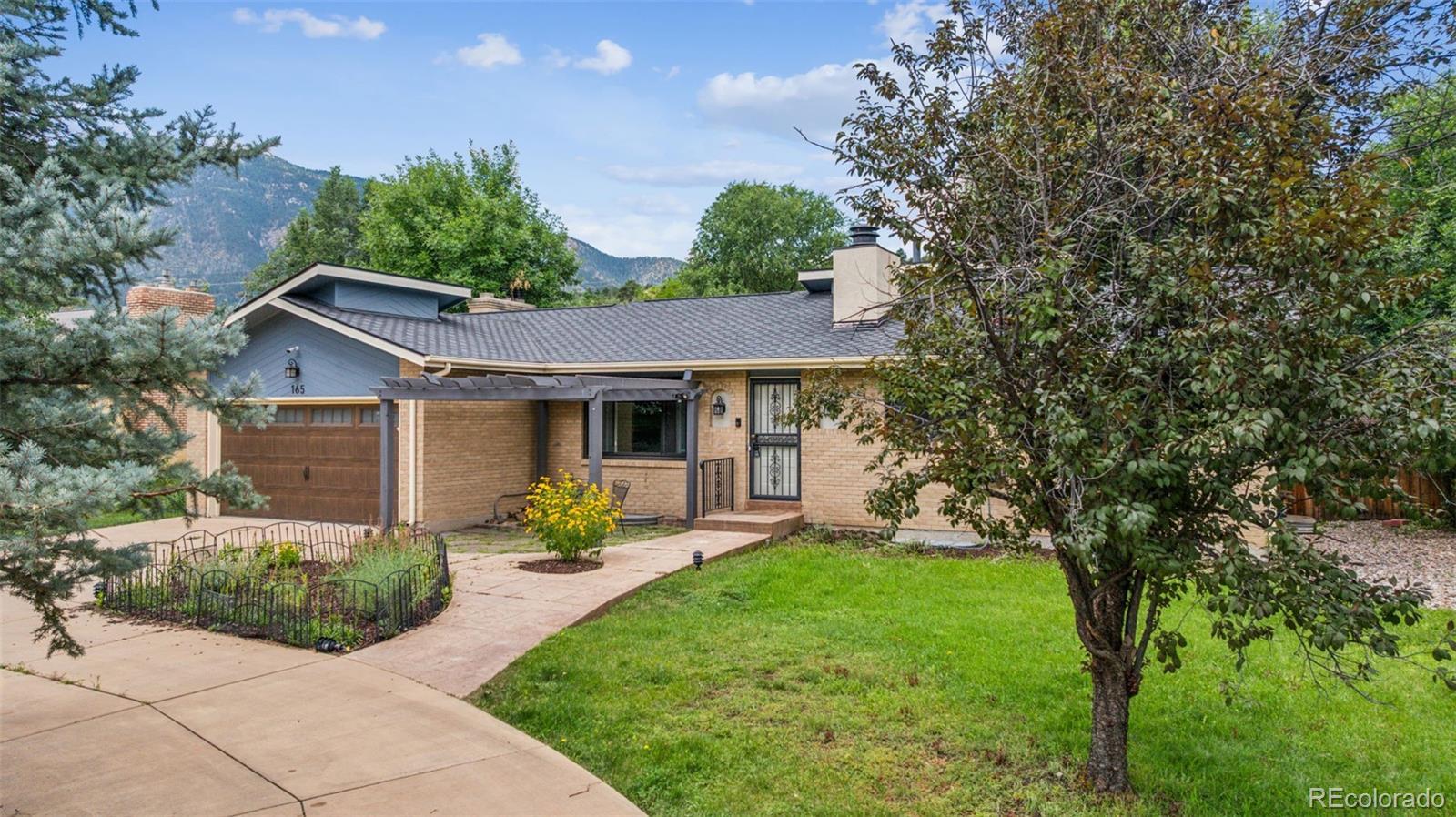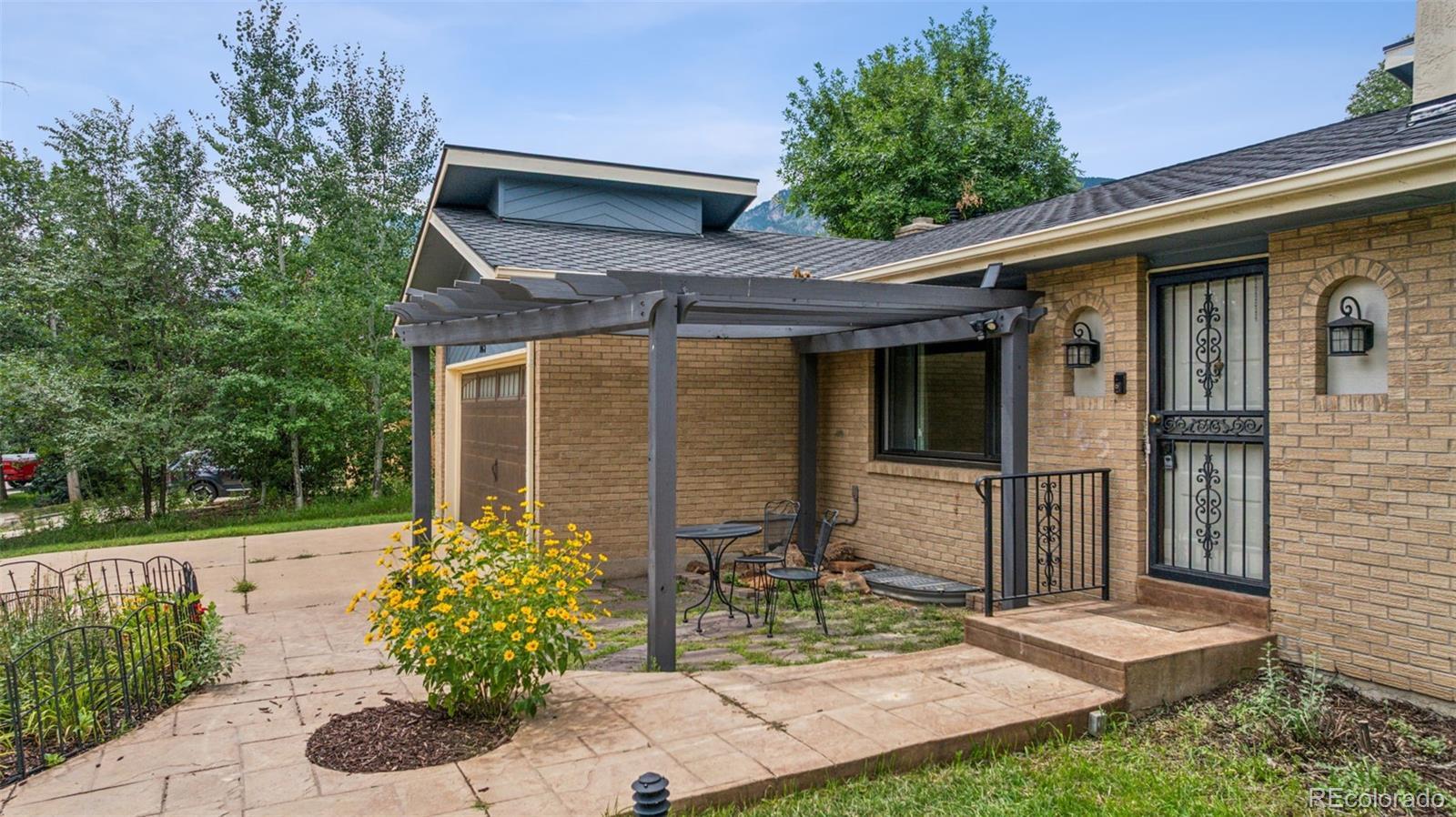 Walk to the Country Club of Colorado from this ranch home located in the heart of Cheyenne Mountain. Circular driveway & front pergola set the stage where cul-de-sac living answers the quest for calm. Open concept living, dining, kitchen AND hearth room lend to flexible living. Three large bedrooms located on the main level include the primary bedroom with ensuite bath. A full, hall bath with double vanity eliminate the battle for sinks! Just refinished, hardwood floors highlight the new granite kitchen counters. Gas fireplace in hearth room readies you for the Colorado crisp air. From here, walkout to the private, tiered back yard. Primary bathroom features custom tile work & fixtures. Bonus! The ceramic tile floor is radiantly heated. The fourth of 6 bedrooms is downstairs. It has a gas fireplace to warm a bedroom, office or study. Large entertainment area in basement with round, wood-burning fireplace and pillow den! Spacious laundry room provides space for a second frig and has 3 storage closets. Two additional bedrooms and a full bath in basement max this bedroom count to 6! Conveniently entertain many guests in the large lower back yard with spacious deck, gas line for grill, and smaller deck for potential hot tub. Storage shed and gated back yard (both wings) for access. Short commute to Fort Carson, close to parks, schools and shopping.