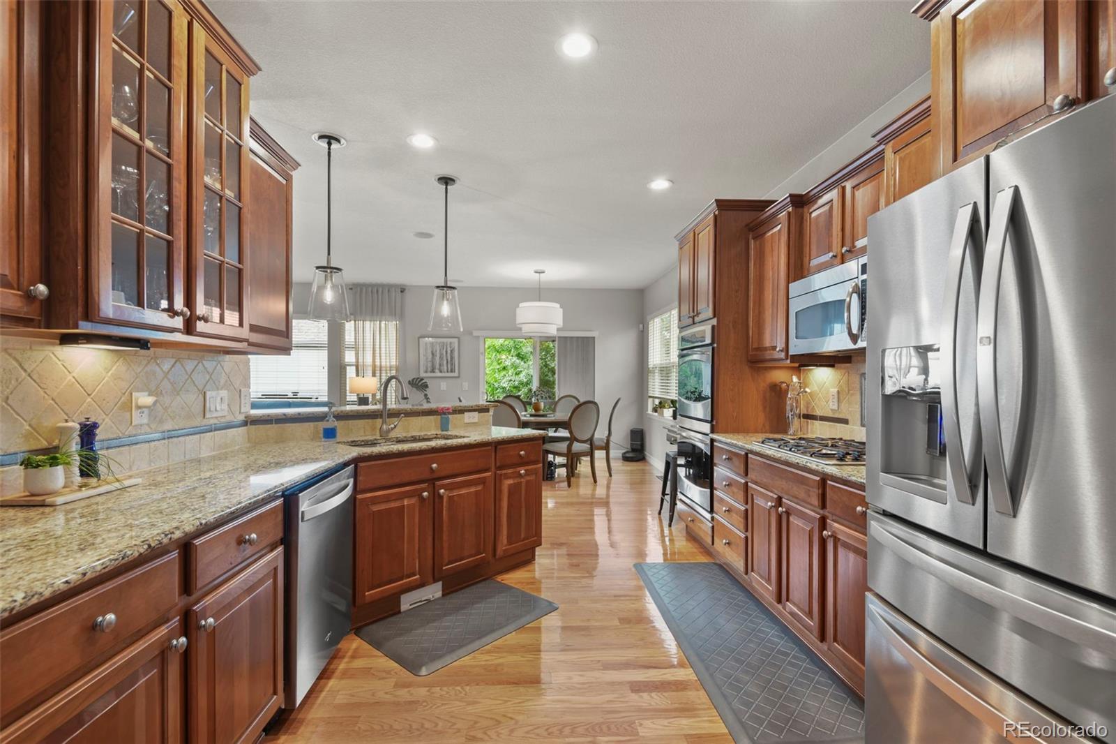 Gorgeous Ranch on a Corner Lot in desirable Heritage Todd Creek! 3 Bed, 3 Bath, 2.5 Car Garage-Golf Cart Parking w/ a finished basement! Todd Creek Golf Club is a gated community, vibrant and resort-style community! Large covered west facing front porch! Tons of Natural light as you enter the foyer! Great Kitchen w/ breakfast bar-Gleaming Hardwood floors-Granite Counters-Stainless Appliances-Pantry-Double Oven! Also has Eat in Kitchen w/ slider to this New Custom Trex Deck w/ Cable railing-NEW Privacy Shade installed! Huge Formal Dining Room or use for Piano/Reading Room! Family room has tons of windows/natural light-Gas Fireplace-Custom Mantle! Primary Suite has an 5 Pc bath w/ Oval soaking Tub-Shower & walk in closet! 2nd Bedroom currently an office-Light & Bright w/ a Full bathroom for guests! Professionally Finished Walkout Basement is perfect for entertaining! Custom Bar w/Leather Granite Counter-HEATED Tile floor-Darts/Poker Area w/ sliding door to a 2nd covered patio! 3rd Bdrm & a large 3/4 Bath-Huge Custom Shower - Storage! Mature Landscaping & trees offer privacy and lots of room between neighbors! Fully Finished 2.5 Car garage has epoxy floor-Golf Cart parking-50 Amp Service for RV-Shelves-Workbench with entry into the Mud room-Large Laundry Room! New Furnace 2023 - New H2O 2021 ! Luxury living with tons of activities to be a part of, including Concerts-Shows-Parades! Heritage Todd Creek amenities Include the Public Golf Course, Clubhouse, Fitness Center/Classes, Pool & Spa, Library, Tennis Courts & Delightful Restaurant/Bar to Enjoy!! Don’t miss this opportunity!!