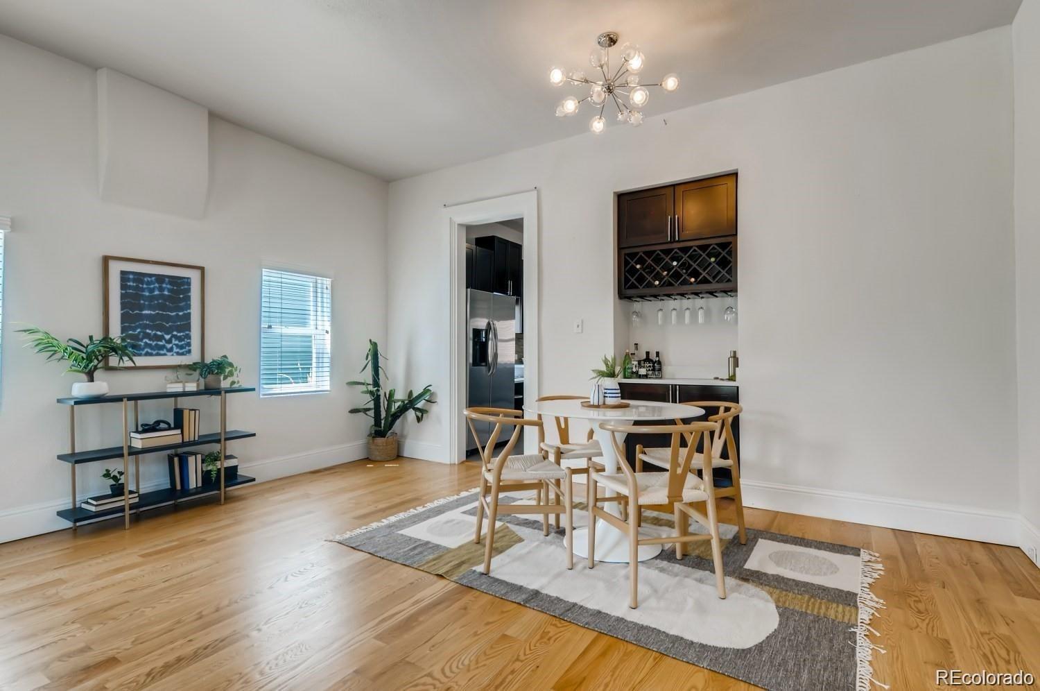 Nestled in the desirable Potter Highlands and truly the best value in the area .This single family home offers the ideal blend of modern design and Victorian charm, small yard large enough for a garden, Exempt from HOA fees and requiring minimal maintenance, this home boasts proximity to numerous amenities and proximity to Lohi and Downtown Denver, including Happy Camper pizza, Little Man Ice Cream and more. The open floor plan, high ceilings, neutral colors, new roof ,hardwood floors, remodeled kitchen with quartz countertops and stainless steel appliances, and spacious unfinished basement with ample storage (potentially requiring excavation to raise the ceiling height) contribute to the home’s allure. The two main floor bedrooms comfortably accommodate a king-sized bed, laundry is conveniently located on the main floor, and the home is adorned with beautiful finishes throughout, oversized 1 car parking ( no garage) in back with alley access . Please note : Basement is more of a cellar type configuration however could be excavated and has basement potential! Do not overlook this exceptional opportunity; you will not be disappointed. Home will be sold "as is"