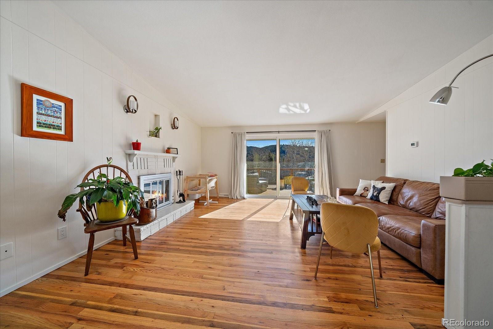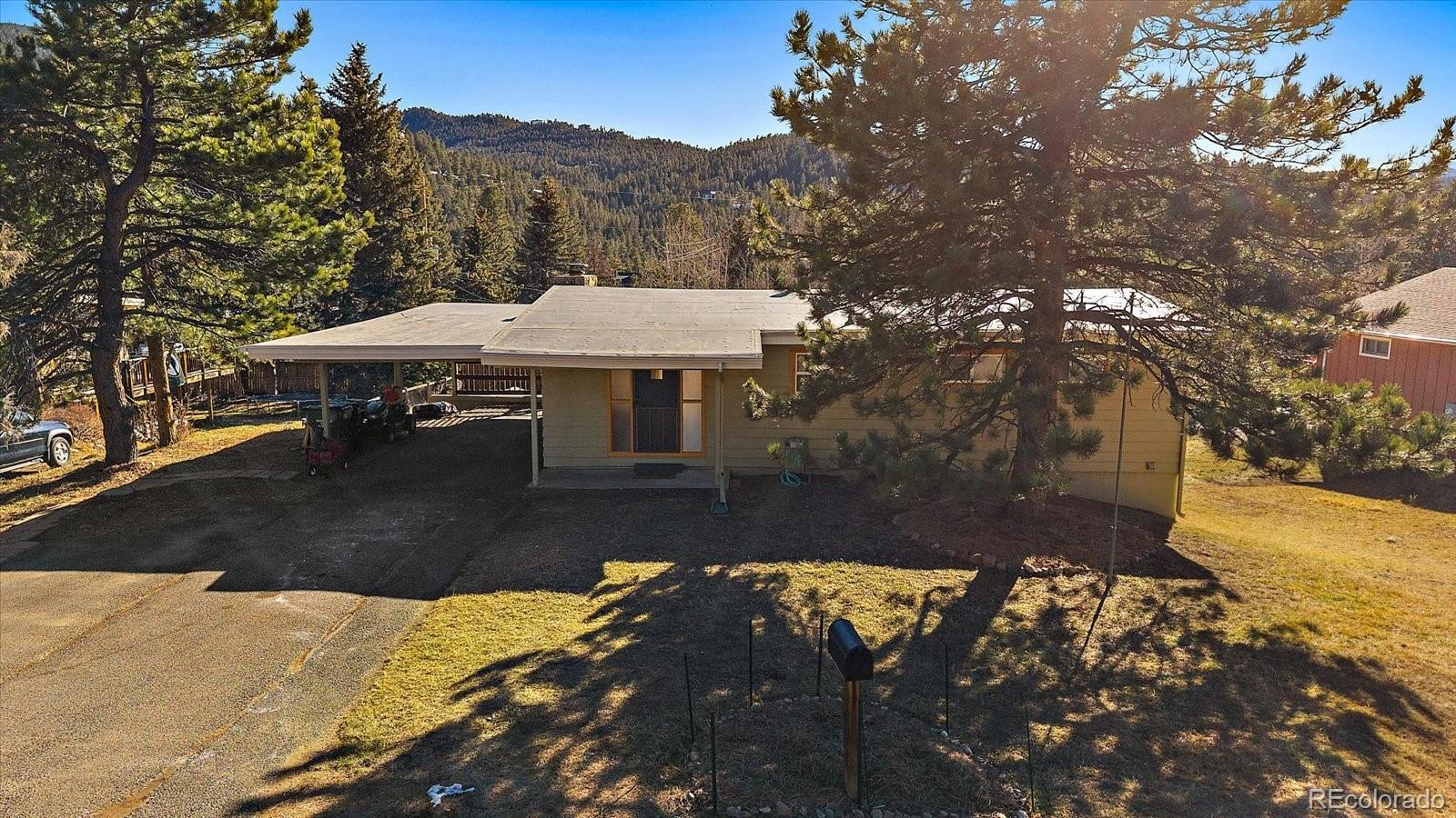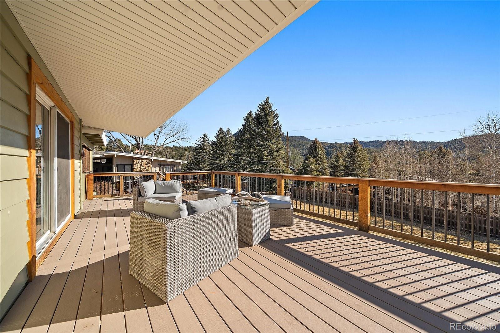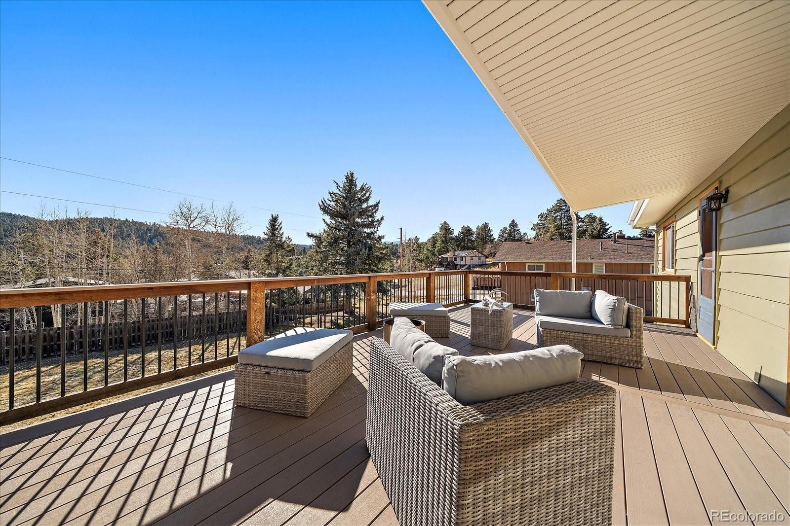Prime location in the heart of Hiwan with a charming home. This offering has a little bit of everything - a large flat yard, an updated home and versatile spaces. A covered porch welcomes you into the home where a large great room awaits. Gleaming wood floors, wood-burning fireplace and a large enteraining area complete the great room. The totally updated kitchen offers stainless appliances, gas range with dual ovens, pantry and plenty of counter space. You will be able to cook but still feel like part of the action as the spaces are open and flowing. Two primary suites are on this stairless main floor. The first offers sweeping views of the backyard as well as the distant hills. This room has a private en-suite bath. The secondary bedroom laso has a private full bath. The great room opens onto the large maintence-free deck that can serve as a natural expansion to the great room. The deck has stairs that lead you to the covered patio below. The lower level offers versaitles spaces that access the back yard. A newly remodeled family room is ideal for TV watching or overflow guests and is adjacent to the 3/4 bath. A barn-door leads to the 3rd bedroom that has plenty of natural sunlight. A large game room/bonus space is great for hobbies, toys or flex area. Laundry is located in the corner and can easily be walled off. The fenced back yard is an oasis for pets, throwing a ball or hosting guests. Home is in move-in ready condition with newer roof, windows and more. Walk to local restaurants, park or theatre. This is easy-mountain-living at its finest.