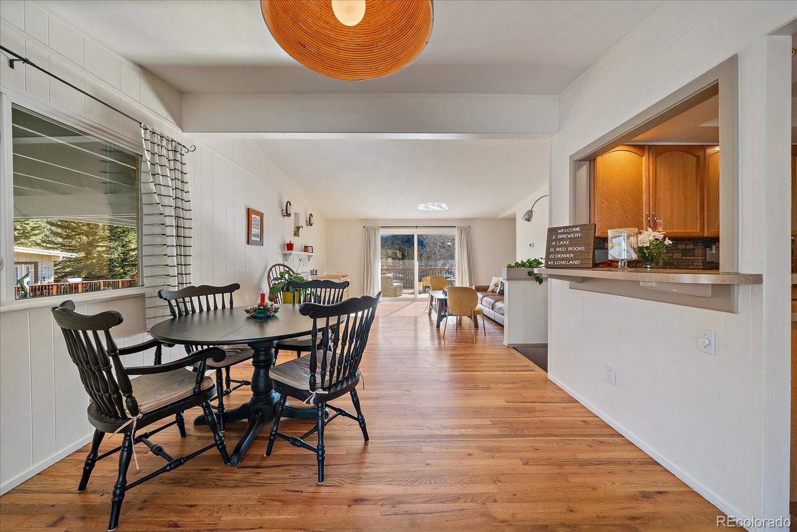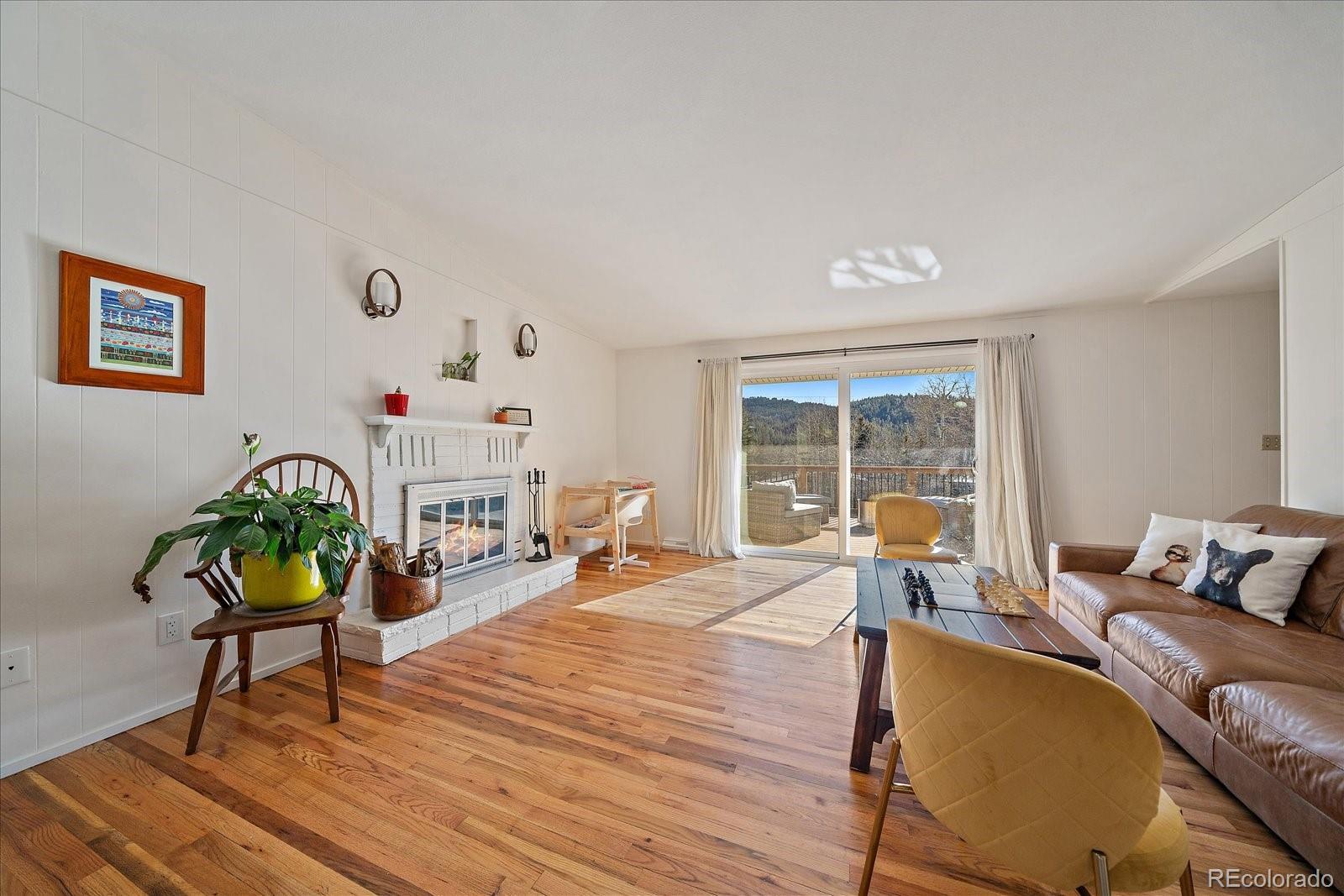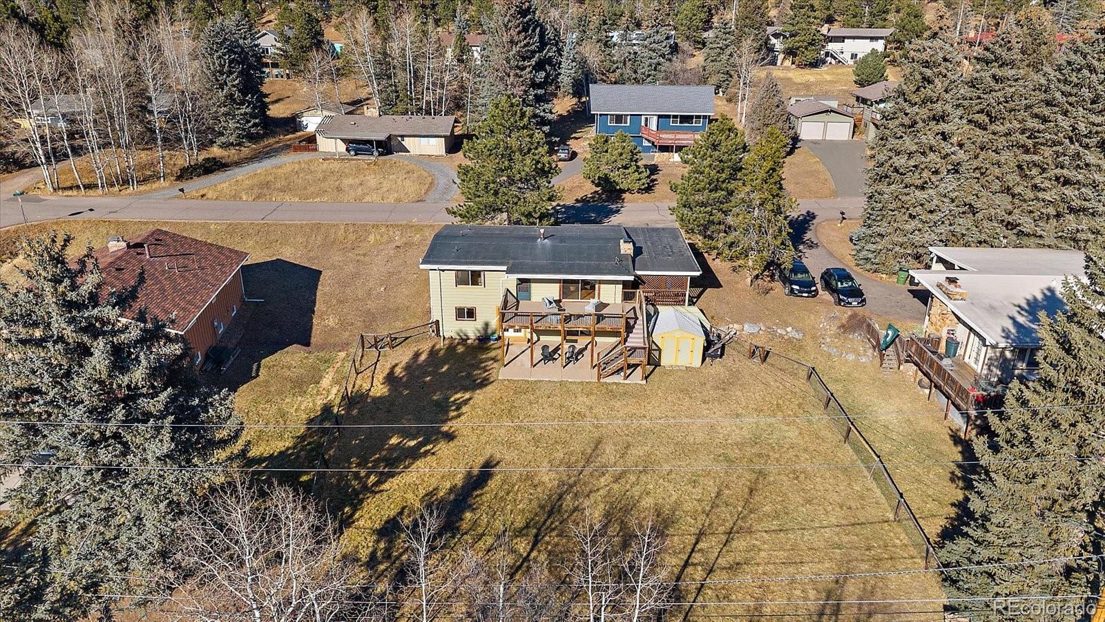 Prime location in the heart of Hiwan with a charming home. This offering has a little bit of everything - a large flat yard, an updated home and versatile spaces. A covered porch welcomes you into the home where a large great room awaits. Gleaming wood floors, wood-burning fireplace and a large enteraining area complete the great room. The totally updated kitchen offers stainless appliances, gas range with dual ovens, pantry and plenty of counter space. You will be able to cook but still feel like part of the action as the spaces are open and flowing. Two primary suites are on this stairless main floor. The first offers sweeping views of the backyard as well as the distant hills. This room has a private en-suite bath. The secondary bedroom laso has a private full bath. The great room opens onto the large maintence-free deck that can serve as a natural expansion to the great room. The deck has stairs that lead you to the covered patio below. The lower level offers versaitles spaces that access the back yard. A newly remodeled family room is ideal for TV watching or overflow guests and is adjacent to the 3/4 bath. A barn-door leads to the 3rd bedroom that has plenty of natural sunlight. A large game room/bonus space is great for hobbies, toys or flex area. Laundry is located in the corner and can easily be walled off. The fenced back yard is an oasis for pets, throwing a ball or hosting guests. Home is in move-in ready condition with newer roof, windows and more. Walk to local restaurants, park or theatre. This is easy-mountain-living at its finest.