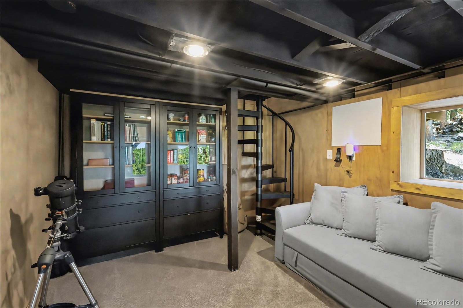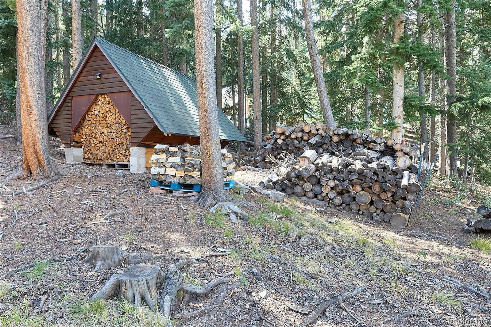 Evergreen Mountain Retreat Just 30 minutes from Denver, this charming home is tucked among the pines and aspens with peaceful views and plenty of privacy. Features include hardwood floors, a cozy moss rock, wood burning, fireplace, Trex deck, updated kitchen & bath flooring, and a versatile lower level for an office, guests, playroom or just extra storage. Bonus perks: paved pull-through driveway with planty of parking, additional RV/trailer parking to the east of the driveway, wood & storage sheds, whole-home generator wiring already in place and a newer septic (2020). This property also has a "fire break" with other mitigation measures maintained annually.