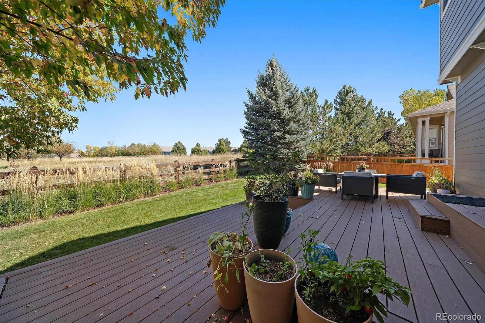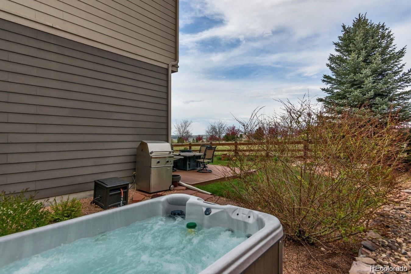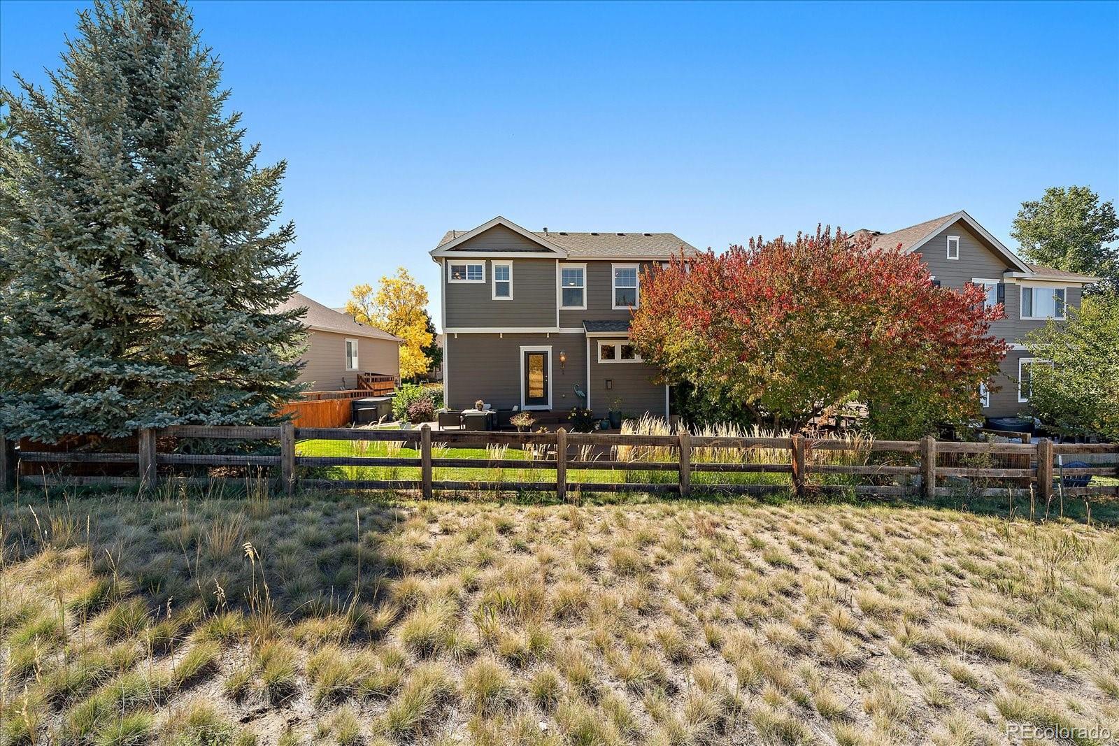 Discover this beautifully updated home in The Meadows, ideally situated on open space for great views. Thoughtful upgrades, including new carpeting, mean you can simply move right in and enjoy. The main level features hardwood floors and a spacious dining area is perfect for gatherings, while the open-concept kitchen includes black stainless steel appliances, a pantry, and ample workspace. Relax in the inviting living room complete with a cozy gas fireplace. Upstairs, the primary suite offers a retreat with a soaking tub, dual vanities, tile flooring, and a generous walk-in closet. The secondary bedrooms won’t disappoint either with lots of light and walk-in closets. The full hall bath has been refreshed with dual sinks and updated tile. A bright loft area provides a flexible space with plenty of natural light and views. The finished basement includes a study plus abundant storage. This room also includes a closet and egress windows so could be used as a 4th bedroom. Stay comfortable all year round with dual furnaces and A/C units. Step outside to a Trex deck and gas firepit, or unwind in the hot tub tucked along the side yard—both included. Garage and basement shelving remain for added convenience. Newer Interior and Exterior Paint. Close to the The Grange pool and tons of amenities. https://meadowscastlerock.com/explore/parks-amenities/ This is a home that truly has it all—location, views, updates, and space. Don’t miss your chance to see it!