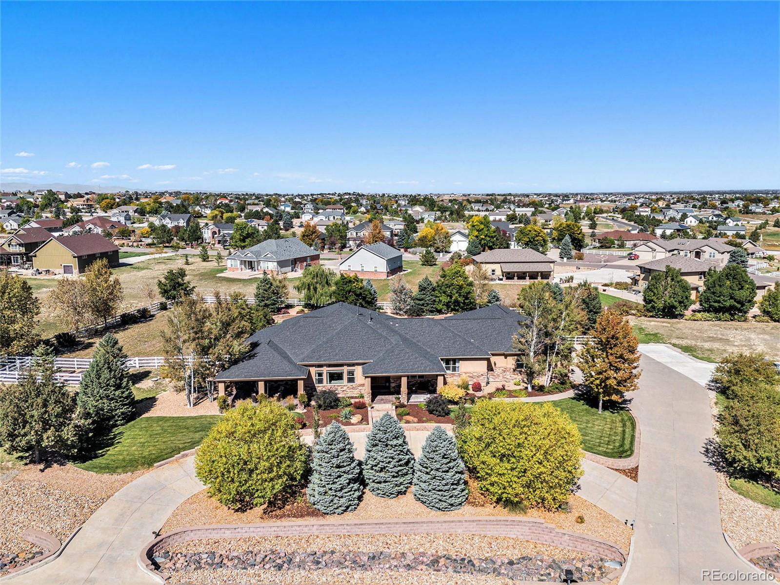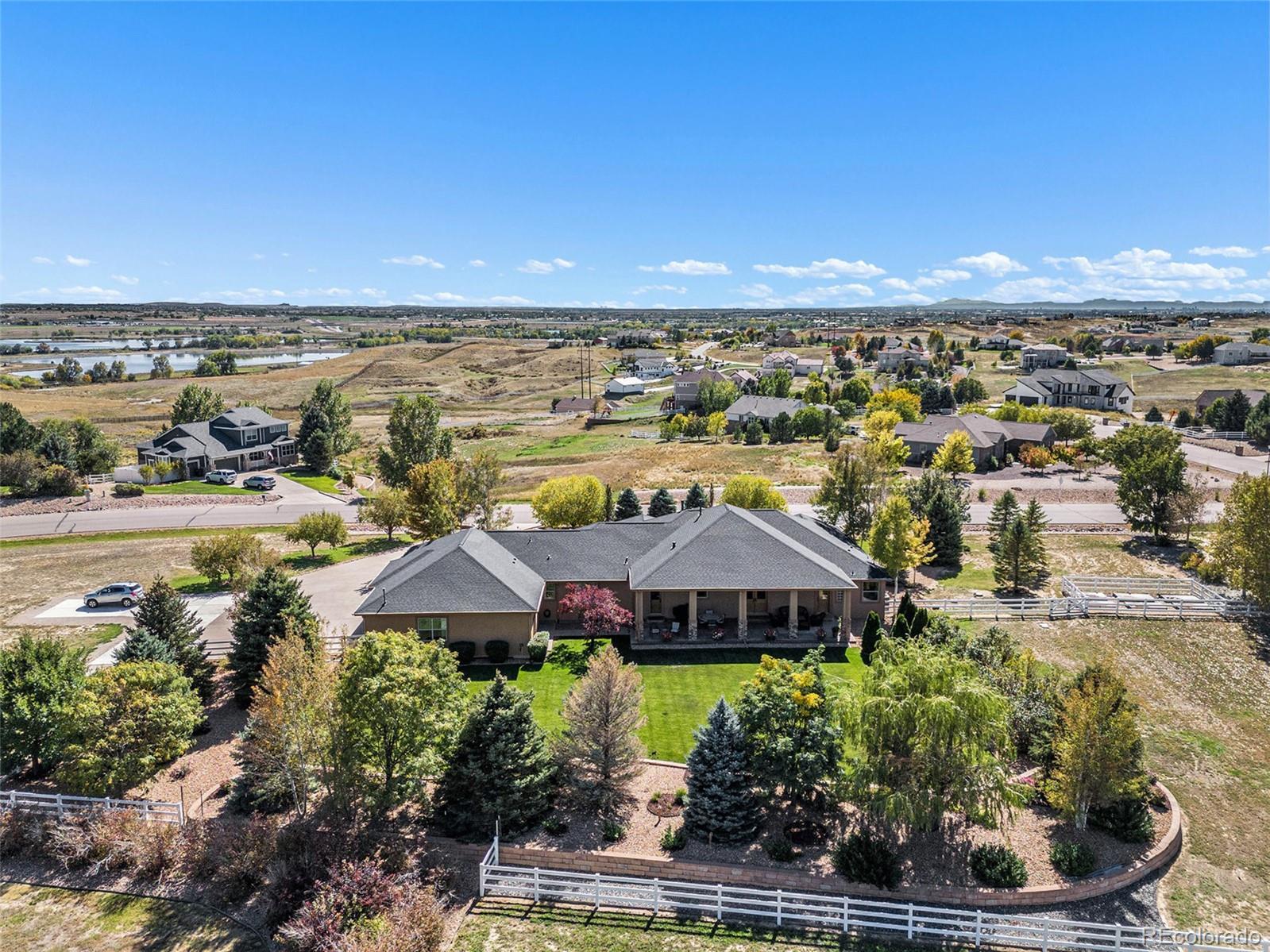 Exceptional Opportunity in Todd Creek Estates: Welcome to this beautifully maintained ranch-style home with a finished basement, offering expansive living space in one of the area's most sought-after gated communities. Situated on 1.95 acres, this property combines luxury, functionality, and Colorado outdoor living at its finest. From the moment you arrive, the curb appeal is undeniable. The meticulously landscaped lawn is thoughtfully designed to enhance outdoor enjoyment and showcase the home’s pristine condition. Step inside to a grand entryway that opens to a formal living area anchored by a striking three-sided fireplace—perfect for welcoming guests or relaxing in style. A private office just off the entry provides an ideal space for working from home. The chef’s kitchen is a true centerpiece, featuring a generous island, abundant cabinetry, a coffee bar, gas range, pantry, and direct access to the expansive covered patio—ideal for entertaining or enjoying quiet evenings outdoors.The primary suite is generously sized, with large windows that flood the room with natural light, a walk-in shower, and a spacious walk-in closet. Downstairs, the finished basement is an entertainer’s dream, complete with a home theater, full wet bar, pool table area, and ample space to add an additional bedroom and 2 full bathrooms. A bonus workout room currently serves as a fully equipped home gym.The oversized garage offers exceptional flexibility, with room for a boat, trailer, custom vehicle, or additional storage needs.Conveniently located just 20 minutes from the airport with easy access to major interstates, this home is ready to deliver the lifestyle you’ve been looking for.