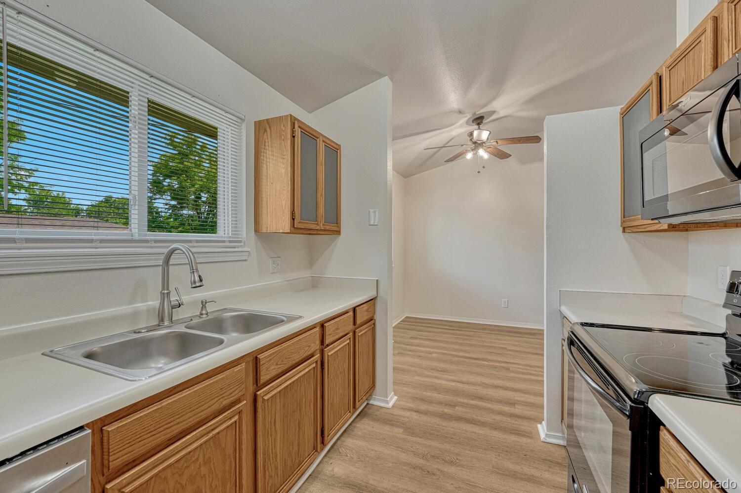 This beautifully remodeled Mid-Century Modern condo offers the perfect blend of style, space, and convenience. With four spacious bedrooms and two full bathrooms, there's plenty of room to grow, recharge, or simply relax. The main floor features an open-concept living and dining area with large, energy-efficient windows that let in natural light, setting the tone for warm gatherings or cozy nights in. The kitchen comes equipped with all appliances and connects seamlessly to the living space, making it ideal for entertaining. Freshly painted interiors and low-maintenance flooring add a modern touch, while the ranch-style layout lives like a single-family home without the upkeep. Downstairs, the finished basement offers two bedrooms with compliant egress windows, perfect for guests, office space, or hobbies that require a little peace and quiet. Step outside to enjoy nearby parks like Cornerstone Park, perfect for morning jogs, weekend picnics, or trying out your frisbee golf game. Just a short trip away, downtown Littleton offers a charming mix of local shops, theaters, and restaurants, whether you’re hunting for the best brunch or catching an evening show. For seamless commuting or an effortless city adventure, the Light Rail and bus stops are conveniently close. With grocery stores, schools, and recreational trails all within reach (yes, your bike will finally feel appreciated), this home checks all the boxes for everyday comfort and urban convenience. It’s not often you find this much character and practicality under one roof—come see what living here could look like. *Seller offering Buyer a choice of Home Warranty, credit up to $450.*