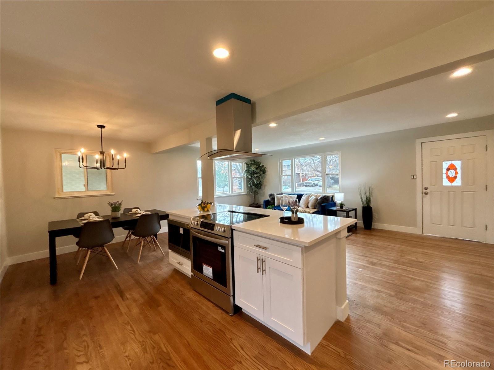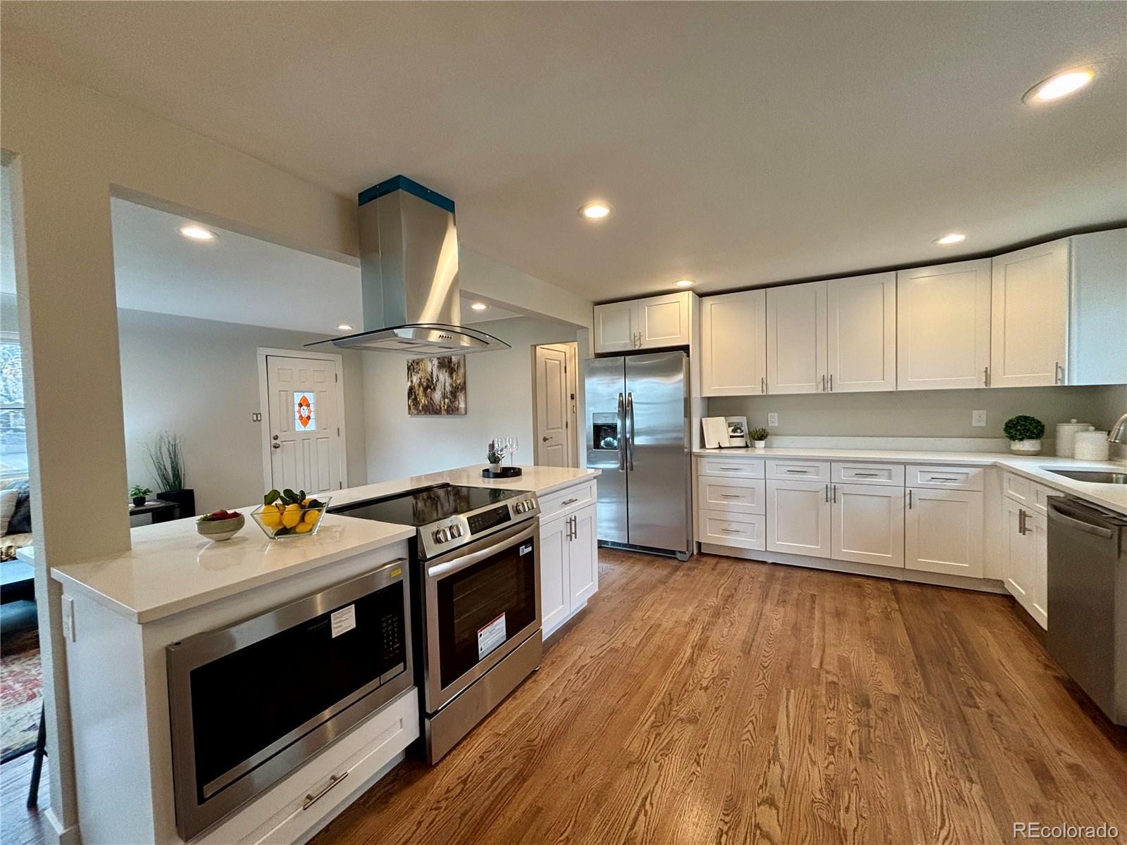Welcome to this charming single-family home in Wheat Ridge. This updated 3-bedroom, 2-bathroom home offers the perfect blend of modern elegance and comfort. Bonus office room in the basement. Featuring fresh, vibrant paint and upgraded lighting throughout, this home creates a welcoming atmosphere from the moment you step inside. The gorgeous hardwood flooring flows seamlessly through the main and level, while brand-new carpet adds a cozy touch to the basement.. The kitchen is a true highlight with beautiful wood cabinetry, luxurious quartz countertops, and stainless-steel appliances. – perfect for cooking and entertaining. The bathrooms have been meticulously updated with stylish designer tile. All new landscaping, paver patio, and large storage shed out back! Located in a fantastic neighborhood. This home is ready for you to move in and start making memories. Don’t miss your chance to see this amazing home – it’s waiting for you!