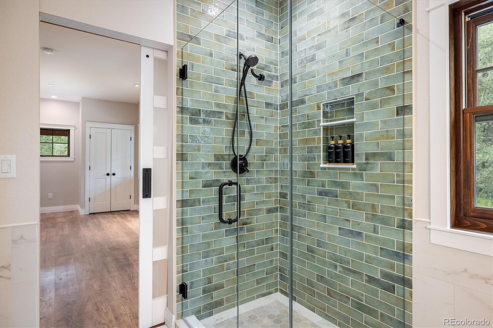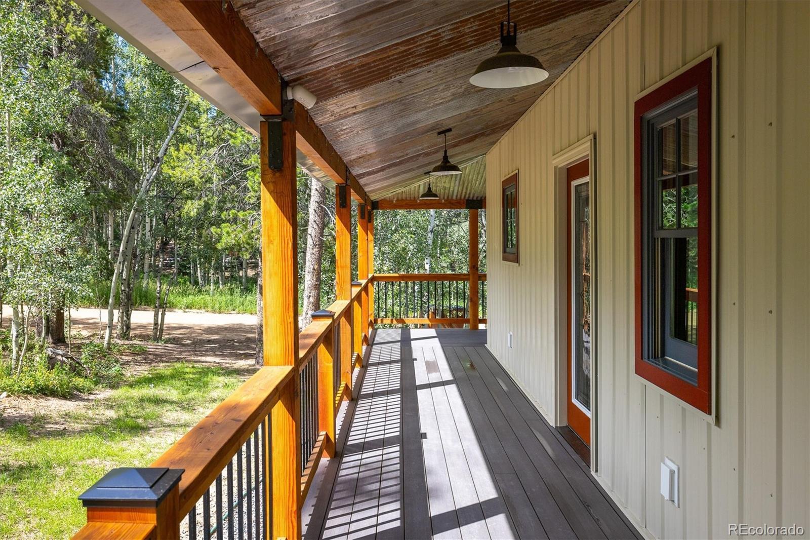 This custom-built mountain home offers modern systems and beautiful finishes throughout. The vaulted great room has a gas fireplace and connects to the kitchen and a loft above. There are two large bedrooms, one on each level, both with soundproof walls, custom closets, and private bathrooms. The upper-level bathroom includes a steam shower and handmade tile. A laundry room and mudroom are on the main floor. The home sits on a private 1.67-acre lot, bordered to the south by 135 acres of undeveloped land. Wildfire mitigation is complete and ready for Wildfire Partners certification. The exterior is fire-resistant, with a 24-gauge metal roof and siding, Andersen Eagle windows, and multiple TimberTech decks, including an east-facing balcony with foothill views. A detached 720 sq ft garage and 780 sq ft outbuilding are also included. Inside features include solid pine doors, custom railings, luxury vinyl plank and carpet flooring (both compatible with radiant heat), and adjustable lighting. The kitchen has Brazilian quartzite counters, stainless steel appliances, a French door fridge, induction cooktop, motion-sensing hood, microwave oven, under-cabinet lighting, soft-close maple cabinets, custom wine racks, and a large island. The lower level includes an open area for media, fitness, or office use. Heating is provided by in-floor radiant heat with room-by-room controls and a gas fireplace with a remote thermostat. Additional systems include heat recovery ventilation, R54 ceiling insulation, and an interior fire suppression system. The home is SepticSmart certified, has a well with water treatment, and fiber internet from Mountain Broadband. Located near Gross Reservoir, national forest land, Nederland, and Eldora. About 30–40 minutes to Boulder, Golden, and Denver; about 1 hour to DIA.