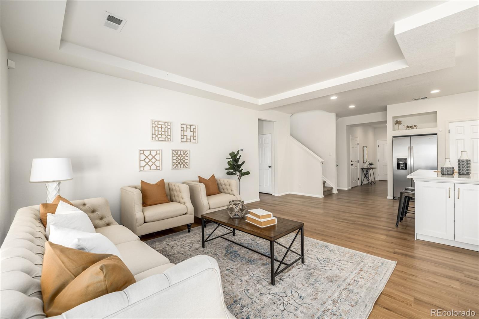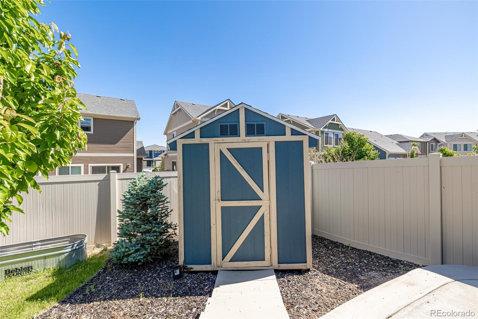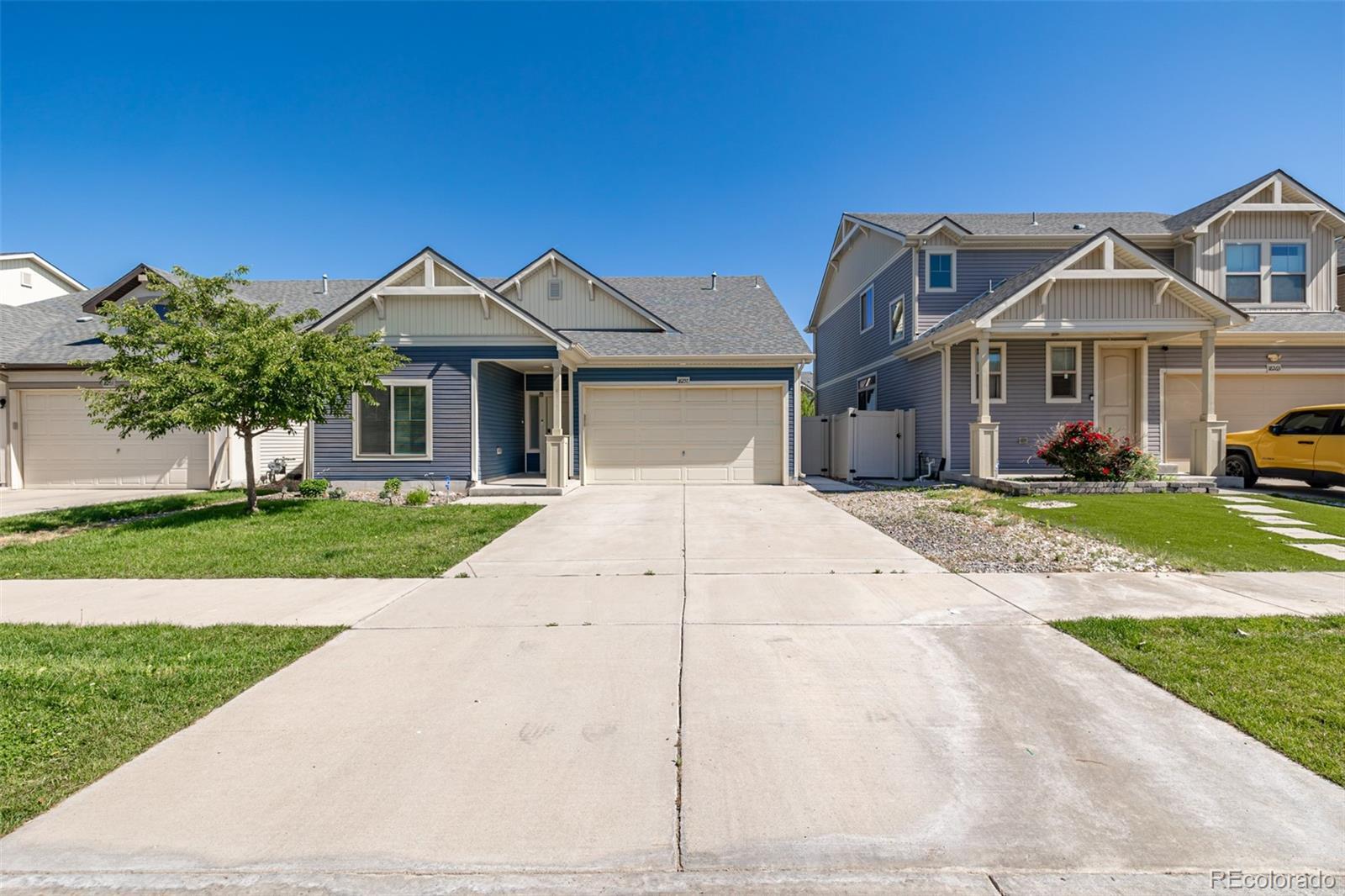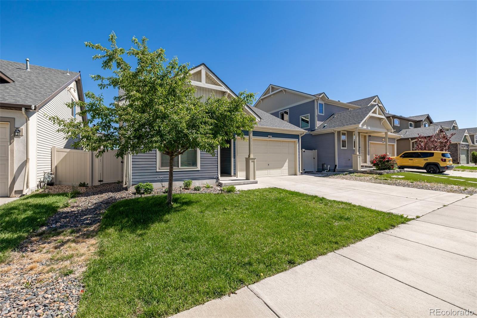 Experience the charm of this beautiful three-bedroom home featuring a two-car garage! Enter through the covered doorway, and you'll be impressed by the smart and livable floor plan. The spacious great room is graced with abundant natural light, wood-look flooring, tray ceiling, and sliding glass doors to the back patio. The large backyard features a large concrete patio and is the perfect place to host memorable get-togethers. The open-concept kitchen provides recessed lighting, stainless steel appliances, plenty of white cabinetry, stylish tile backsplash, built-in microwave, quartz counters, and a center island equipped with a breakfast bar. There's also a huge walk-in pantry with double doors! Check out the serene primary bedroom, which includes a private ensuite with dual sinks, an enclosed glass shower, and a walk-in closet. The secondary bedroom features a walk-in closet. You'll appreciate the convenience of laundry on the main floor, near the bedrooms. The washer and dryer are included. Upstairs, you'll love the HUGE loft, can be a large non-confirming third bedroom, an ideal spot for game night, an imaginative space for work or play, or a place to binge your favorite shows. You're about 35 minutes from Downtown Denver, 20 minutes from the airport, and 35 minutes to the Tech Center. Shopping, dining, and coffee shops are all nearby. The Rocky Mountain Arsenal is nearby It's one of the country's largest urban wildlife refuges, offers great outdoor activities, including hiking, biking, and fishing. Seller is working on getting roof, siding and fence fixed. Schedule your showing today and see this lovely home in person.