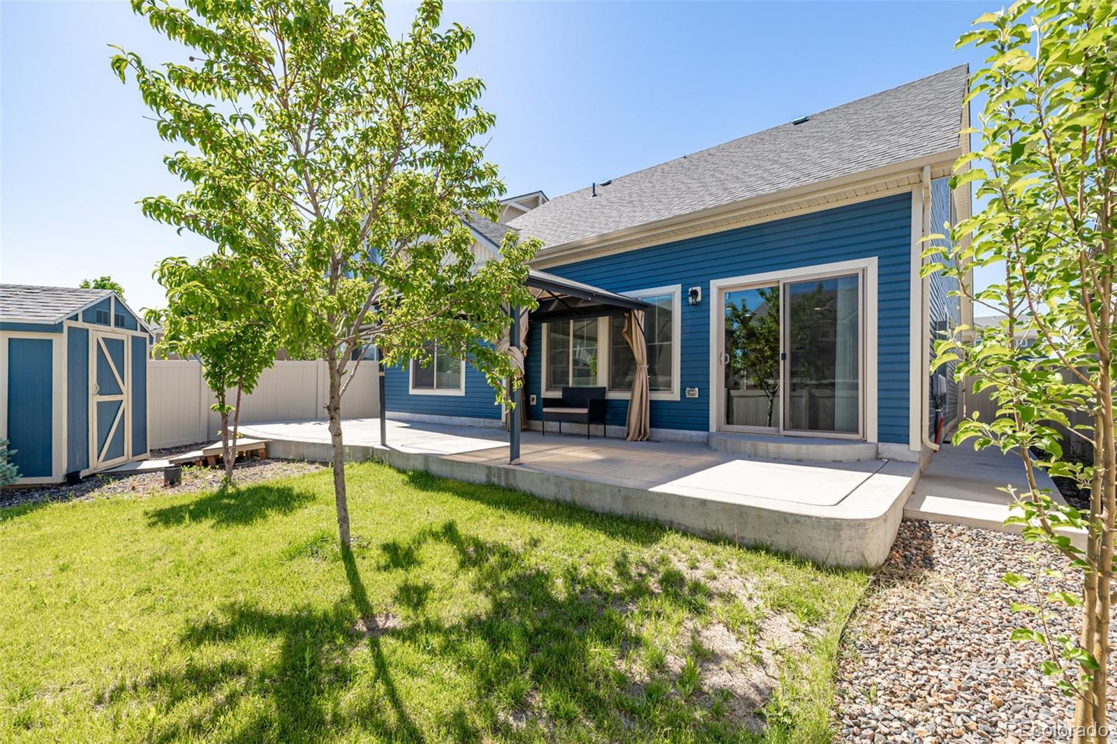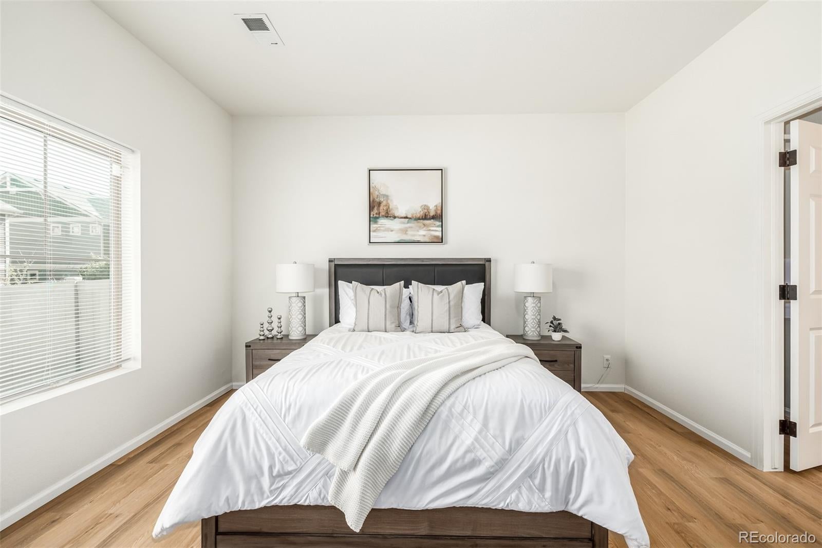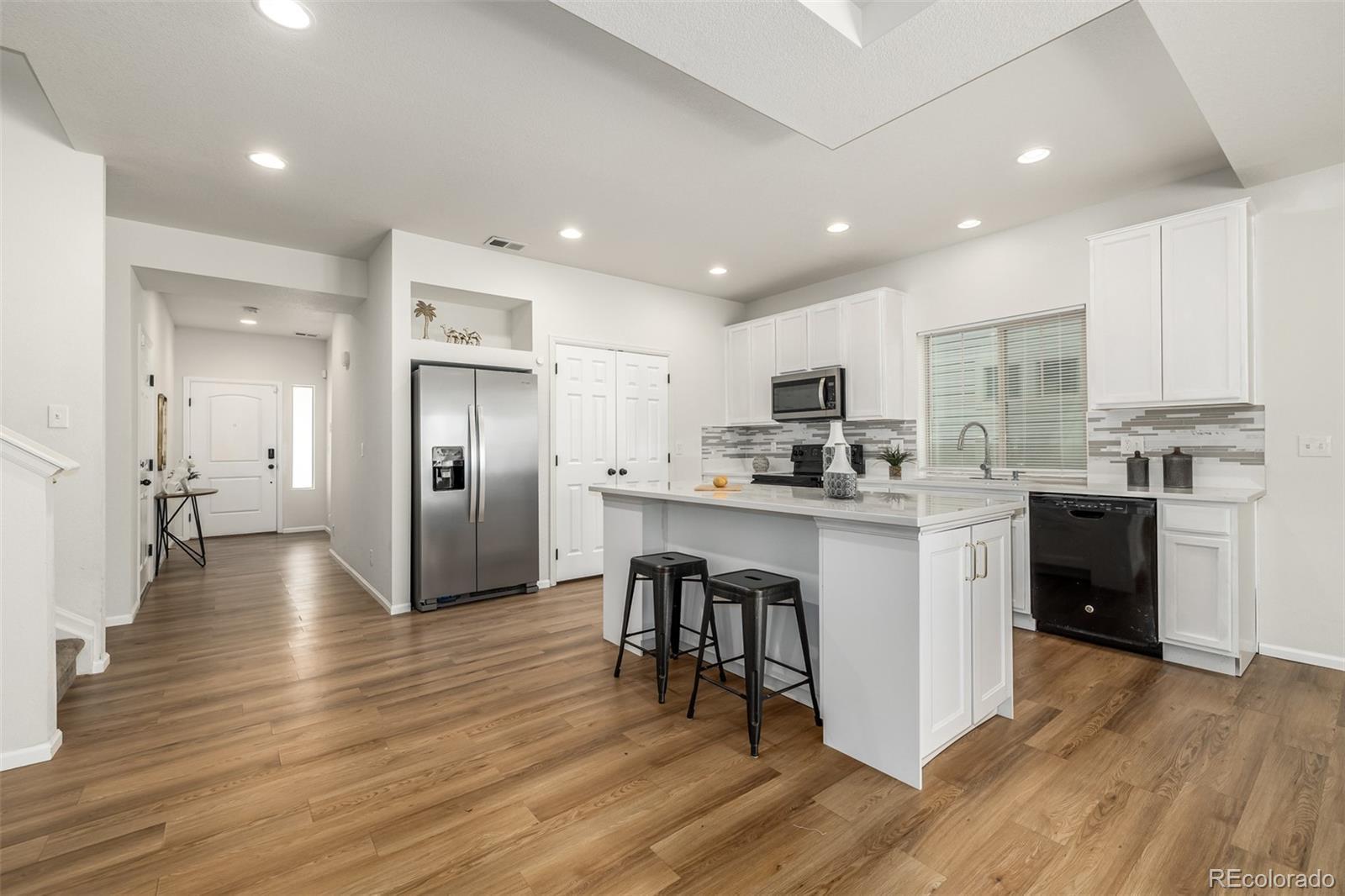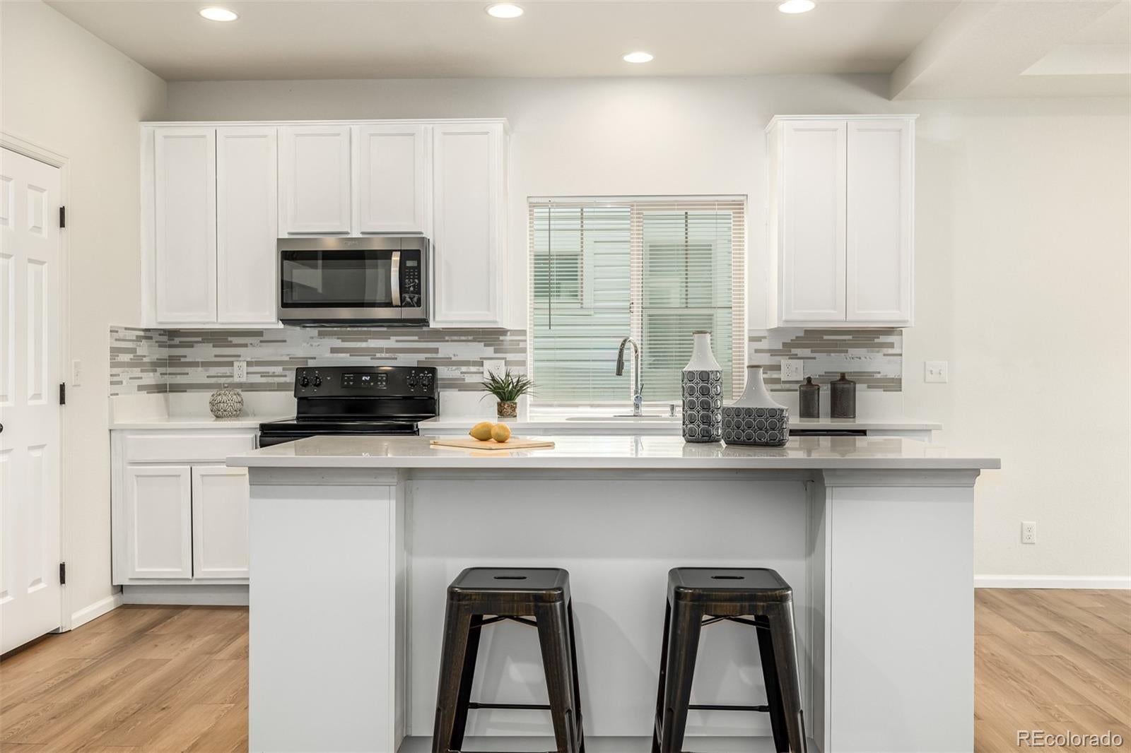 Experience the charm of this beautiful three-bedroom home featuring a two-car garage! Enter through the covered doorway, and you'll be impressed by the smart and livable floor plan. The spacious great room is graced with abundant natural light, wood-look flooring, tray ceiling, and sliding glass doors to the back patio. The large backyard features a large concrete patio and is the perfect place to host memorable get-togethers. The open-concept kitchen provides recessed lighting, stainless steel appliances, plenty of white cabinetry, stylish tile backsplash, built-in microwave, quartz counters, and a center island equipped with a breakfast bar. There's also a huge walk-in pantry with double doors! Check out the serene primary bedroom, which includes a private ensuite with dual sinks, an enclosed glass shower, and a walk-in closet. The secondary bedroom features a walk-in closet. You'll appreciate the convenience of laundry on the main floor, near the bedrooms. The washer and dryer are included. Upstairs, you'll love the HUGE loft, can be a large non-confirming third bedroom, an ideal spot for game night, an imaginative space for work or play, or a place to binge your favorite shows. You're about 35 minutes from Downtown Denver, 20 minutes from the airport, and 35 minutes to the Tech Center. Shopping, dining, and coffee shops are all nearby. The Rocky Mountain Arsenal is nearby It's one of the country's largest urban wildlife refuges, offers great outdoor activities, including hiking, biking, and fishing. Seller is working on getting roof, siding and fence fixed. Schedule your showing today and see this lovely home in person.