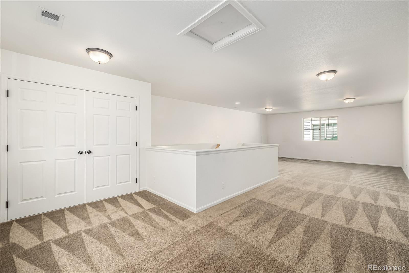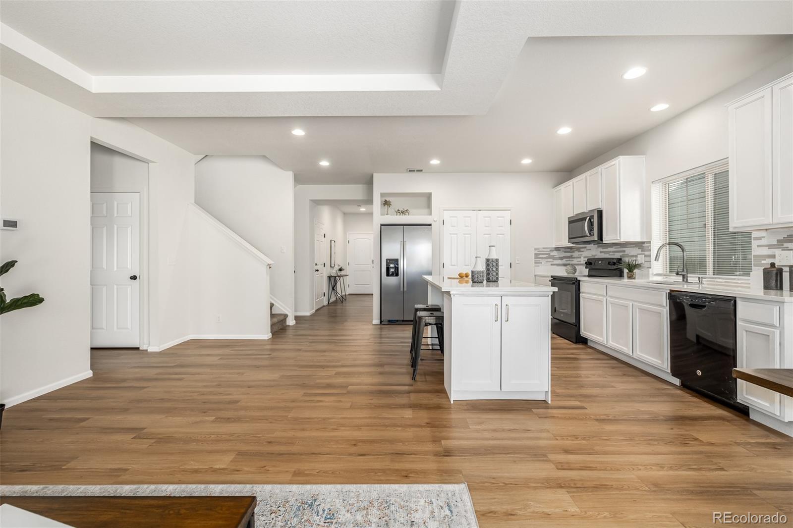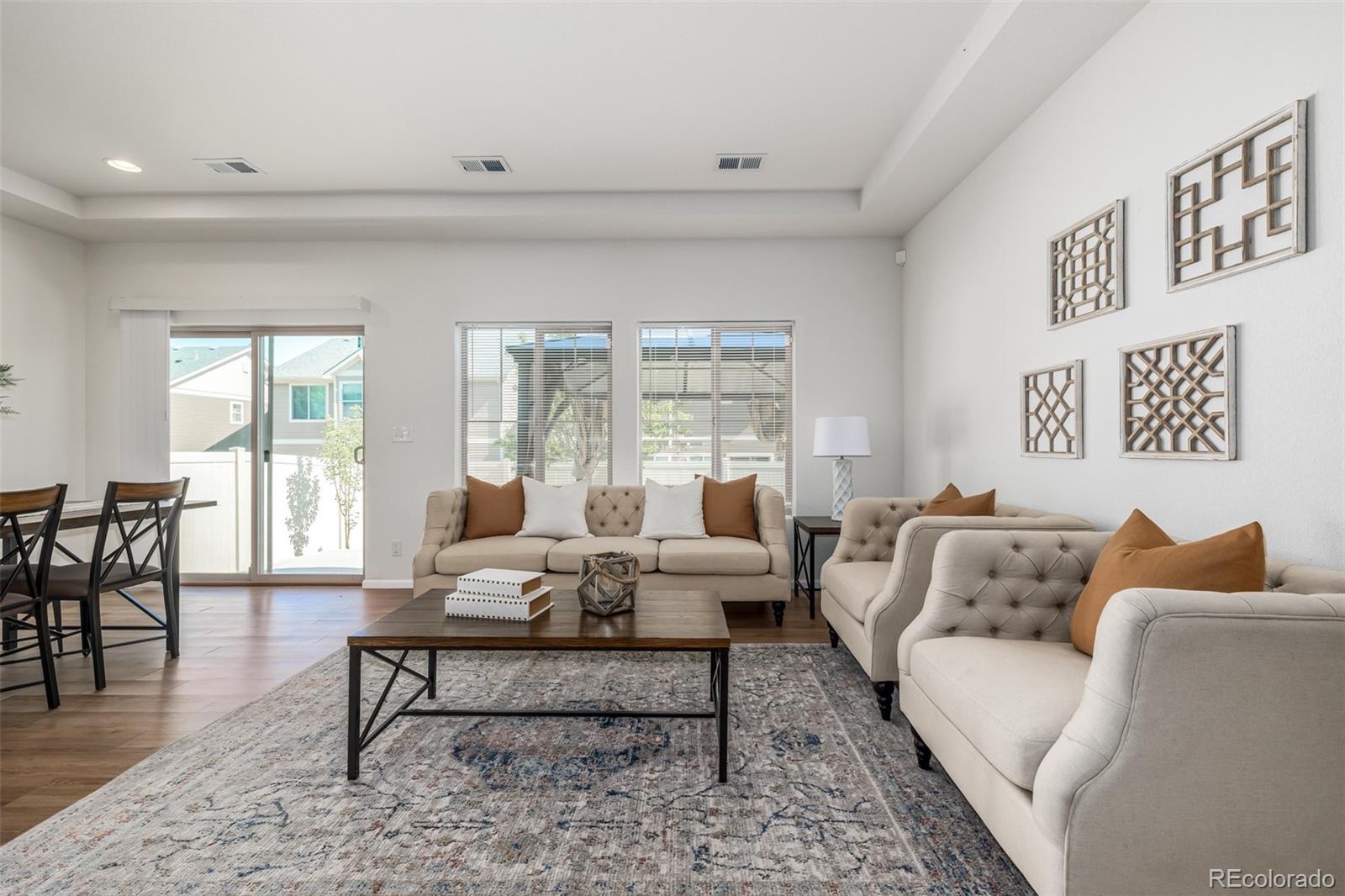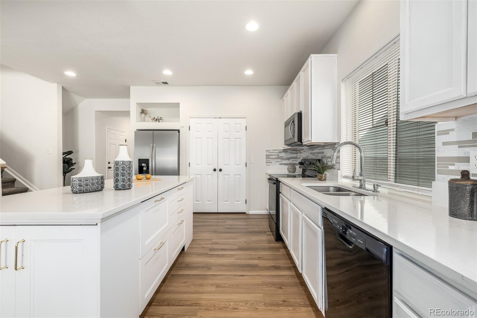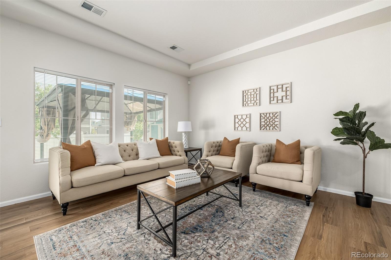 Experience the charm of this beautiful three-bedroom home featuring a two-car garage! Enter through the covered doorway, and you'll be impressed by the smart and livable floor plan. The spacious great room is graced with abundant natural light, wood-look flooring, tray ceiling, and sliding glass doors to the back patio. The large backyard features a large concrete patio and is the perfect place to host memorable get-togethers. The open-concept kitchen provides recessed lighting, stainless steel appliances, plenty of white cabinetry, stylish tile backsplash, built-in microwave, quartz counters, and a center island equipped with a breakfast bar. There's also a huge walk-in pantry with double doors! Check out the serene primary bedroom, which includes a private ensuite with dual sinks, an enclosed glass shower, and a walk-in closet. The secondary bedroom features a walk-in closet. You'll appreciate the convenience of laundry on the main floor, near the bedrooms. The washer and dryer are included. Upstairs, you'll love the HUGE loft, can be a large non-confirming third bedroom, an ideal spot for game night, an imaginative space for work or play, or a place to binge your favorite shows. You're about 35 minutes from Downtown Denver, 20 minutes from the airport, and 35 minutes to the Tech Center. Shopping, dining, and coffee shops are all nearby. The Rocky Mountain Arsenal is nearby It's one of the country's largest urban wildlife refuges, offers great outdoor activities, including hiking, biking, and fishing. Seller is working on getting roof, siding and fence fixed. Schedule your showing today and see this lovely home in person.
