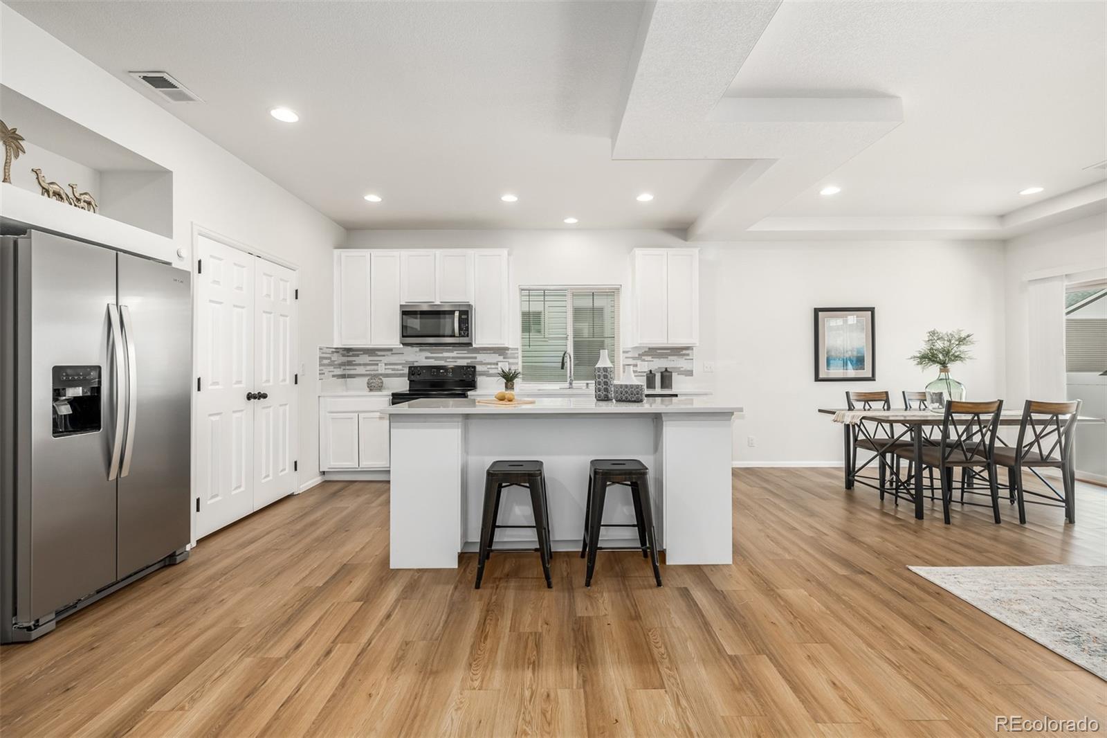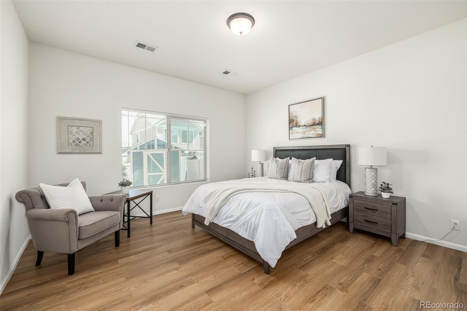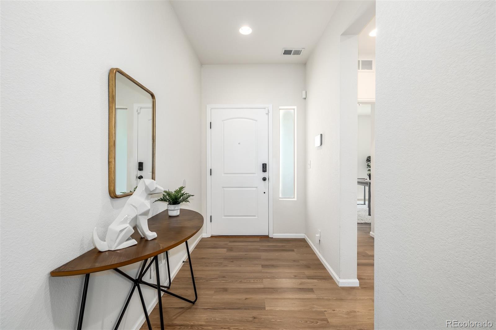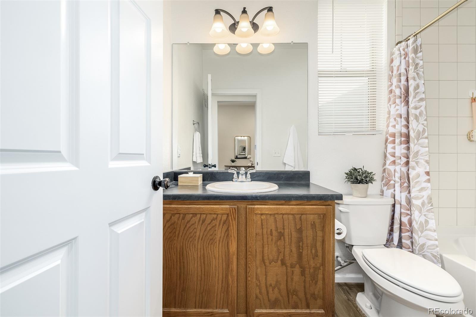 Experience the charm of this beautiful three-bedroom home featuring a two-car garage! Enter through the covered doorway, and you'll be impressed by the smart and livable floor plan. The spacious great room is graced with abundant natural light, wood-look flooring, tray ceiling, and sliding glass doors to the back patio. The large backyard features a large concrete patio and is the perfect place to host memorable get-togethers. The open-concept kitchen provides recessed lighting, stainless steel appliances, plenty of white cabinetry, stylish tile backsplash, built-in microwave, quartz counters, and a center island equipped with a breakfast bar. There's also a huge walk-in pantry with double doors! Check out the serene primary bedroom, which includes a private ensuite with dual sinks, an enclosed glass shower, and a walk-in closet. The secondary bedroom features a walk-in closet. You'll appreciate the convenience of laundry on the main floor, near the bedrooms. The washer and dryer are included. Upstairs, you'll love the HUGE loft, can be a large non-confirming third bedroom, an ideal spot for game night, an imaginative space for work or play, or a place to binge your favorite shows. You're about 35 minutes from Downtown Denver, 20 minutes from the airport, and 35 minutes to the Tech Center. Shopping, dining, and coffee shops are all nearby. The Rocky Mountain Arsenal is nearby It's one of the country's largest urban wildlife refuges, offers great outdoor activities, including hiking, biking, and fishing. Seller is working on getting roof, siding and fence fixed. Schedule your showing today and see this lovely home in person.
