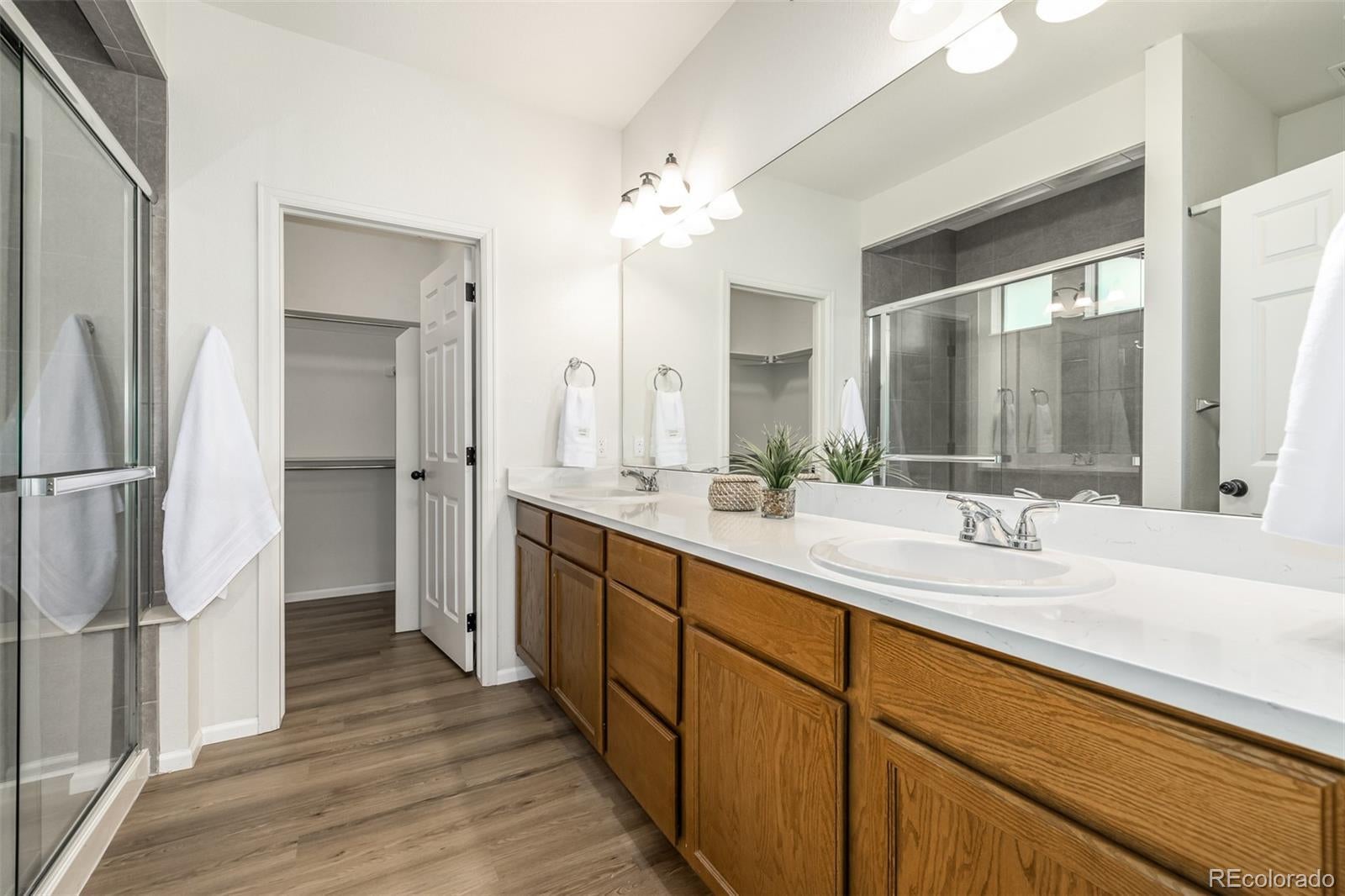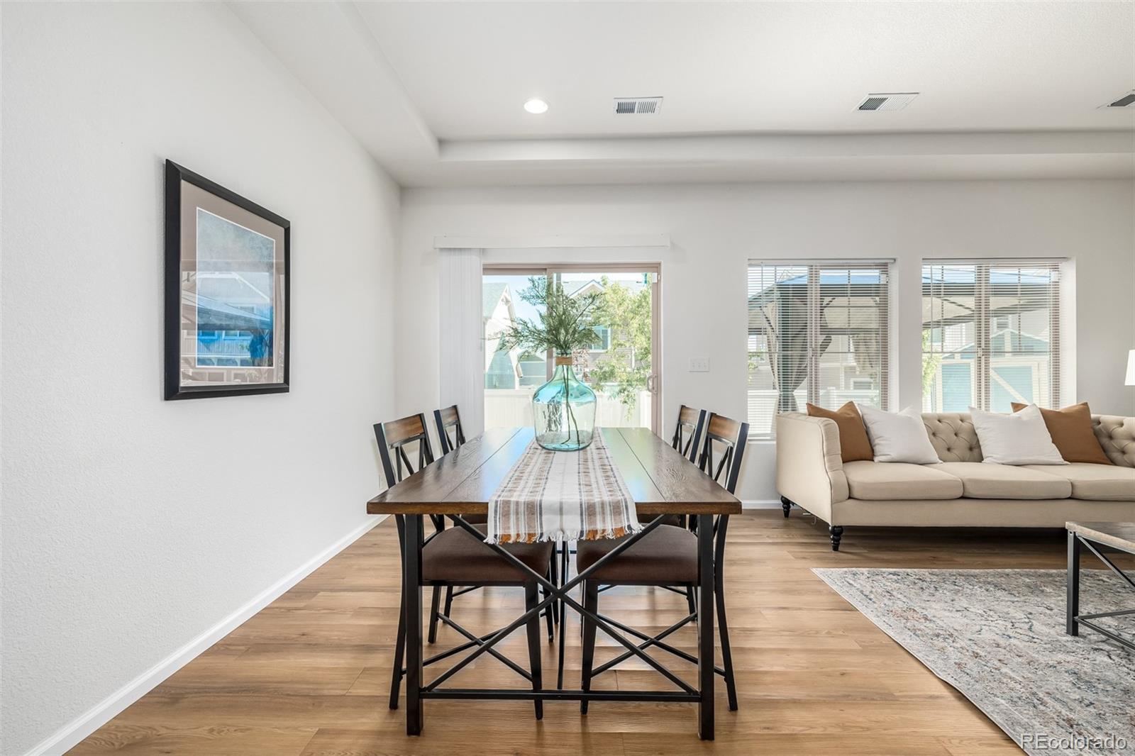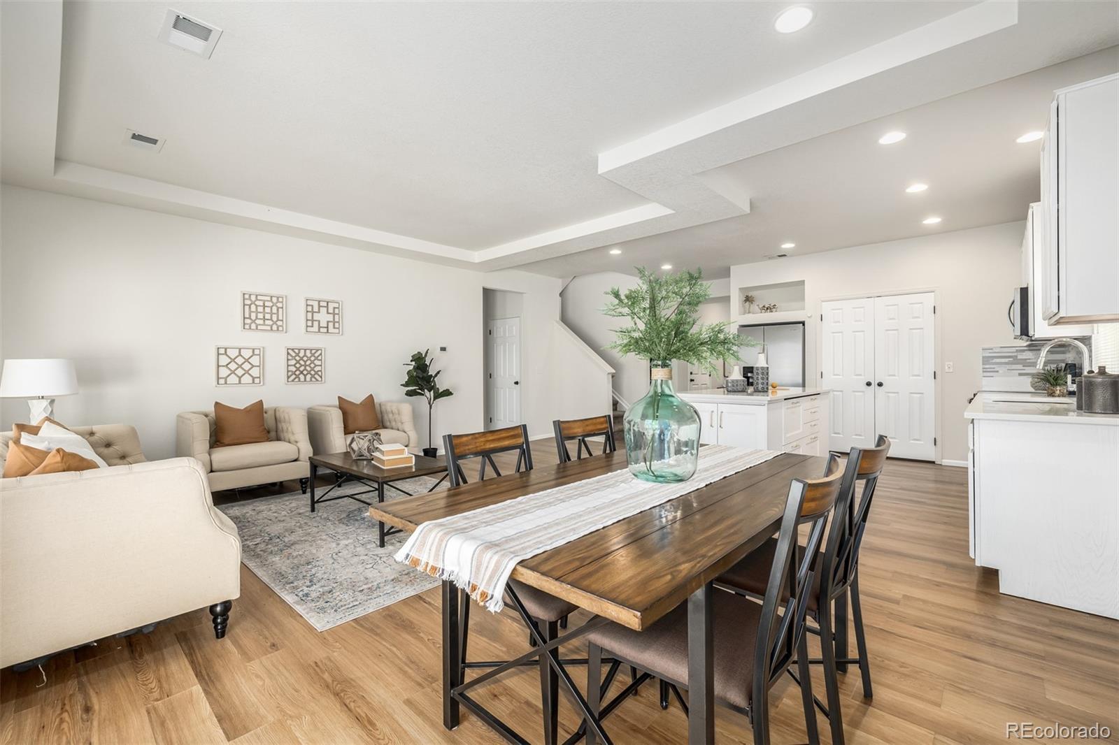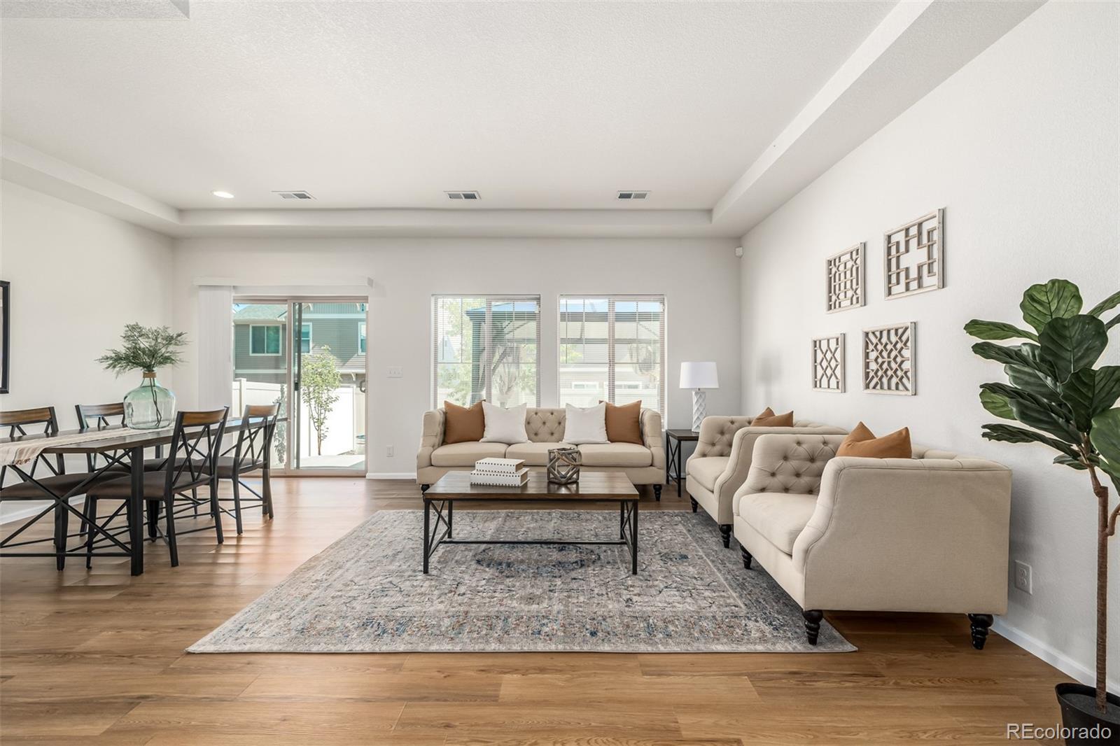 Experience the charm of this beautiful three-bedroom home featuring a two-car garage! Enter through the covered doorway, and you'll be impressed by the smart and livable floor plan. The spacious great room is graced with abundant natural light, wood-look flooring, tray ceiling, and sliding glass doors to the back patio. The large backyard features a large concrete patio and is the perfect place to host memorable get-togethers. The open-concept kitchen provides recessed lighting, stainless steel appliances, plenty of white cabinetry, stylish tile backsplash, built-in microwave, quartz counters, and a center island equipped with a breakfast bar. There's also a huge walk-in pantry with double doors! Check out the serene primary bedroom, which includes a private ensuite with dual sinks, an enclosed glass shower, and a walk-in closet. The secondary bedroom features a walk-in closet. You'll appreciate the convenience of laundry on the main floor, near the bedrooms. The washer and dryer are included. Upstairs, you'll love the HUGE loft, can be a large non-confirming third bedroom, an ideal spot for game night, an imaginative space for work or play, or a place to binge your favorite shows. You're about 35 minutes from Downtown Denver, 20 minutes from the airport, and 35 minutes to the Tech Center. Shopping, dining, and coffee shops are all nearby. The Rocky Mountain Arsenal is nearby It's one of the country's largest urban wildlife refuges, offers great outdoor activities, including hiking, biking, and fishing. Seller is working on getting roof, siding and fence fixed. Schedule your showing today and see this lovely home in person.