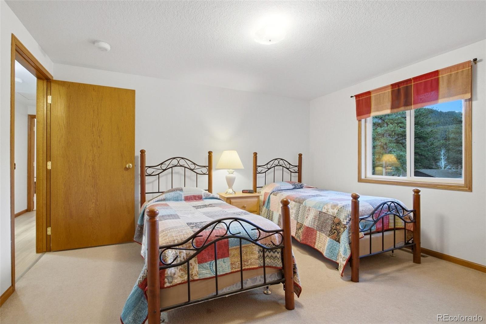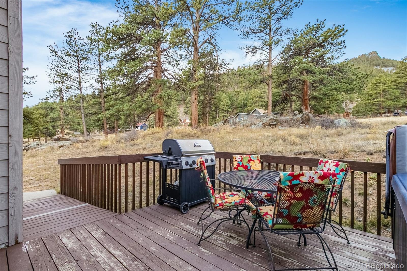 Spacious three-bedroom, two-bath cabin in the woods bordering the Rocky Mountain National Park! Handicap accessible main-level living with a large primary bedroom and an ensuite bathroom with a jacuzzi tub and a private hot tub. The hall bath has 2 showers, with 1 of them being handicap accessible. Available for immediate occupancy. All furnishings are included in this beautifully adorned, adorable cabin. A cozy gas fireplace for you and your guests to cuddle up to while enjoying the wildlife around you. You will love this location, only a couple of miles from the YMCA of the Rockies, and you can walk directly into Rocky Mountain National Park on marked trails, and it is less than 2 miles from the Beaver Meadows entrance to RMNP. Plenty of hiking and rock climbing in close proximity. This property has an abundance of wildlife wandering through for you and your guests to enjoy. Buyer or buyer's agent to confirm house and room measurements. For STR licenses, buyers should check with Larimer County before considering short-term rentals. The property is not located inside the City of Estes Park, so you will only need to apply through Larimer County. Danette Barrett is a Colorado-licensed real estate broker and also a principal of Seller.