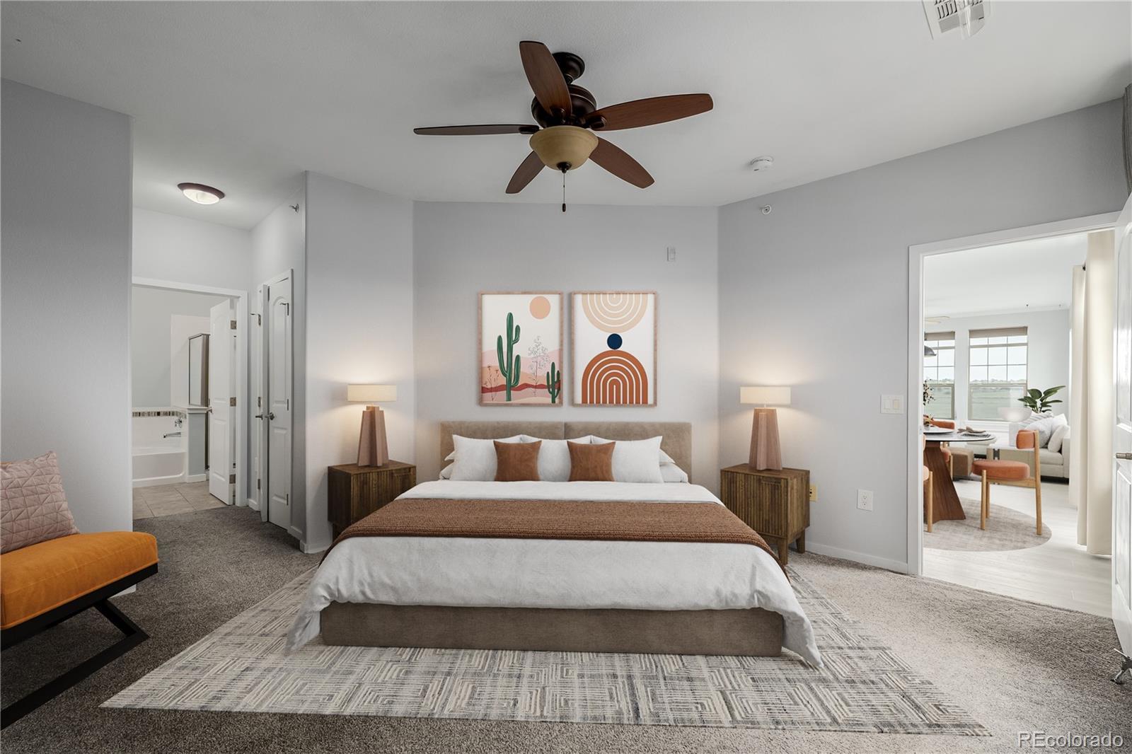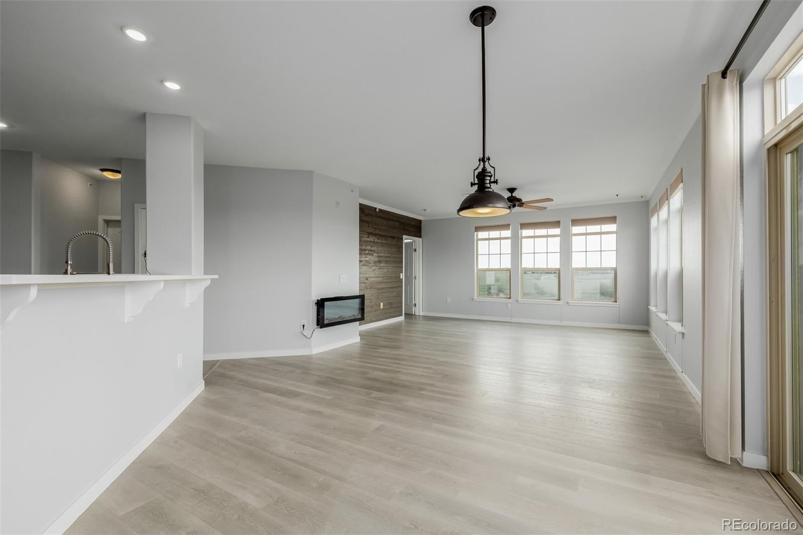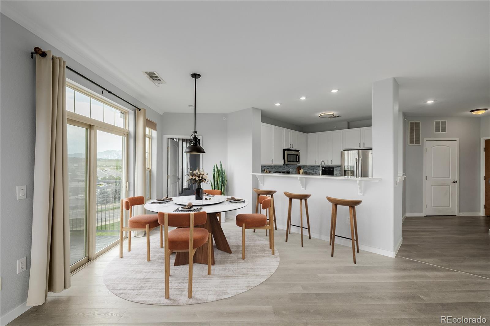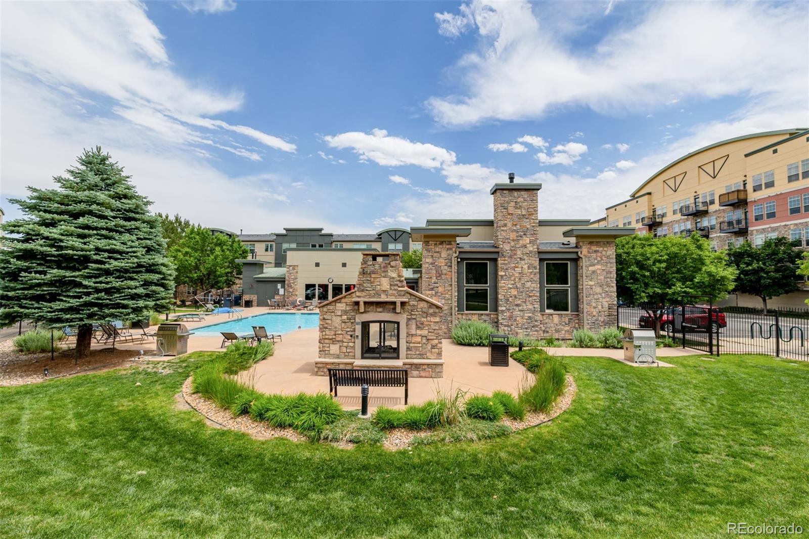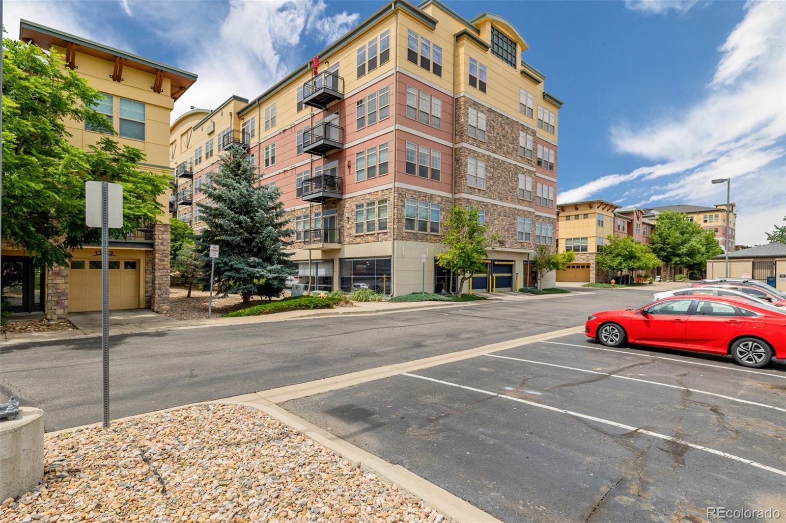 Incredible top floor corner Flat with views of the front range and vast open space. Open Floorplan with incredible light from oversized windows and SW Patio. Updated kitchen with quartz countertops, white cabinets with 42' uppers for extra storage, pantry, and stainless appliances. Great room includes a cozy electric fireplace to warm up to while admiring the Flat Irons. Primary Bedroom features a large walk in closet and secondary closet and a 4-piece bath with large soaking tub and walk in shower. Secondary ensuite has a massive walk-in closet and attached full bath. Laundry room offers full size washer and dryer and additional storage. Parking is conveniently located near the elevator in the parking garage and an additional 1 car detached garage with storage shelving. Vantage Pointe has an amazing community clubhouse with pool, hot tub and fully equipped gym. Private detached single car garage with storage shelving and EV charging outlet- may need separate deed from condo.