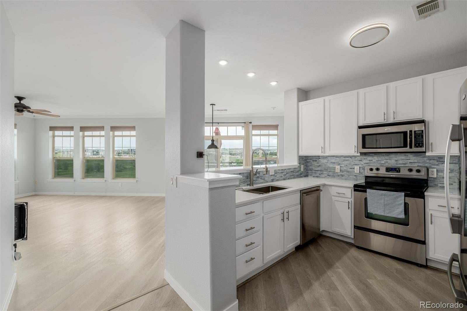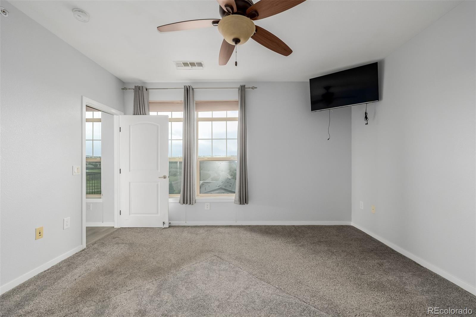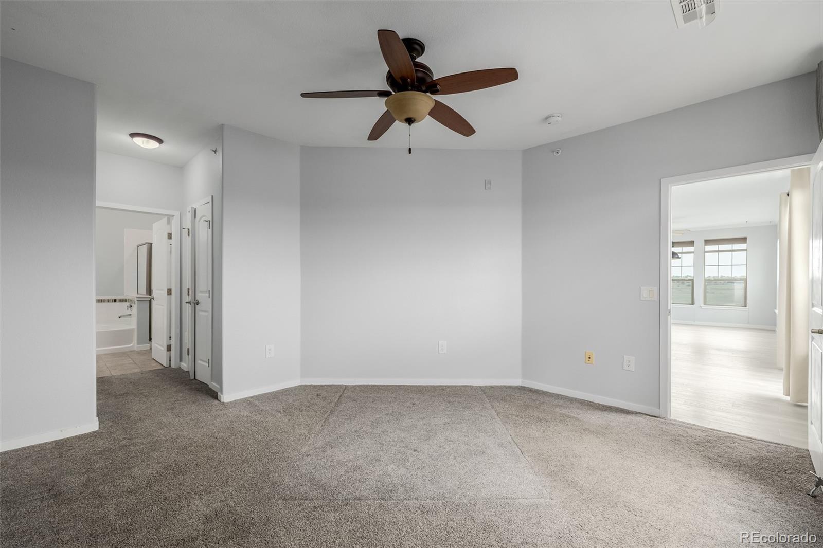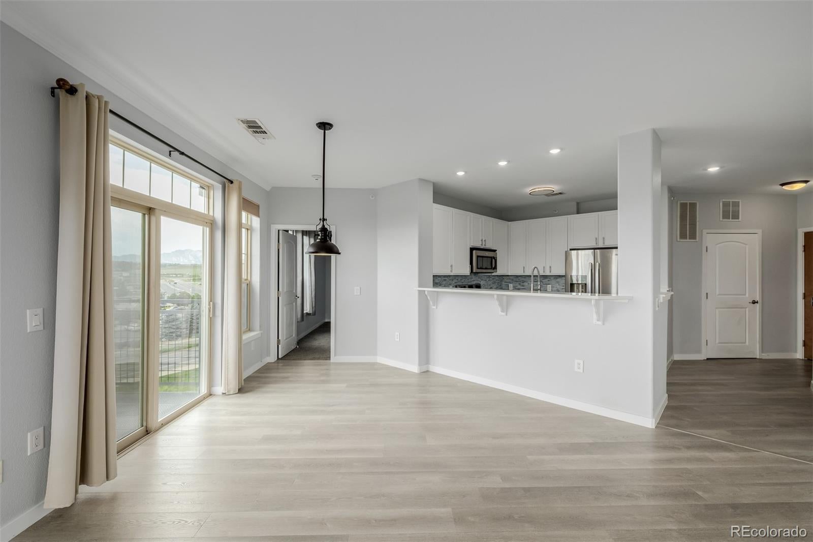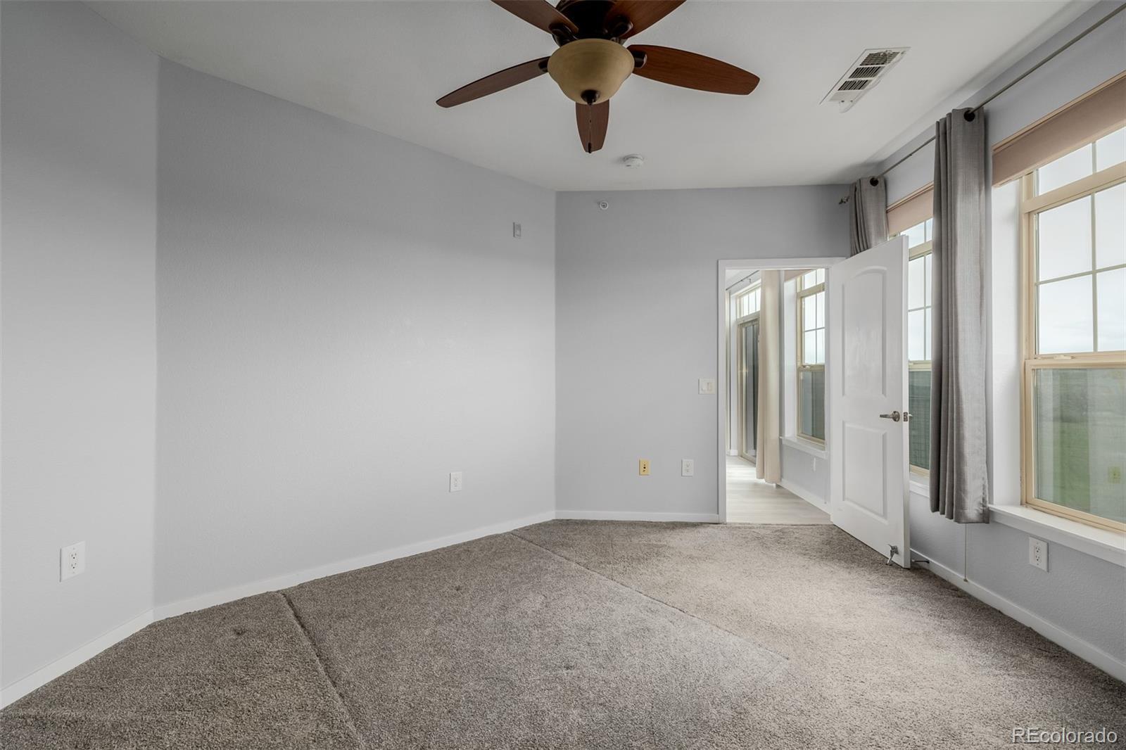 Incredible top floor corner Flat with views of the front range and vast open space. Open Floorplan with incredible light from oversized windows and SW Patio. Updated kitchen with quartz countertops, white cabinets with 42' uppers for extra storage, pantry, and stainless appliances. Great room includes a cozy electric fireplace to warm up to while admiring the Flat Irons. Primary Bedroom features a large walk in closet and secondary closet and a 4-piece bath with large soaking tub and walk in shower. Secondary ensuite has a massive walk-in closet and attached full bath. Laundry room offers full size washer and dryer and additional storage. Parking is conveniently located near the elevator in the parking garage and an additional 1 car detached garage with storage shelving. Vantage Pointe has an amazing community clubhouse with pool, hot tub and fully equipped gym. Private detached single car garage with storage shelving and EV charging outlet- may need separate deed from condo.