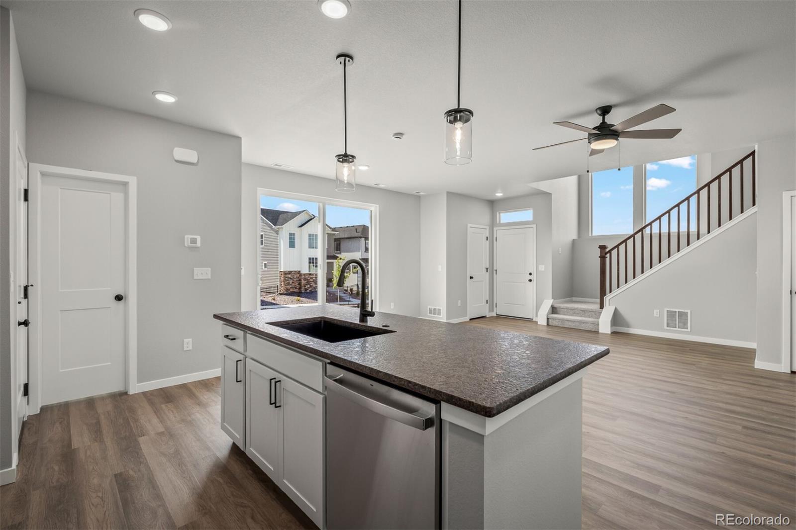Welcome to this breathtaking new two-story home for sale in the coveted Wolf Ranch community. As you approach, the striking modern facade immediately captures your attention, while the expansive windows offer a glimpse into the bright and inviting interior of this stunning home in Colorado Springs, CO. Step inside and be welcomed by the open- concept main floor, where the airy atmosphere is enhanced by an abundance of natural light pouring in through the oversized windows. At the heart of the home is the sleek, chef-inspired kitchen, equipped with top-of-the-line appliances, including a gas range, under-cabinet vent hood, built-in microwave, and elegant leathered granite countertops. The pristine white cabinetry offers ample storage, making this kitchen the perfect space for both culinary creativity and entertaining guests. The family room is bathed in natural light, creating the perfect space for nights in. From the dining room, a large sliding glass door opens to a xeriscaped private side yard—your own peaceful outdoor retreat, ideal for al fresco dining or simply relaxing in serene surroundings. Upstairs, a versatile loft area offers endless possibilities, whether as a home office, playroom, or additional living space. Two spacious guest bedrooms provide comfort and privacy for family or friends, while a full bathroom and convenient laundry room add to the functionality of this thoughtfully designed second floor. When it’s time to unwind, retreat to the luxurious Owner's Retreat, where tranquility awaits. The spa-like Owner's Bath features our signature Super Shower, offering a rejuvenating escape from the demands of daily life.