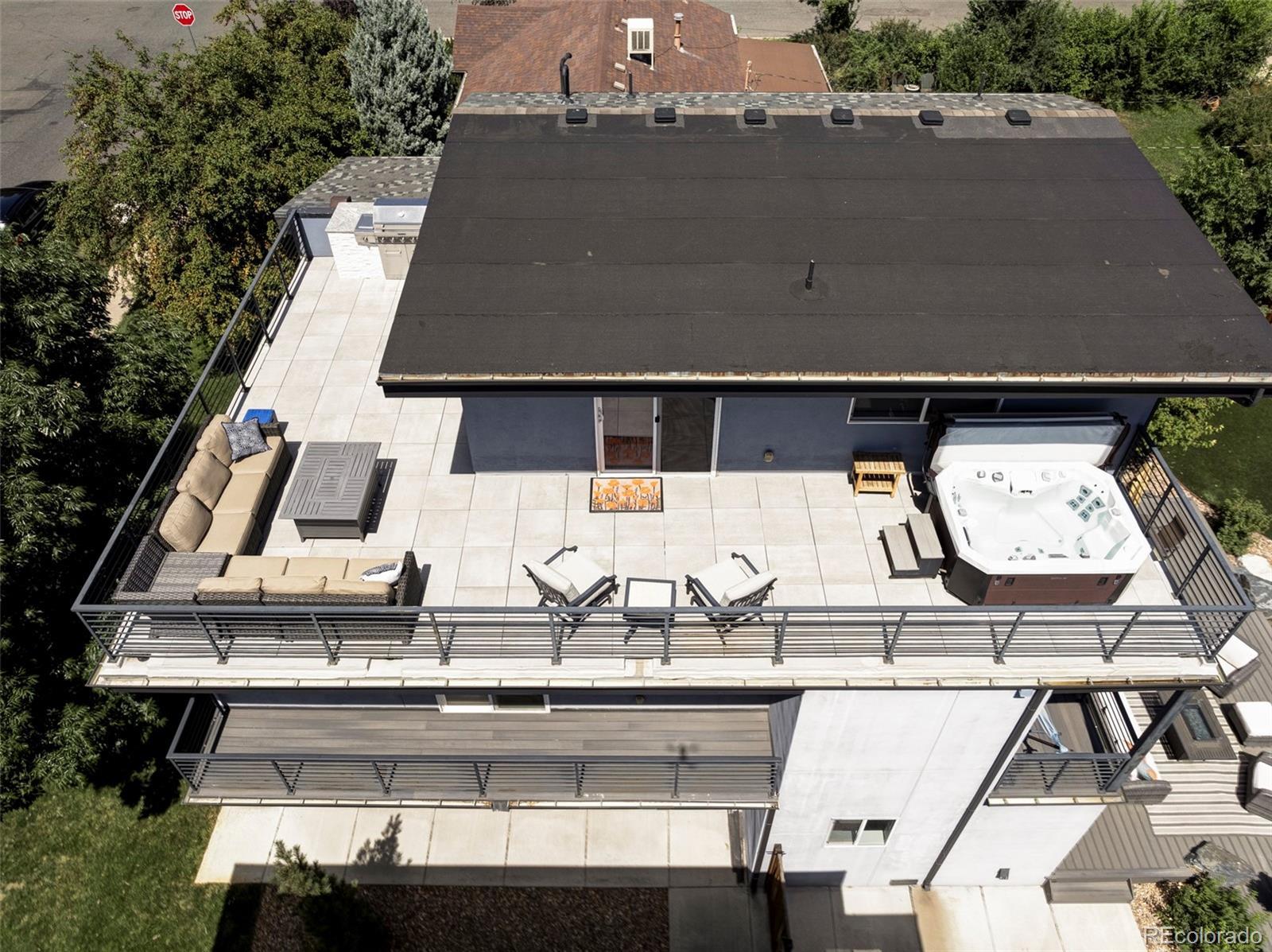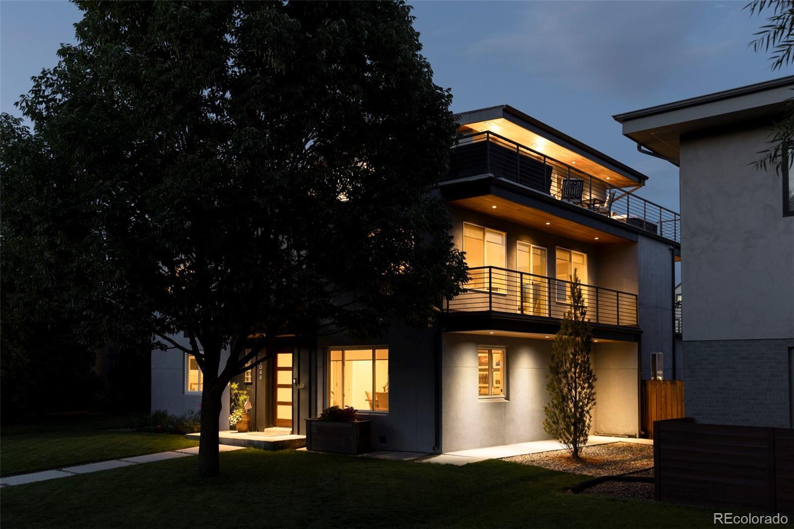 Perfectly positioned just one block from Sloan’s Lake, this exceptional three-story residence offers the ideal blend of vibrant city living and serene park-side proximity. Thoughtfully designed and beautifully finished, the home showcases high-end details throughout. The open main level features a formal dining room and a welcoming living area centered around a striking stone-clad gas fireplace. The expansive chef’s kitchen is a showpiece, complete with a 10-foot island, custom cabinetry, slab granite countertops, and stainless KitchenAid appliances—perfect for entertaining and everyday living. This level also includes two spacious en-suite bedrooms (one currently configured as a gym), a powder room, and a laundry room, all within an open and airy layout. Upstairs, a secondary living area offers another stone-wall gas fireplace, access to two balconies, and an additional powder room. A well-appointed study with custom built-ins includes a closet, making way to easily function as a bedroom if needed. The tranquil primary suite is a true retreat, featuring a spa-like bath and walk-in closet. The third level is designed for entertaining, with a wet bar and lounge opening to a sprawling rooftop deck complete with a built-in barbecue, hot tub, and stunning views. Professionally landscaped grounds surround a private backyard and patio with a soothing water feature, creating seamless indoor-outdoor living. A rare and valuable bonus, the property includes a 3-car garage with add'l 4th parking space - perfect for boat or RV. The garage also offers excellent potential for a sizable ADU by “popping the top” (buyer to verify all city and county regulations). Enjoy easy access to downtown, the mountains, DTC, and the airport, plus close proximity to Edgewater Market, Highlands Square, LoHi, Empower Field, and more. Every detail is custom or top quality in an unbeatable location. A transferable home warranty with enhanced coverage is included—ask the listing agent for details.