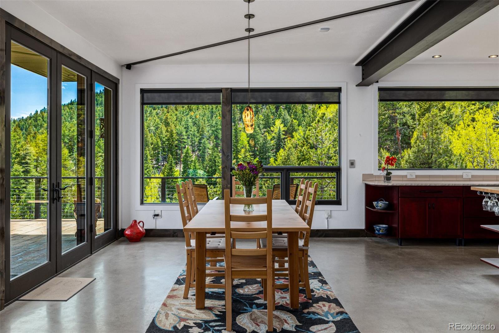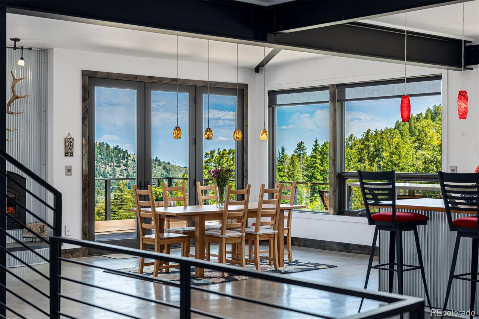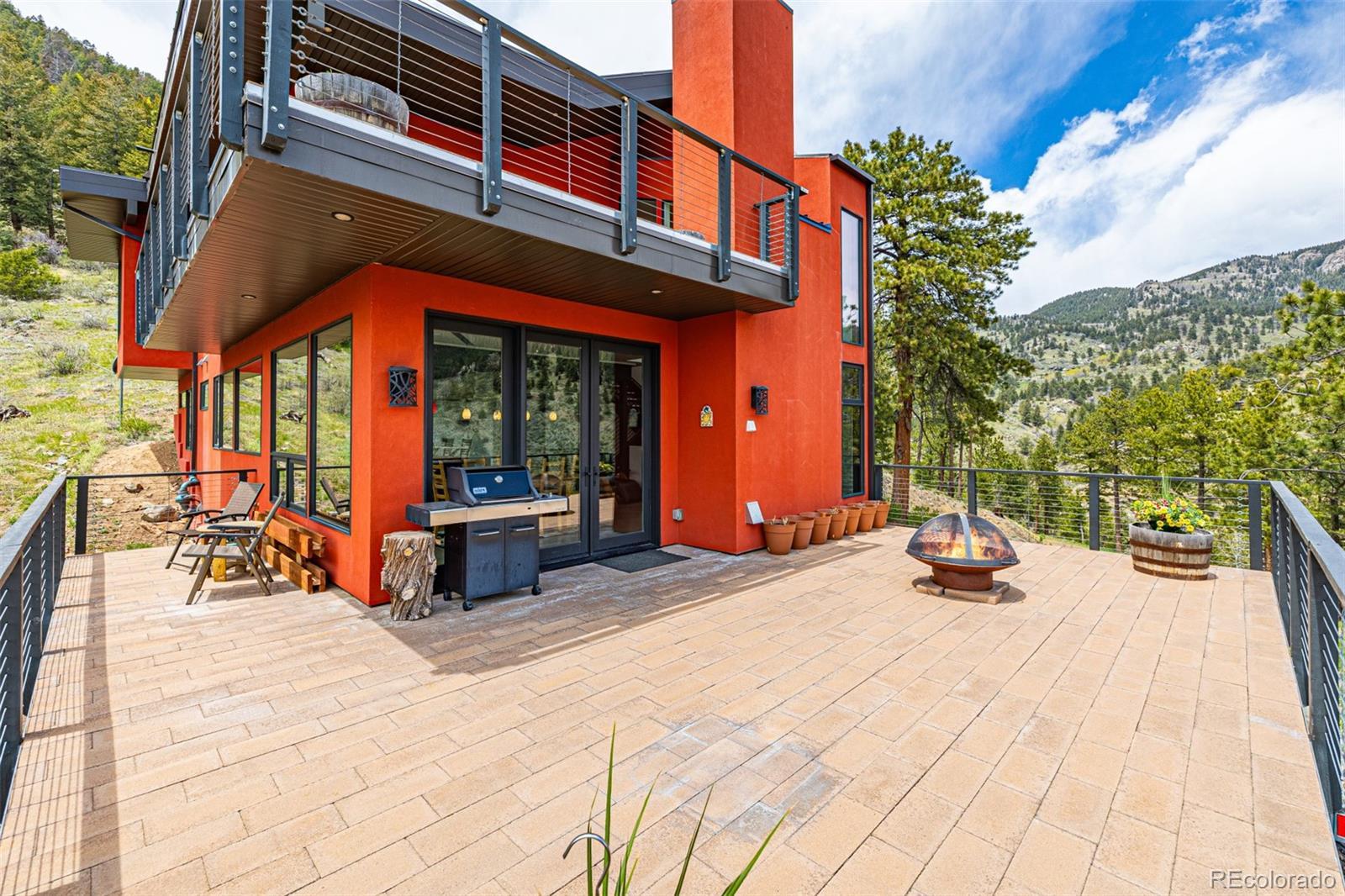 Nearly 75 acres of pure privacy—two separately deeded parcels sold together with a private driveway—bordering Jefferson County Open Space on two sides. You won’t see a neighbor from the house, just forest, sky, and endless peace. The land has been lovingly cared for to preserve the native ecosystem. Wildlife, wildflowers, and natural beauty are part of daily life here. Designed by Gettliffe Architecture in Boulder, the home blends modern green design with mountain serenity. Fire- conscious materials include stucco siding, steel north-facing wall, enclosed soffits, standing seam metal roof (angled for future solar and PV), and concrete deck pavers. Passive solar design, thick insulated walls, ICF (insulated concrete forms) foundation, and radiant concrete floors keep things cozy and energy efficient. Recycled quartz (Ecostone Quartz) and recycled glass (IceStone) counters add an eco-friendly touch. Two large decks look out over evergreen forest, a peaceful meadow, seasonal stream, rock outcroppings, mountain views and a spring-fed pond. Moose and deer wander through regularly. It’s quiet, restorative, and truly connected to the land. Perfect for those who crave stillness, nature, and space to breathe. The layout includes 2 bedrooms plus a media room that’s ready to become a 3rd bedroom with a retractable or floating wall, space for a home gym, heated garage and loft area ideal for a home office or creative space. The home is elevator-ready, with space built in for future installation if needed. Just 20 minutes to Golden and close to excellent multi- use (hiking, biking, equestrian) trails, fishing, cross-country skiing, and more with easy access to Golden Gate Canyon State Park, Centennial Cone Park and White Ranch Park. Proximity to I-70 takes you to dining in Denver or world-class ski resorts in the mountains.