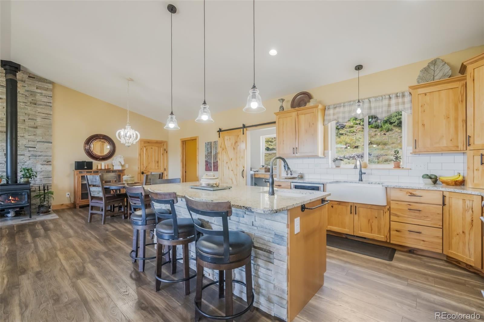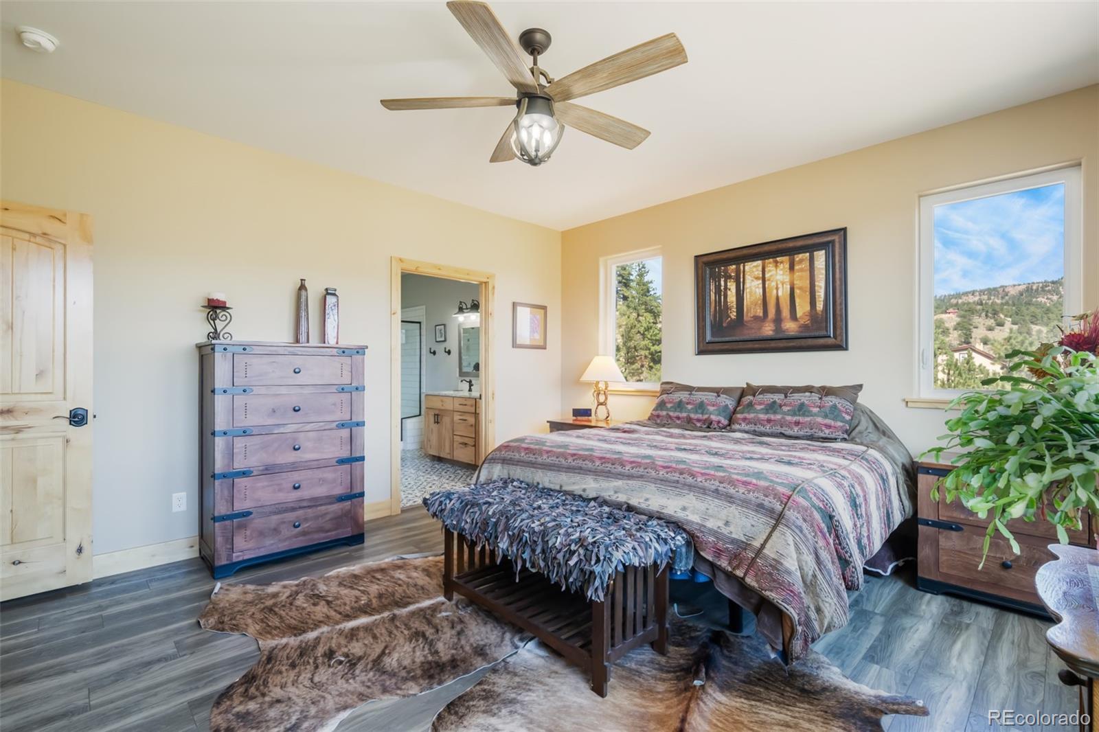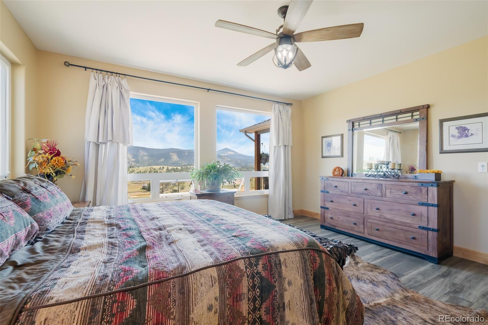 Experience the essence of mountain living in this custom-built ranch-style home on 11.8 picturesque acres in Florissant, CO. Designed with comfort mountain style, this stucco home combines elegance with rugged beauty, perfectly complementing the natural surroundings. As you approach, you'll be captivated by sweeping views of the iconic Pikes Peak and the striking rock outcroppings scattered across the property. The expansive acreage offers ample space for both leisure and livestock, complete with a barn featuring 2 stalls and multiple fenced pastures, ideal for equestrian enthusiasts or those seeking a hobby farm. Inside, the home boasts a seamless blend of rustic charm and modern sophistication. The heart of the home is its open concept great room and the kitchen is a chef's dream outfitted with top-of-the-line appliances, sleek finishes, and ample storage. Whether preparing gourmet meals or hosting friends and family, this kitchen ensures effortless functionality and style. The raised ranch layout provides ease of living, with spacious living areas and picture windows that open to breathtaking outdoor vistas, filling the home with natural light and creating an inviting atmosphere. Enjoy the best of indoor-outdoor living as you relax on the porch, savoring the crisp mountain air and panoramic views that stretch across the horizon. With endless possibilities for recreation and serene privacy, this property offers a rare combination of luxury, comfort, and the beauty of Colorado’s high country. Whether you’re looking for a peaceful retreat or a full-time residence, this property offers a truly unique mountain lifestyle.