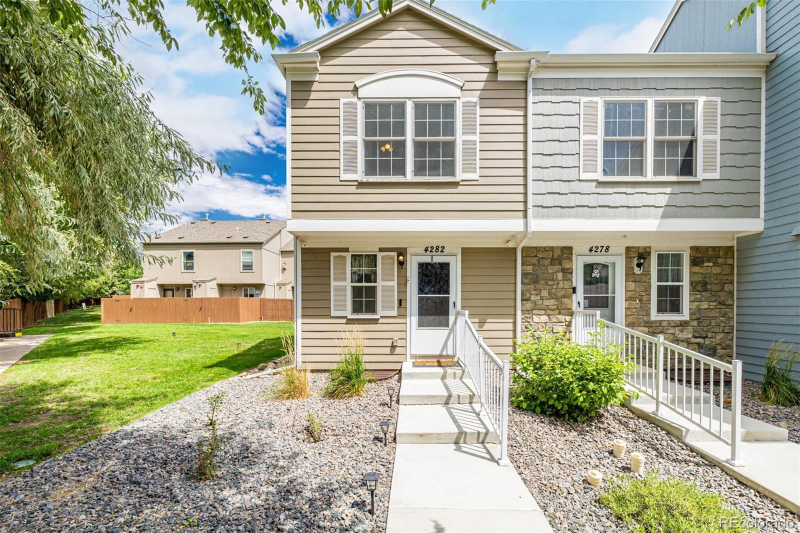 You'll LOVE this charming, well-kept townhome in Sunstone! Offering 2 beds & 2 baths, this beauty tastefully combines comfort and convenience. The inviting interior showcases a neutral palette and wood-look flooring with plush carpet in all the right places. With a fireplace as the focal point, the seamlessly flowing living & dining room exudes warmth and character. The kitchen boasts stainless steel appliances, ample white cabinetry, a pantry, and a 2-tier peninsula with a breakfast bar. Two well-appointed bedrooms await upstairs! The primary bedroom has access to the Jack & Jill bathroom. Let's not forget the finished basement! Featuring a large closet and a bathroom, making it ideal for a 3rd non-conforming bedroom or family room space as well. The sliding doors from the living area open to the private yard, where you can relax or enjoy BBQ! A cozy deck, artificial turf, and an attached storage closet complete the picture. The unit also includes an assigned parking space. PLUS! This gem is just in front of the Community pool and near the playground. Minutes away from schools, shopping, dining options, entertainment, and highways. Don't miss this opportunity!