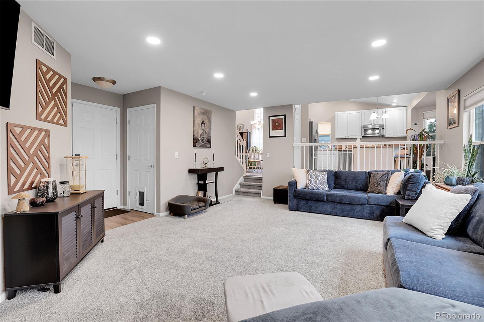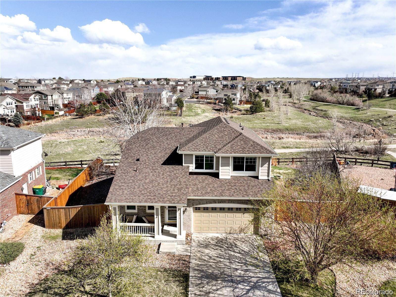 Step into peace of mind with major upgrades already done for you! This Tollgate Crossing home shines with a brand-new high-efficiency furnace and AC (July 2025), new carpet and water heater (2023), and a new roof and garage door (2022). A stunning stamped concrete patio with an additional pad is ready for your future hot tub—perfect for relaxing evenings outdoors. Tucked away on a quiet cul-de-sac and set on an expansive 9,583 sq. ft. lot backing to open space and scenic trails, this property offers privacy and plenty of room to enjoy the outdoors. Inside, soaring vaulted ceilings and abundant natural light accentuate the open, airy layout. The kitchen stands out with stainless steel appliances, crisp white cabinetry, and a large center island ideal for cooking, entertaining, and gathering. The main level features a cozy gas fireplace and a convenient laundry room, while the upper level offers a bright primary suite with en-suite bath, plus two additional bedrooms and a full bath. The finished basement provides versatile living space—perfect for a home office, gym, or non-conforming fourth bedroom. Enjoy community living at its best with access to a neighborhood pool, clubhouse, and multiple parks, all within walking distance. Located in the highly regarded Cherry Creek School District and just 20 minutes from DIA, this home delivers the perfect blend of comfort, convenience, and value in one of Aurora’s most desirable communities.