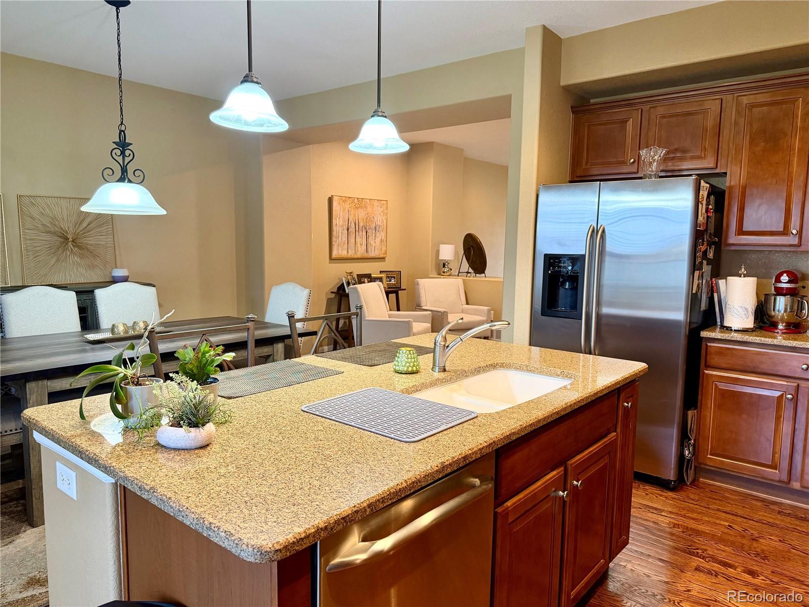 Beautiful, Move-In Ready Townhome in Sought-After Town Center! This spotless 3-bedroom townhome offers comfort, style, and an unbeatable location complete with an attached 2-car garage. Enjoy hardwood floors in the kitchen and dining area, brand-new stainless steel appliances, and granite countertops in the kitchen. The home features 2.5 fully tiled bathrooms, a spacious primary bedroom suite with a walk-in closet, and a convenient second-floor laundry room (washer and dryer are not included). Additional storage is available in the basement, and a large private balcony provides the perfect space to relax or entertain. Rent includes landscaping, snow removal, and trash service, plus access to the Highlands Ranch Community Association amenities 4 recreation centers, miles of scenic trails, and numerous parks. Located just steps from Highlands Ranch Town Center, Civic Green Park, the library, restaurants, and shopping. Minutes from UCHealth Hospital and Children's Hospital. This is truly a fantastic place to call home.