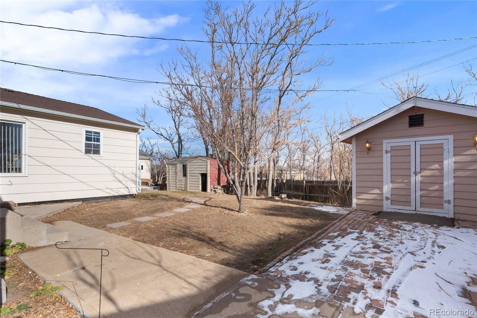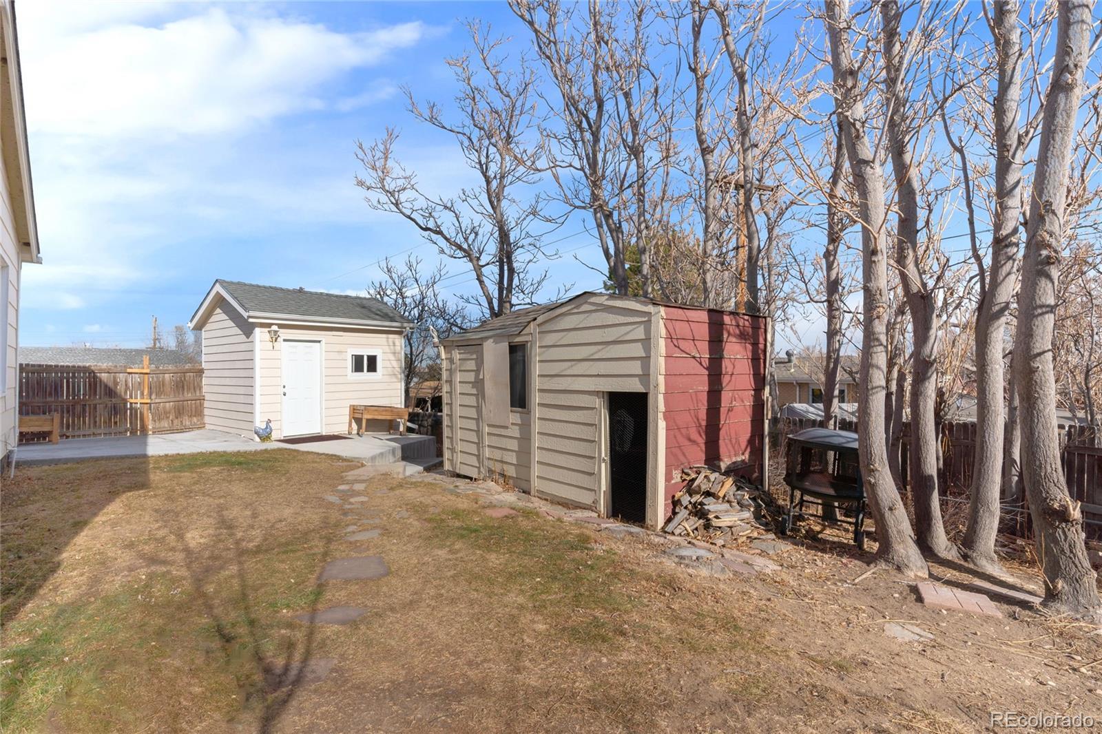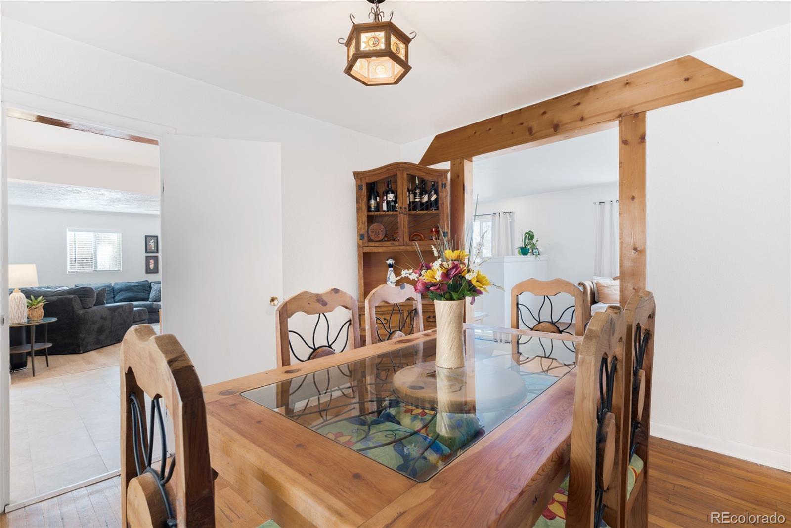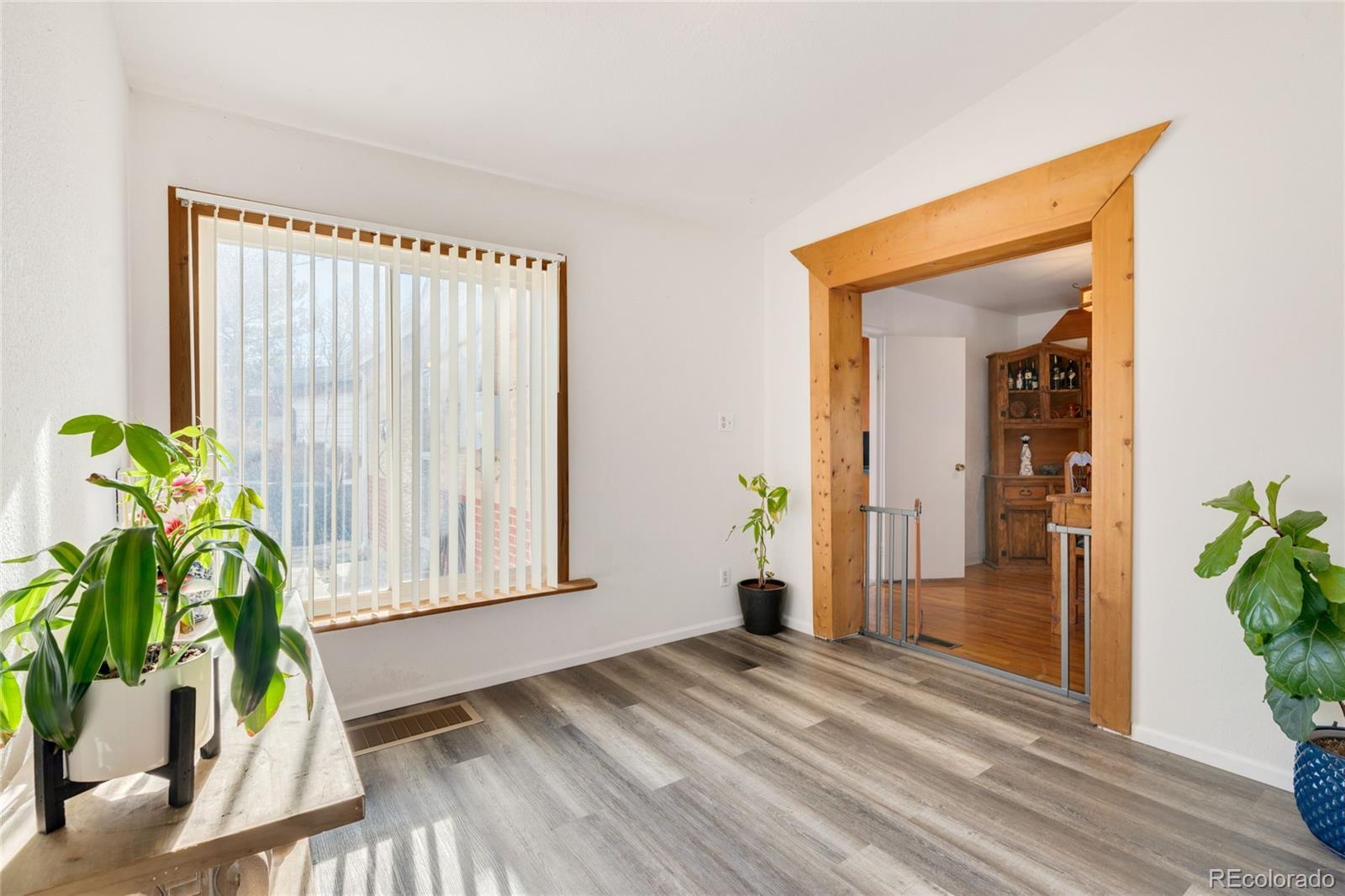 Welcome to this spacious 4 BR 2 B ranch home on oversized corner lot! The living room has wood floors and plenty of natural light. There are 2 dining areas for your daily meals and formal dining. Large kitchen space is sufficient but could be easily updated. There is space for an island and many more cabinets. Huge walk-in pantry for all of your storage needs and a separate laundry room is conveniently located. Generous size family room opens to kitchen and is the heart of the home. Nice bonus space off of dining area can be used as an office, play area or exercise space. The main bedroom has a large closet, ceiling fan and an attached bathroom. There are 3 more bedrooms and a full bath that complete the home. The private backyard with large concrete patio is perfect for your morning coffee, BBQ's and entertaining. There are 3 storage sheds in fenced backyard, one could make a good chicken coop. The large concrete driveway next to the home provides off-street parking for many vehicles with stairs leading to the home's back door. This wonderful home is located near York International School K-12, Thornton Community Center , Anythink Library, City Pool and Community Park. It is only minutes to I-25, I-76 and the light rail station to Denver to help with your commute. Make plans to view this home today before it's too late!