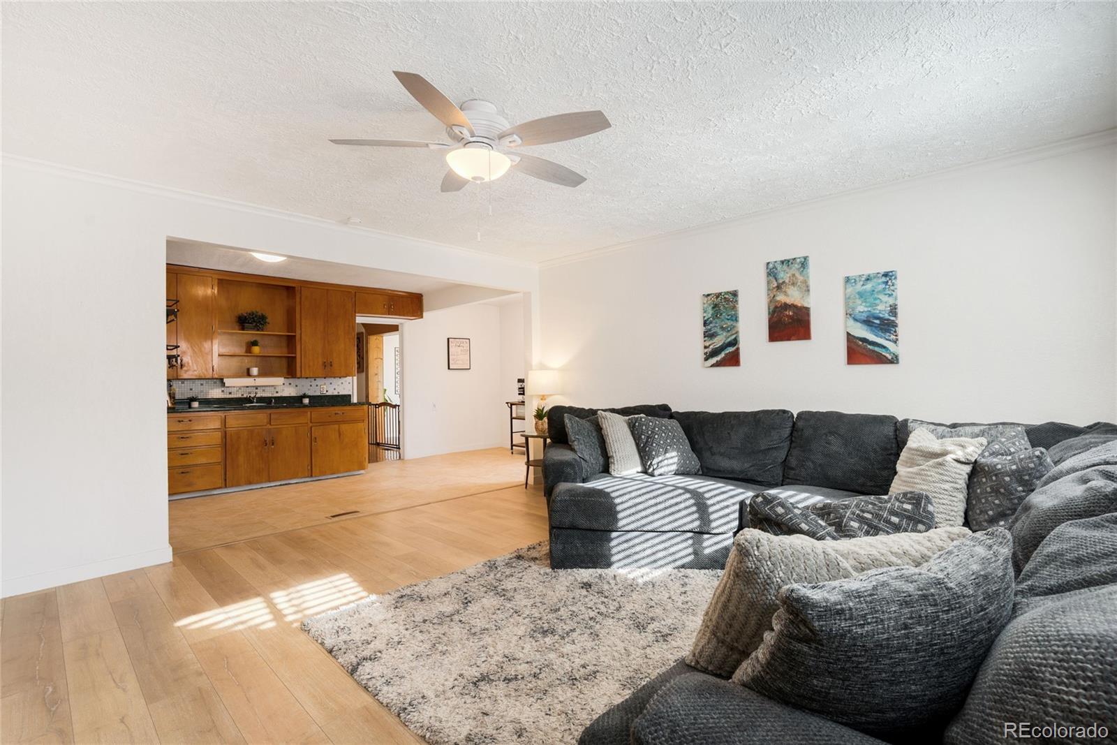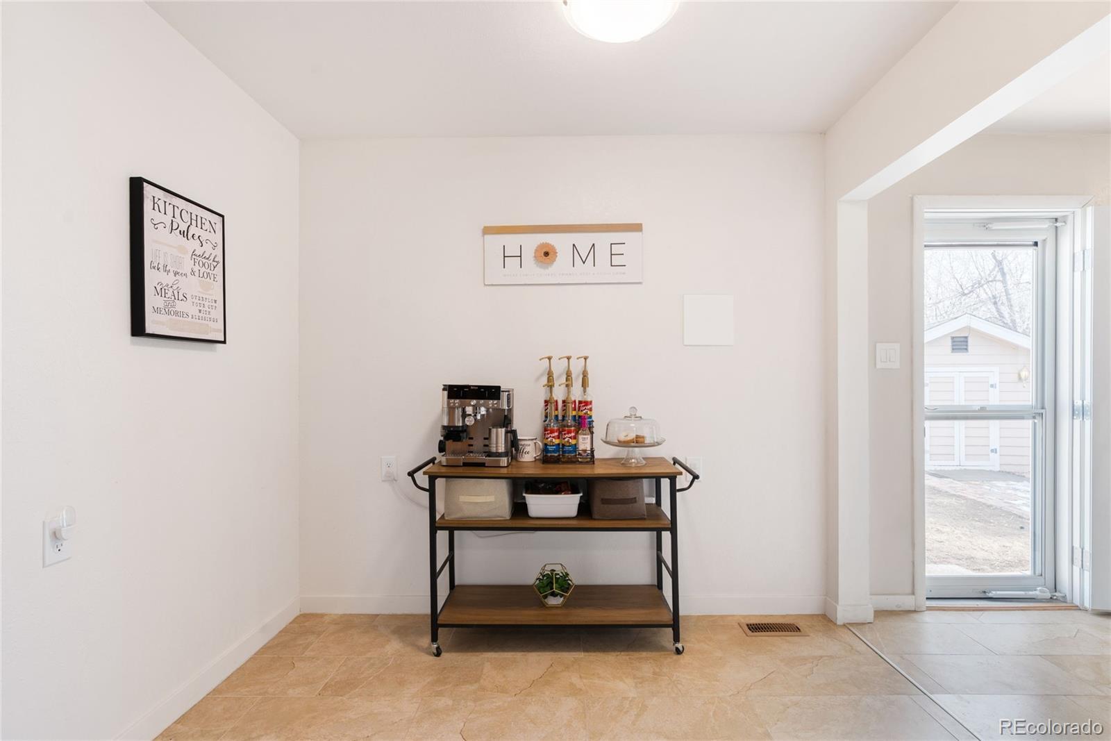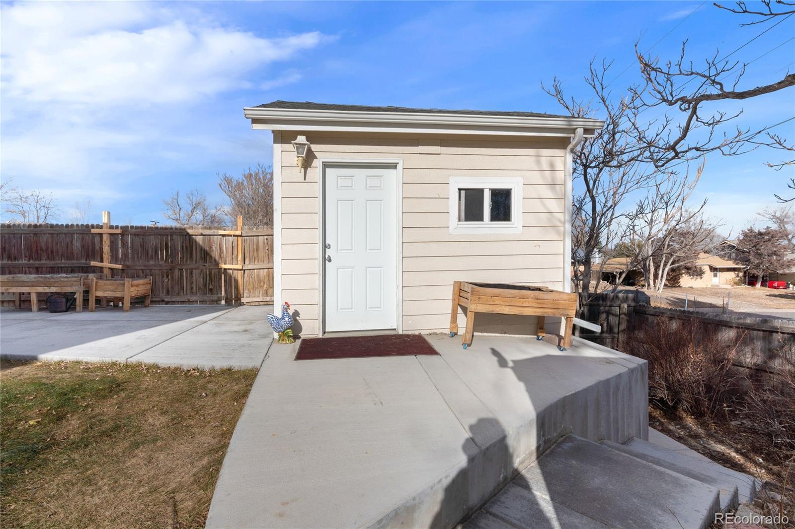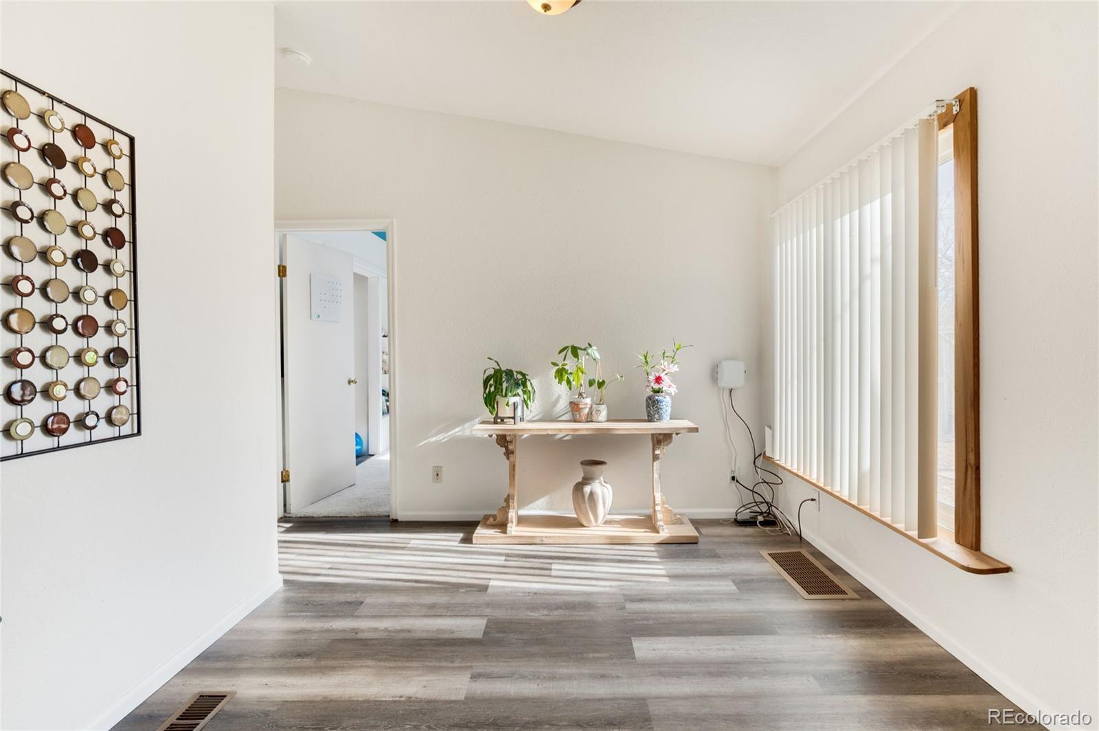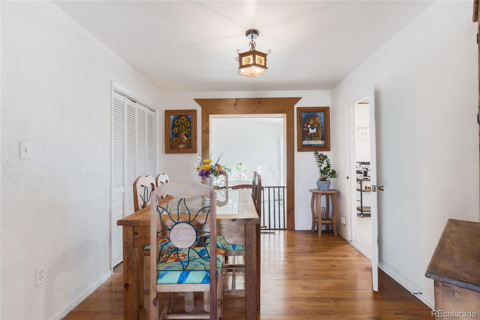 Welcome to this spacious 4 BR 2 B ranch home on oversized corner lot! The living room has wood floors and plenty of natural light. There are 2 dining areas for your daily meals and formal dining. Large kitchen space is sufficient but could be easily updated. There is space for an island and many more cabinets. Huge walk-in pantry for all of your storage needs and a separate laundry room is conveniently located. Generous size family room opens to kitchen and is the heart of the home. Nice bonus space off of dining area can be used as an office, play area or exercise space. The main bedroom has a large closet, ceiling fan and an attached bathroom. There are 3 more bedrooms and a full bath that complete the home. The private backyard with large concrete patio is perfect for your morning coffee, BBQ's and entertaining. There are 3 storage sheds in fenced backyard, one could make a good chicken coop. The large concrete driveway next to the home provides off-street parking for many vehicles with stairs leading to the home's back door. This wonderful home is located near York International School K-12, Thornton Community Center , Anythink Library, City Pool and Community Park. It is only minutes to I-25, I-76 and the light rail station to Denver to help with your commute. Make plans to view this home today before it's too late!
