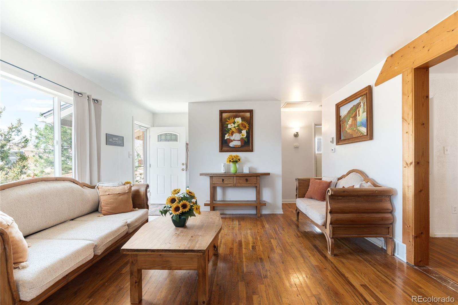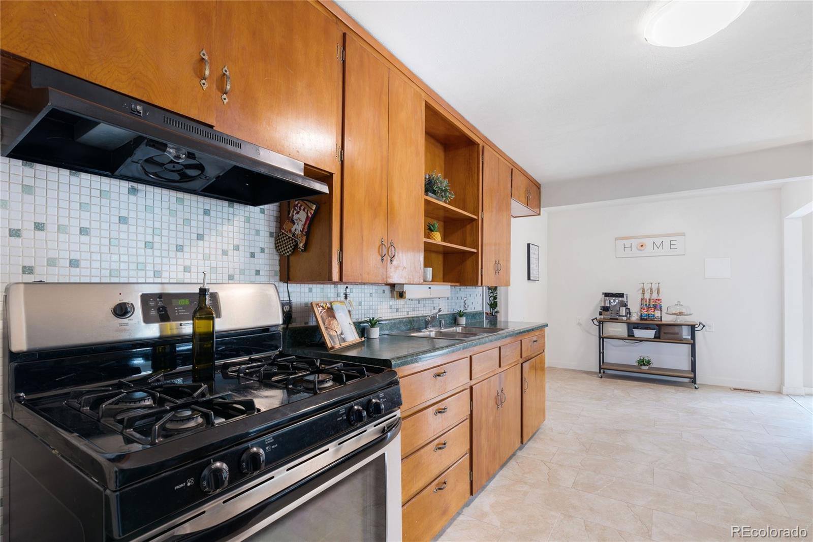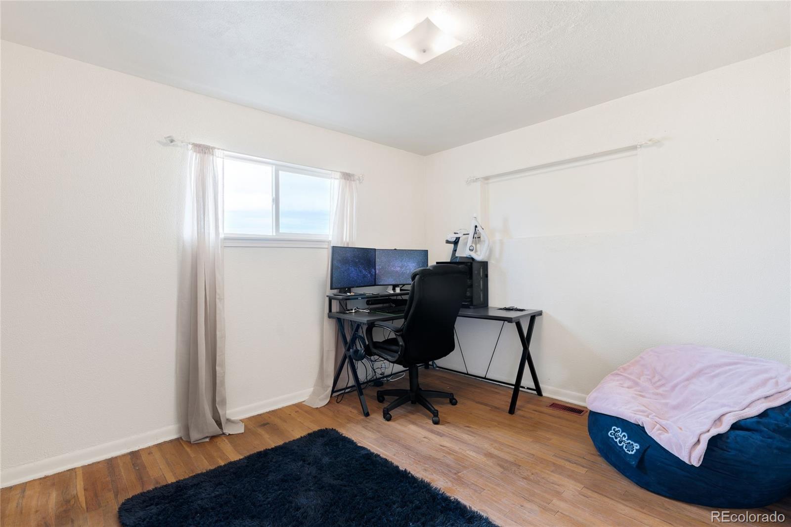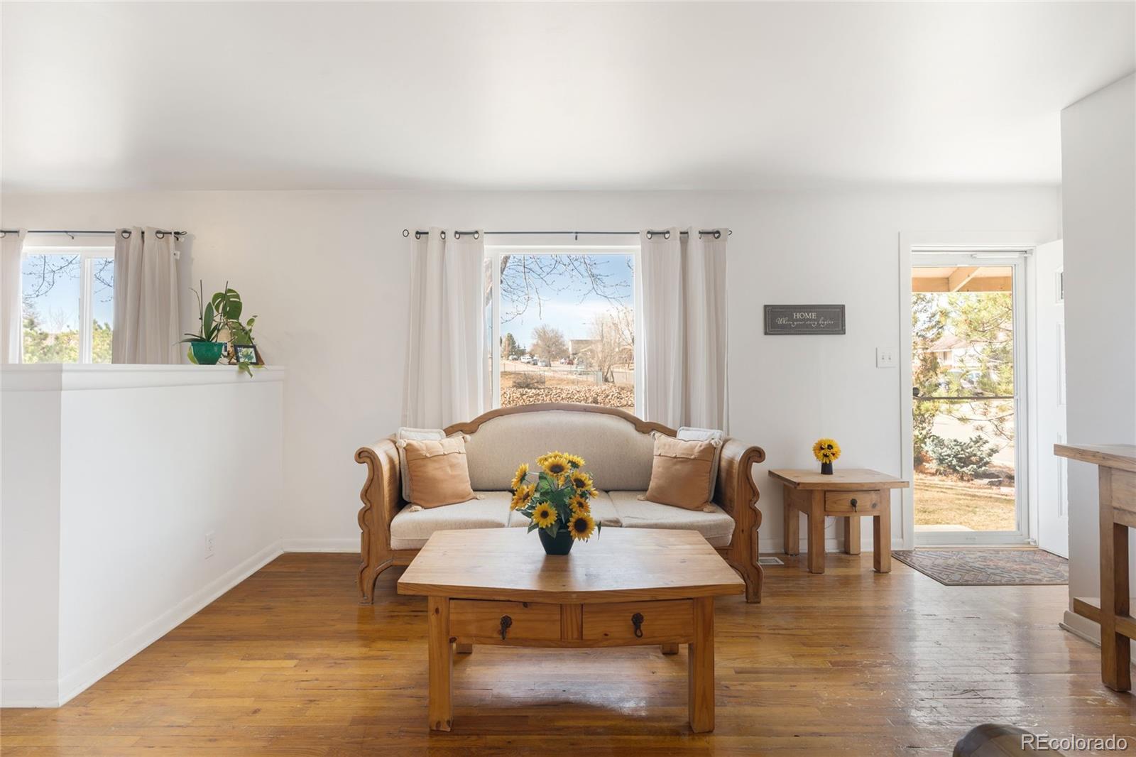 Welcome to this spacious 4 BR 2 B ranch home on oversized corner lot! The living room has wood floors and plenty of natural light. There are 2 dining areas for your daily meals and formal dining. Large kitchen space is sufficient but could be easily updated. There is space for an island and many more cabinets. Huge walk-in pantry for all of your storage needs and a separate laundry room is conveniently located. Generous size family room opens to kitchen and is the heart of the home. Nice bonus space off of dining area can be used as an office, play area or exercise space. The main bedroom has a large closet, ceiling fan and an attached bathroom. There are 3 more bedrooms and a full bath that complete the home. The private backyard with large concrete patio is perfect for your morning coffee, BBQ's and entertaining. There are 3 storage sheds in fenced backyard, one could make a good chicken coop. The large concrete driveway next to the home provides off-street parking for many vehicles with stairs leading to the home's back door. This wonderful home is located near York International School K-12, Thornton Community Center , Anythink Library, City Pool and Community Park. It is only minutes to I-25, I-76 and the light rail station to Denver to help with your commute. Make plans to view this home today before it's too late!