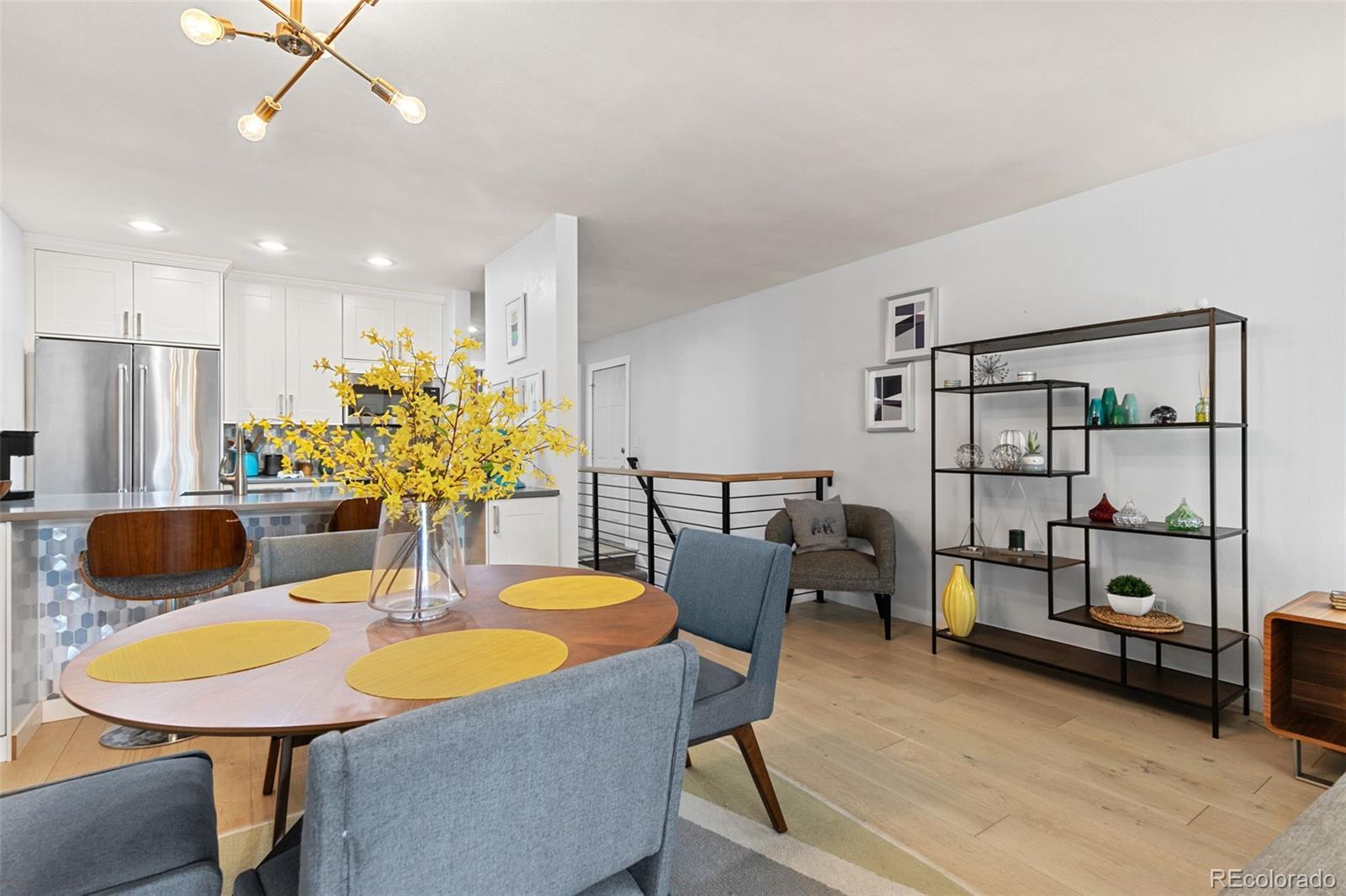 Welcome to this beautifully updated 2-bedroom, 2-bathroom condo nestled in the heart of Denver. Spanning 1,672 square feet, this home offers a spacious and comfortable living environment. The open floor plan seamlessly connects the living, dining, and kitchen areas, creating an inviting space perfect for both relaxation and entertaining. Enjoy fabulous upgrades throughout and not limited to: stainless steel appliances, attached 1 car garage, two private patios, engineered white oak hardwood floors, custom stairwell, built in entertainment center in the basement, custom tile fireplace, quartz countertops, and fully updated bathrooms! The kitchen features modern appliances and ample counter space, catering to all your culinary needs. Both bedrooms are generously sized, providing a peaceful retreat at the end of the day. The bathrooms are thoughtfully designed, combining functionality with style. Built in 1978, this condo combines classic architecture with modern conveniences. Its prime location offers easy access to local amenities, shopping centers, and dining options, ensuring you're never far from the action.