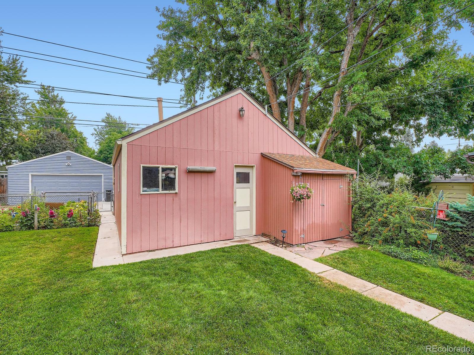 Seller will pay up to $12,000 toward a 2/1 buydown, closing cost or price reduction! Don't miss this great opportunity to buy this charming home with an oversized 2 car detached garage with alley access. This home radiates warmth and charm from the moment you walk in. These owners have lived in the house for 60 years and maintained the home to highest standard. The original home has two bedrooms and one full bath on the main floor and one or two non-conforming bedrooms in the basement with a 3/4 bath utility room and spacious laundry area. In addition, there is a family room addition on the back of the home with a gas burning stove and access to a cute patio area, beautifully maintained fenced back yard and large oversized garage with pull down stairs to the attic. The homeowner, being a master electrician, also wired the home so you can plug in a generator (also included) if the power ever goes out. Additional features of the home are an automatic sprinkler system in the front and back yards, evaporative cooler, fenced garden area and beautiful hardwood floors under the carpet on the main floor. There are also lovely built-in cabinets throughout the home. You will also love being part of this historic neighborhood with nearby parks, hiking/biking trails, shopping and great access to Denver University. Don't miss out on this great opportunity. All the hardwood floors were professionally sanded and refinished by Aspen Flooring. All offers are greatly appreciated.