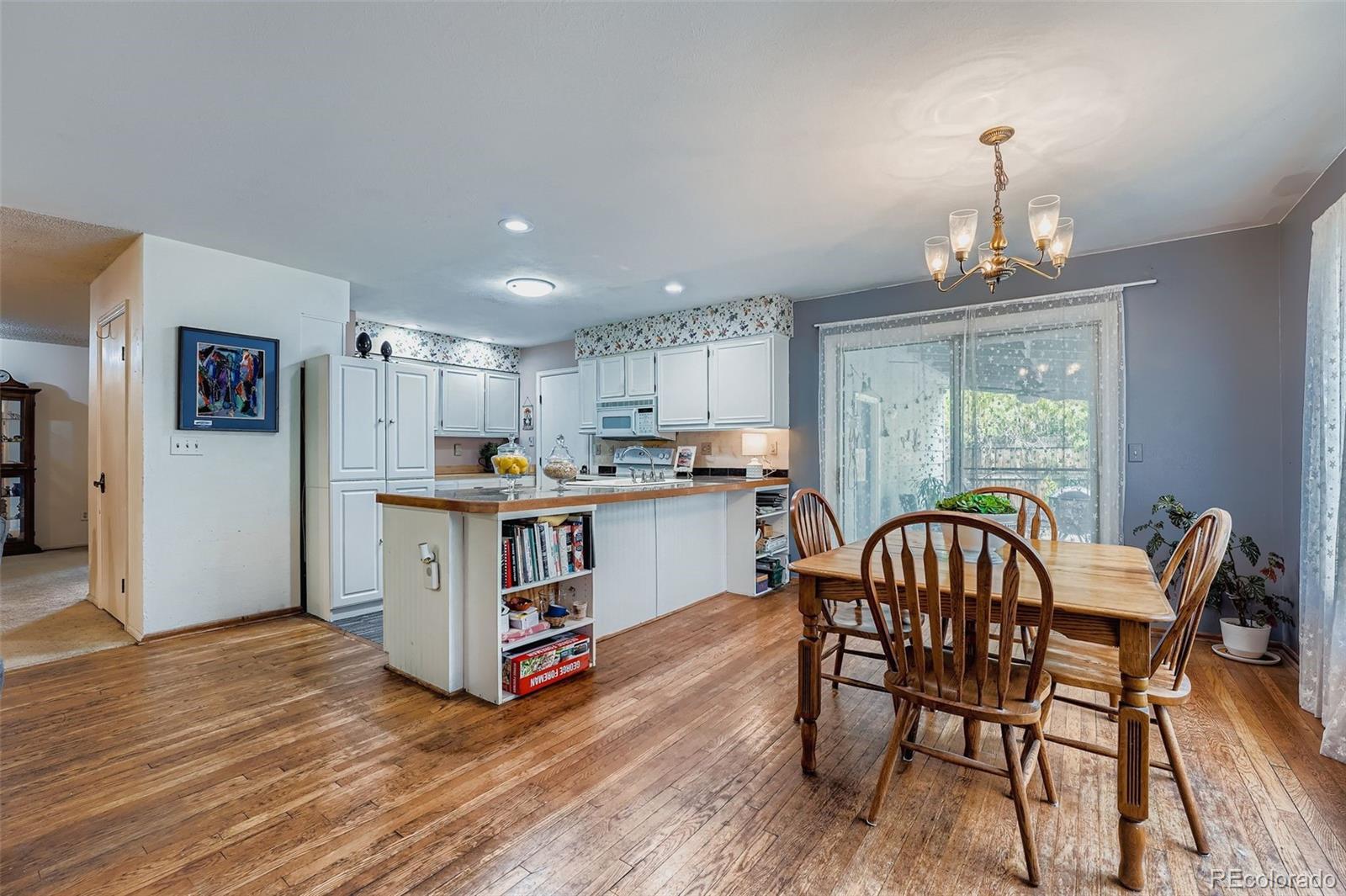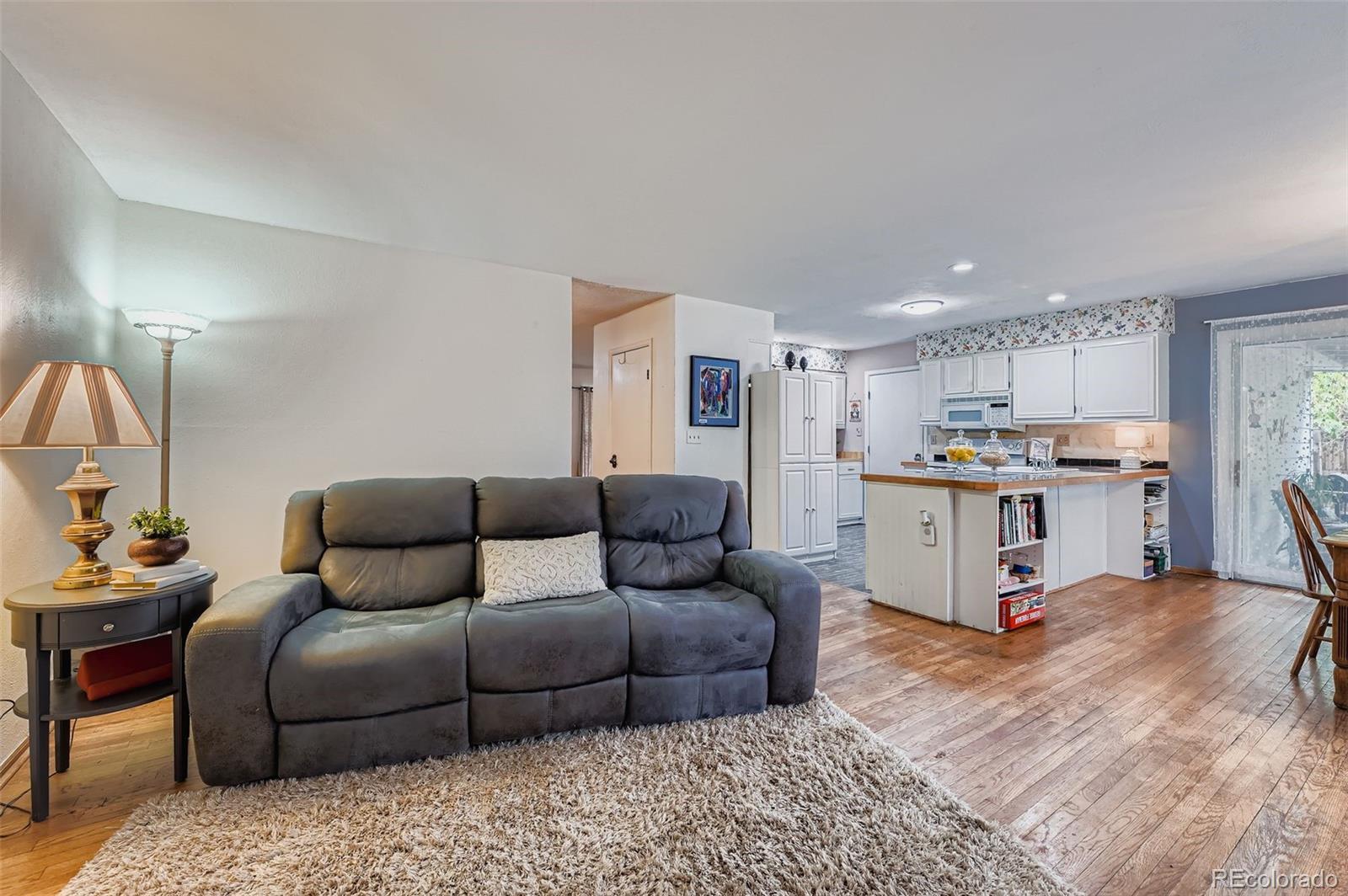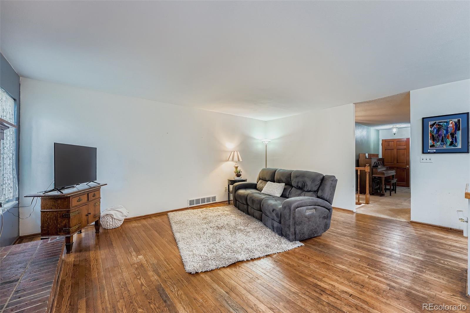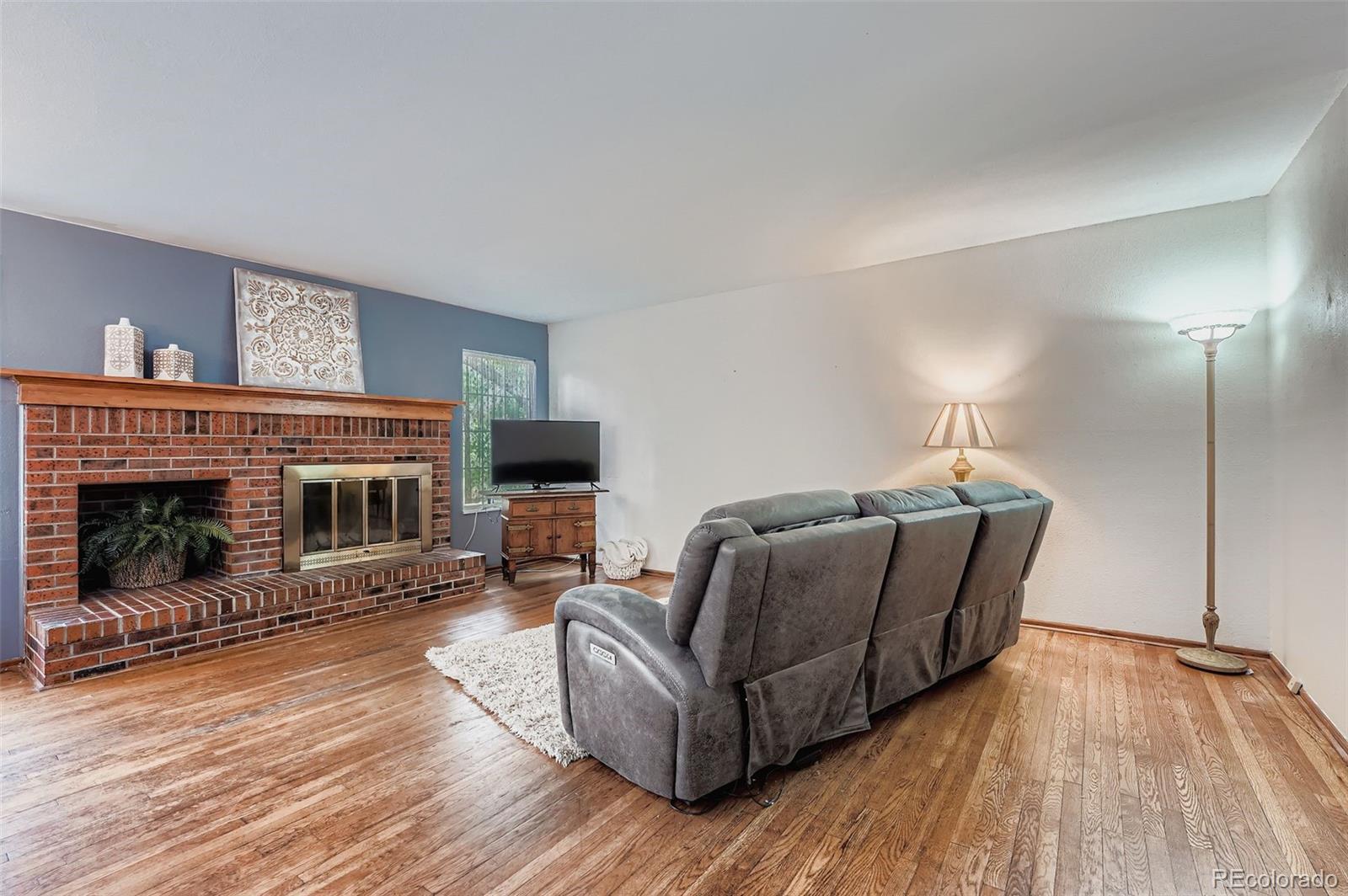 Spacious ranch-style home in the sought-after Aurora Highlands, this property offers a park-like setting with mature trees, and privacy fencing—an ideal retreat to call home. Step inside to find an inviting entry with abundant natural light and gleaming hardwood floors throughout. Sunny front room is a versatile flex space with endless potential as a formal dining room, additional living area, or home office! The open-concept layout offers seamless flow, with a large family room with a cozy fireplace, and a dining room that opens to a outdoor covered patio for entertaining. The adjacent casual dining area is perfect for both everyday meals and holiday gatherings. The main level also includes a spacious primary suite with ensuite bath, two secondary bedrooms, and full bathroom. Downstairs, an enormous, finished basement offers even more room to spread out with a massive recreation room, one oversized bedroom, large media room, large storage area, an additional bathroom, and laundry area (washer and dryer included)!! Enjoy the Colorado sunshine in your private backyard oasis, complete with a covered patio, expansive lawn, and mature landscaping—perfect for entertaining or relaxing all summer long. Also included is a oversized 2 car garage. All of this conveniently located near shopping, dining, and easy highway access. 1 year home warranty will come with this home.