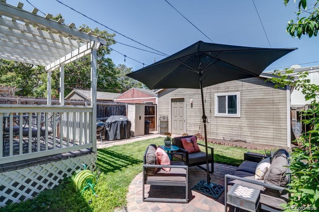 Nestled in the heart of charming Five Points/Rino, this well-maintained historic home offers exceptional walkability and access to downtown. This 2-bed, 1-bathroom has been updated to fit today's lifestyle. The bright and updated kitchen features granite, stainless steal appliances, a solar tubular skylight, ample storage, and an eat-in counter which flows seamlessly to the dining and living rooms. The entire house has been updated including a dual vanity main bath which also features a solar skylight. The large primary bedroom with vaulted ceilings is the perfect place for rest and relaxation. In your oasis of a backyard, there are ample seating areas and a great deck. Newly installed sprinkler systems in both the front and back yards. A new oversized two-car garage with ample space for storage. The Murphy Bed in the front room is negotiable. Highlight walkable interests include: Spangalang Brewery, Rosenberg's Bagels, Taco Uprising, Birdcall, Denver Rec Center, Rino District 15 min walk, Curtis Park 2 blocks, L LINE 5 min walk to the 30th and Downing Park and Ride.