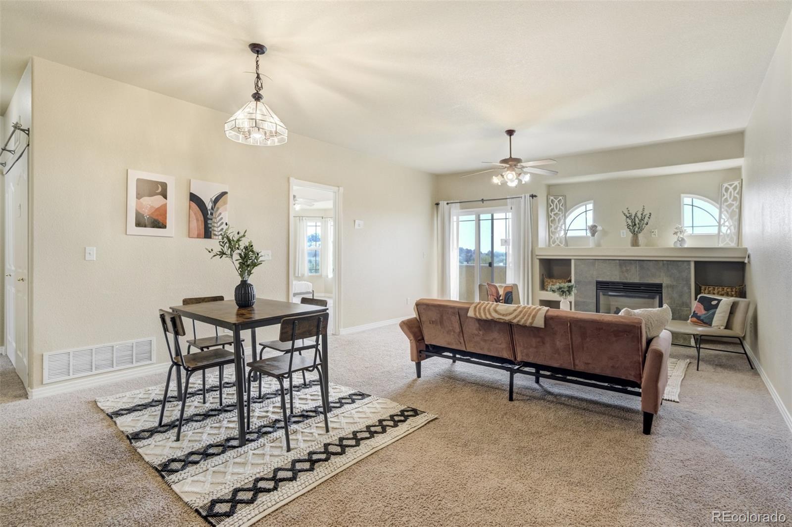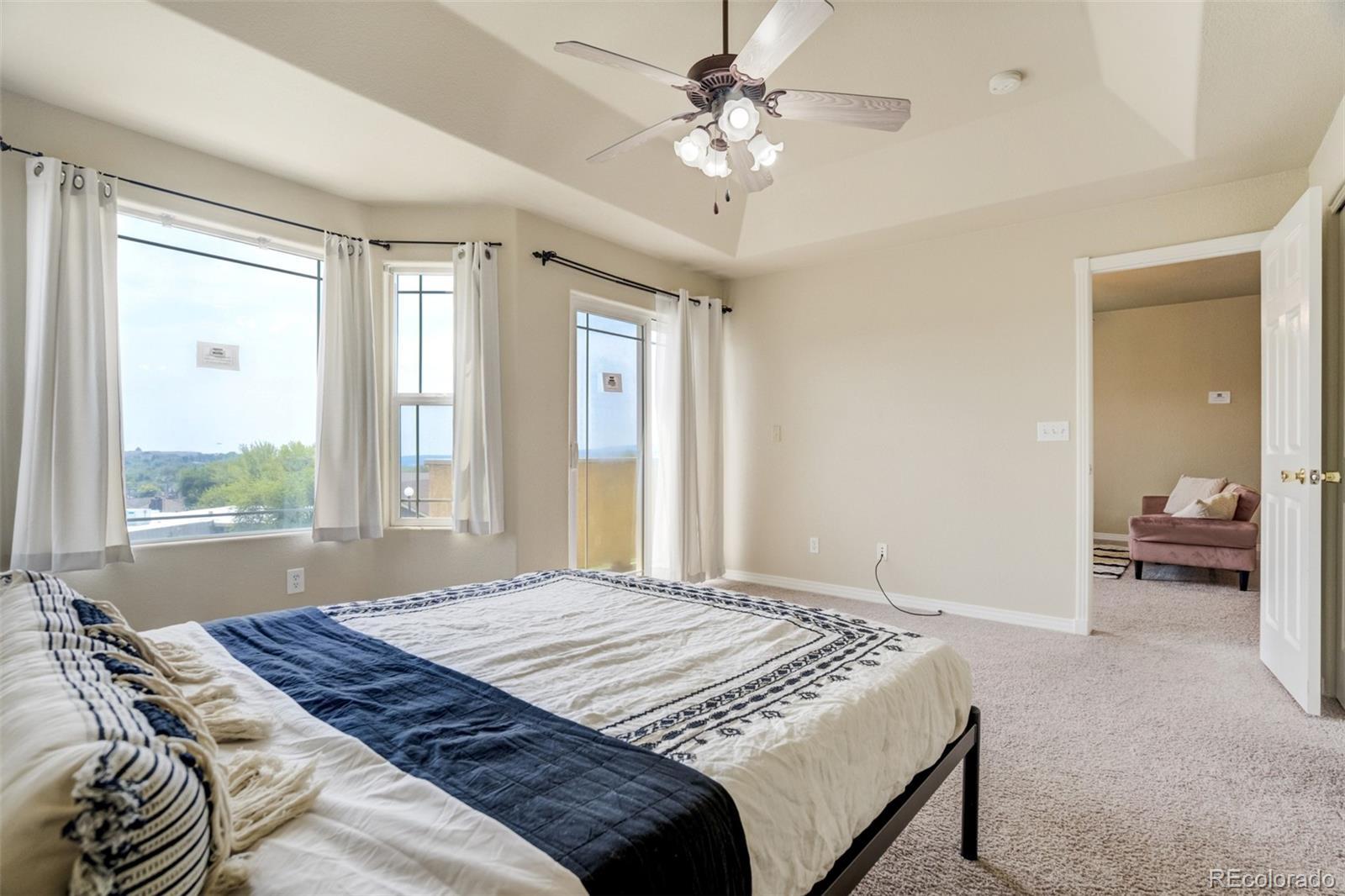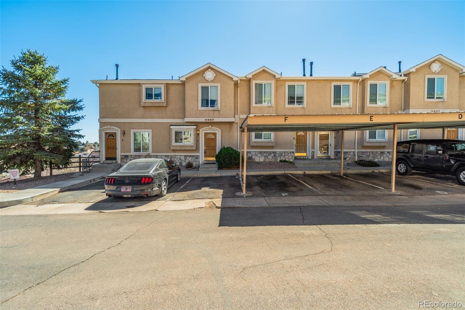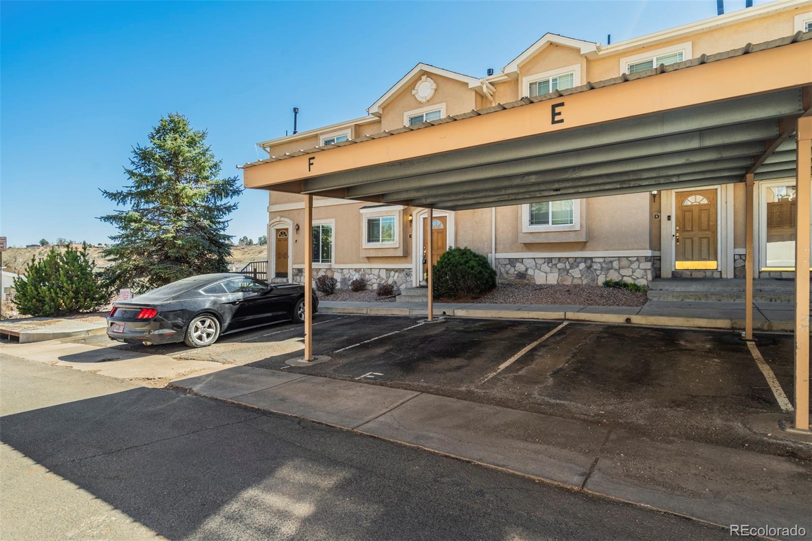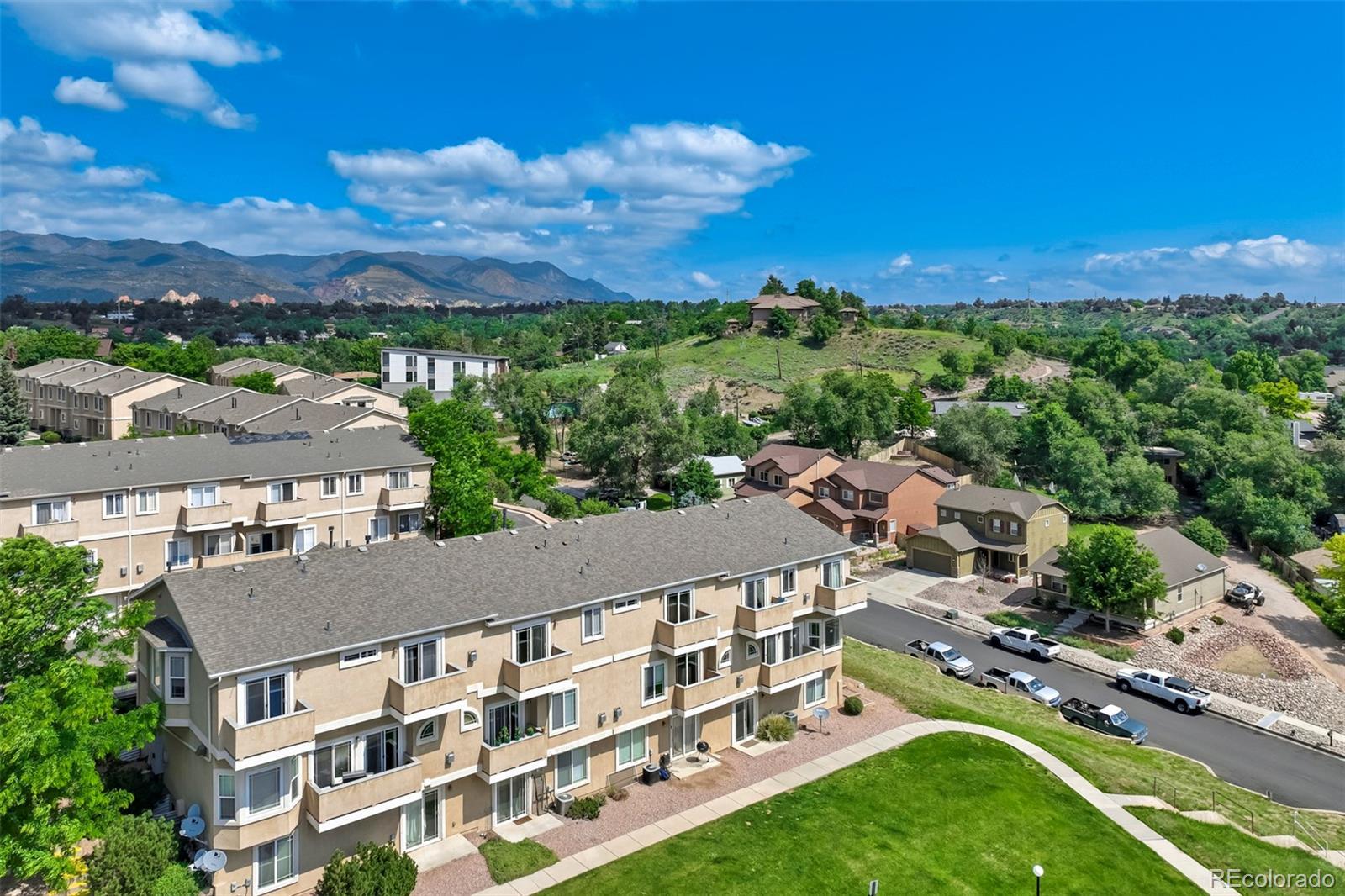 Location, location, location! FHA-warrantable property!! This townhome is nestled in a picturesque neighborhood, this exceptional townhome is conveniently located just minutes from both downtown Colorado Springs and Old Colorado City. Upon entering, you will be welcomed by an open kitchen featuring 42-inch cabinetry, low-maintenance flooring, a complete appliance package, and a convenient pantry. Adjacent to the kitchen is a spacious Living Room and Dining Room combination, adorned with plush carpeting, 9-foot ceilings, a built-in fireplace, and walk-out access to a Trex-deck balcony. Secluded from the common living area is a generously sized primary bedroom retreat, complete with a tray ceiling, walk-in closet, direct access to the Trex-deck balcony, a bay window seating area, and an attached private full bath. The breathtaking city and mountain views from the main level are sure to impress. Additionally, a short hallway leads to a washer/dryer closet, a full hallway bath, and a spacious bedroom with a walk-in closet. In the basement, you will discover a remarkable family room that offers walk-out access to community spaces, plush carpeting, and a built-in surround sound system. The basement also includes three additional carpeted guest bedrooms, a full hallway bath, as well as a storage and utility closet. This home is equipped with a gas forced air system, a 40-gallon water heater, and air conditioning. The unit comes with one covered carport parking space, along with ample additional first-come, first-served parking options.