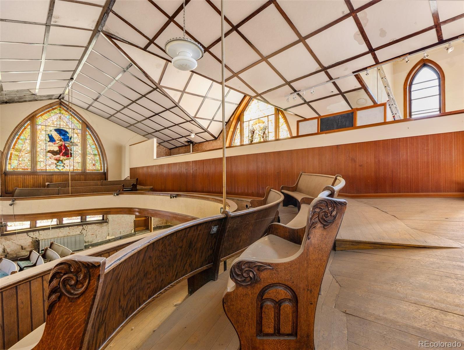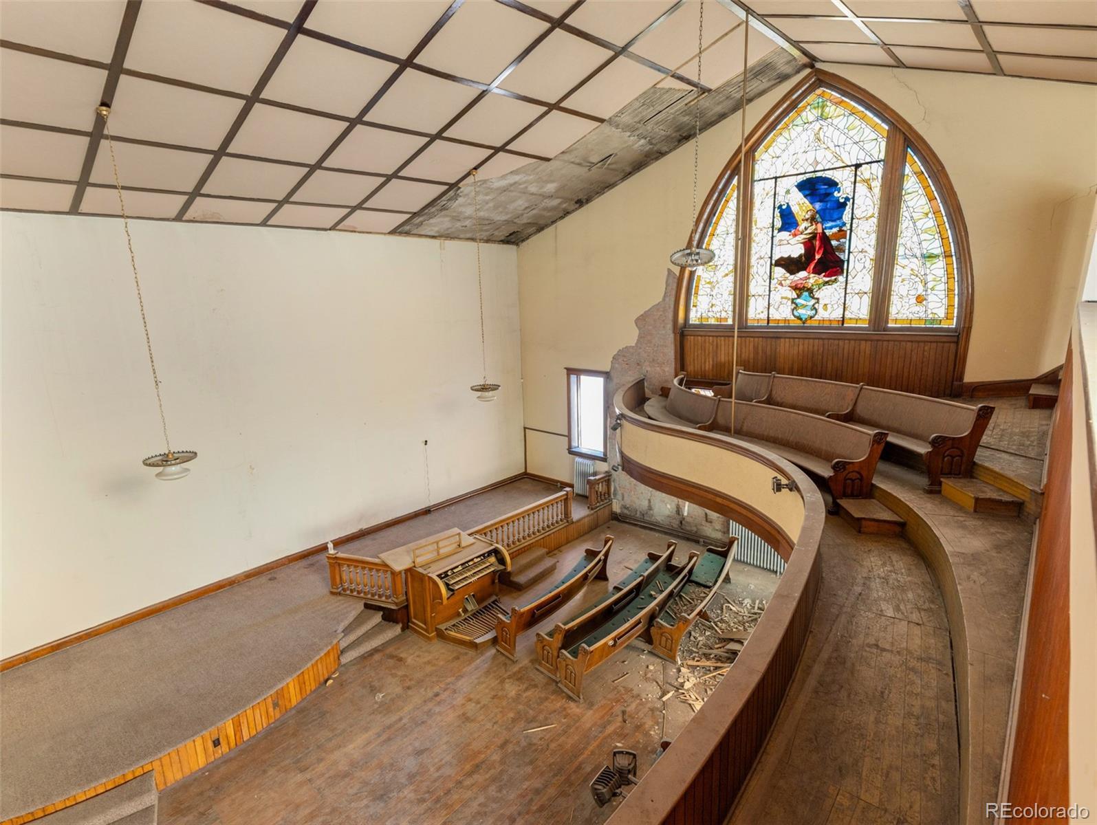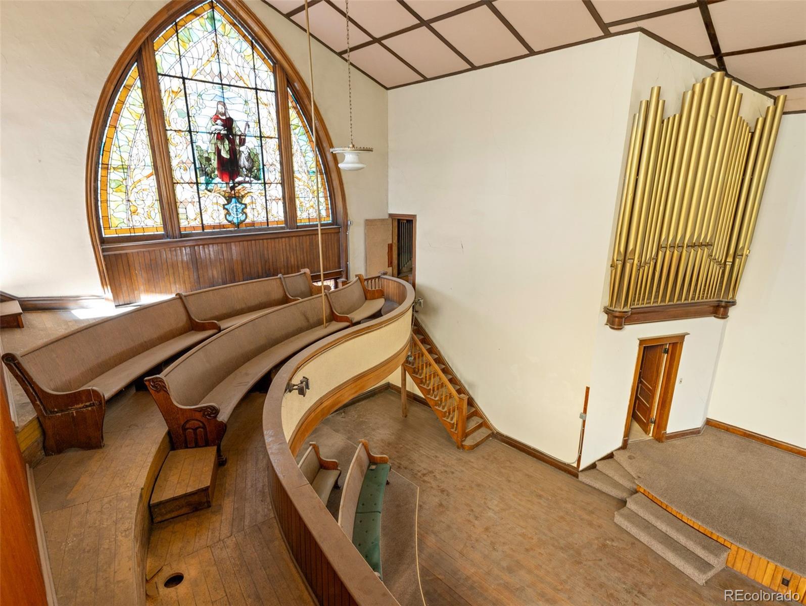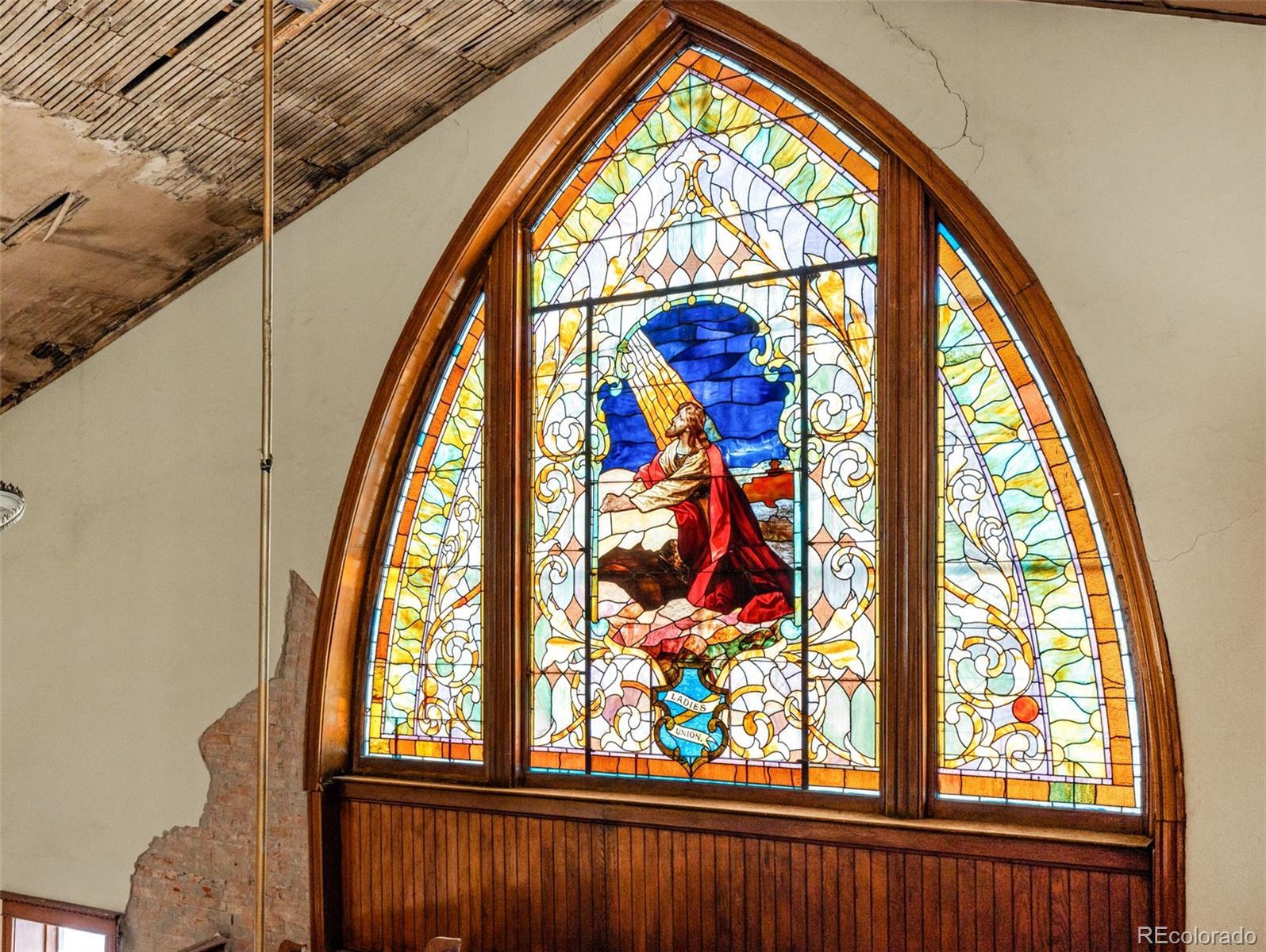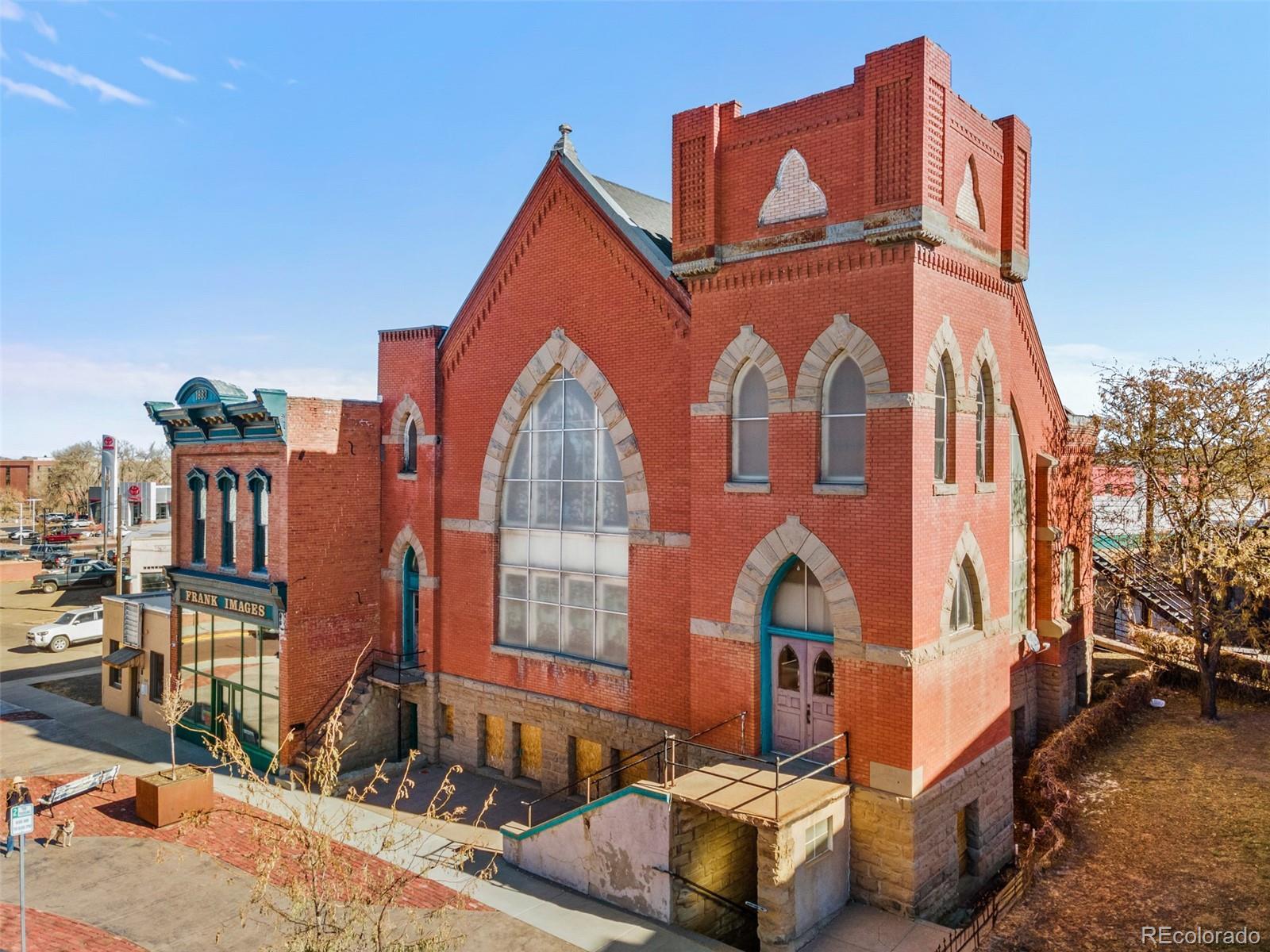1902 late Victorian/Gothic Revival church complete with stained glass, original oak pews, and working pipe organ. The space is reminiscent of an intimate theatre and a perfect venue for performances, conversion to a loft or any number of possibilities. Previous owners had an art gallery. The main area has a balcony with serpentine oak pews, and a mezzanine-like area above that which also overlooks the stage area. Downstairs is a large living space or it would also be wonderful for a business setting; there are several outside entrances for specific areas. Trinidad is located between Denver and Santa Fe on I-25, on the historic Santa Fe Trail. The church is located in an existing National Register district in downtown on a high profile street, North Commercial St., and is eligible for Local Landmark designation. Municipal parking lot 1/2 block away. The property includes a fenced courtyard to the side of the church, and property to the rear also allows for personal parking.
