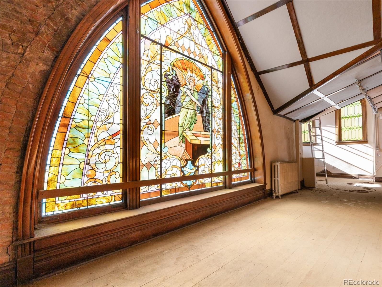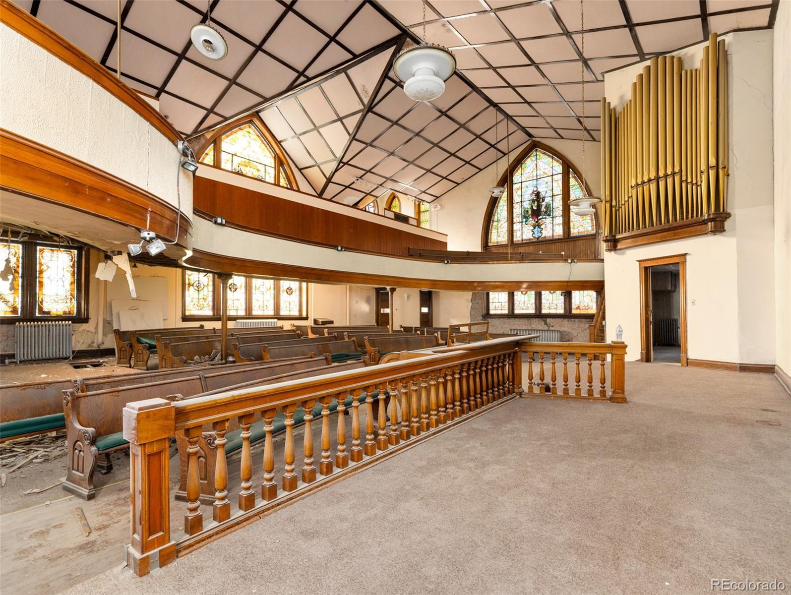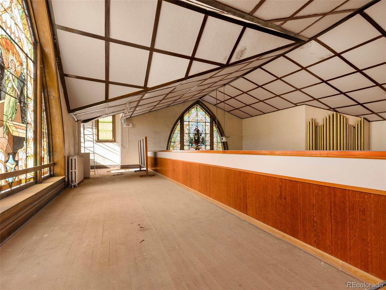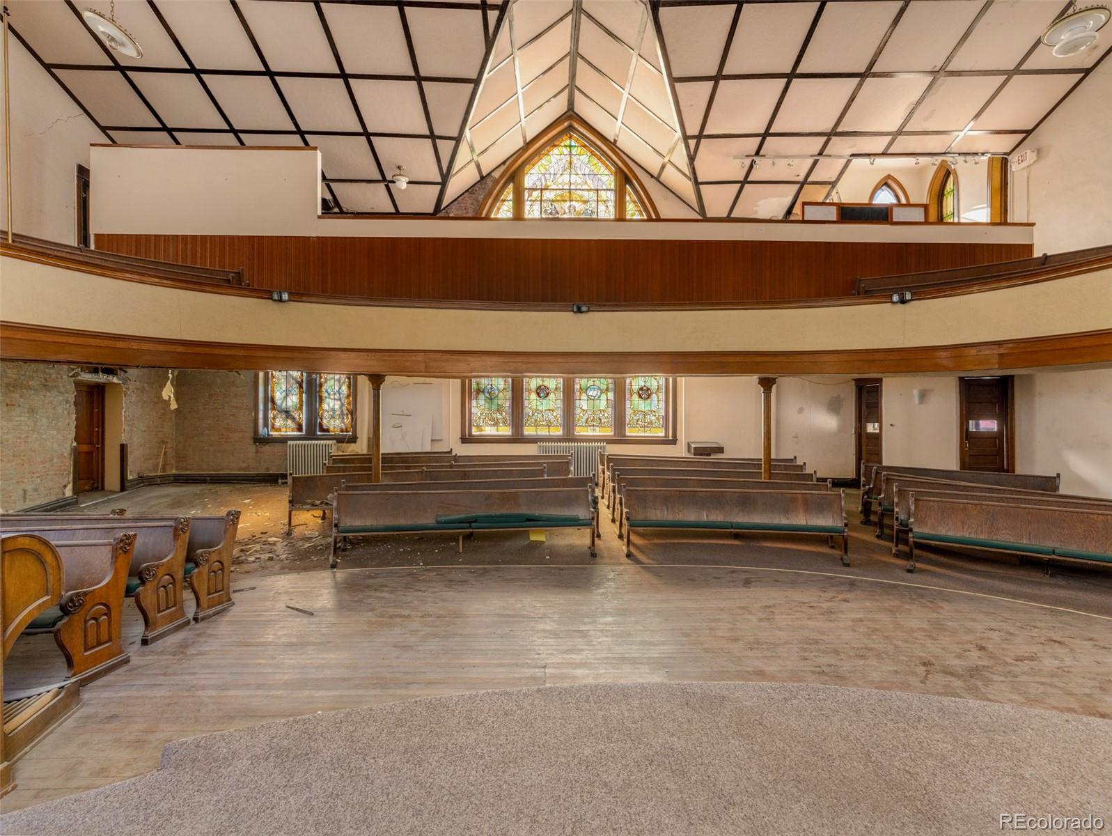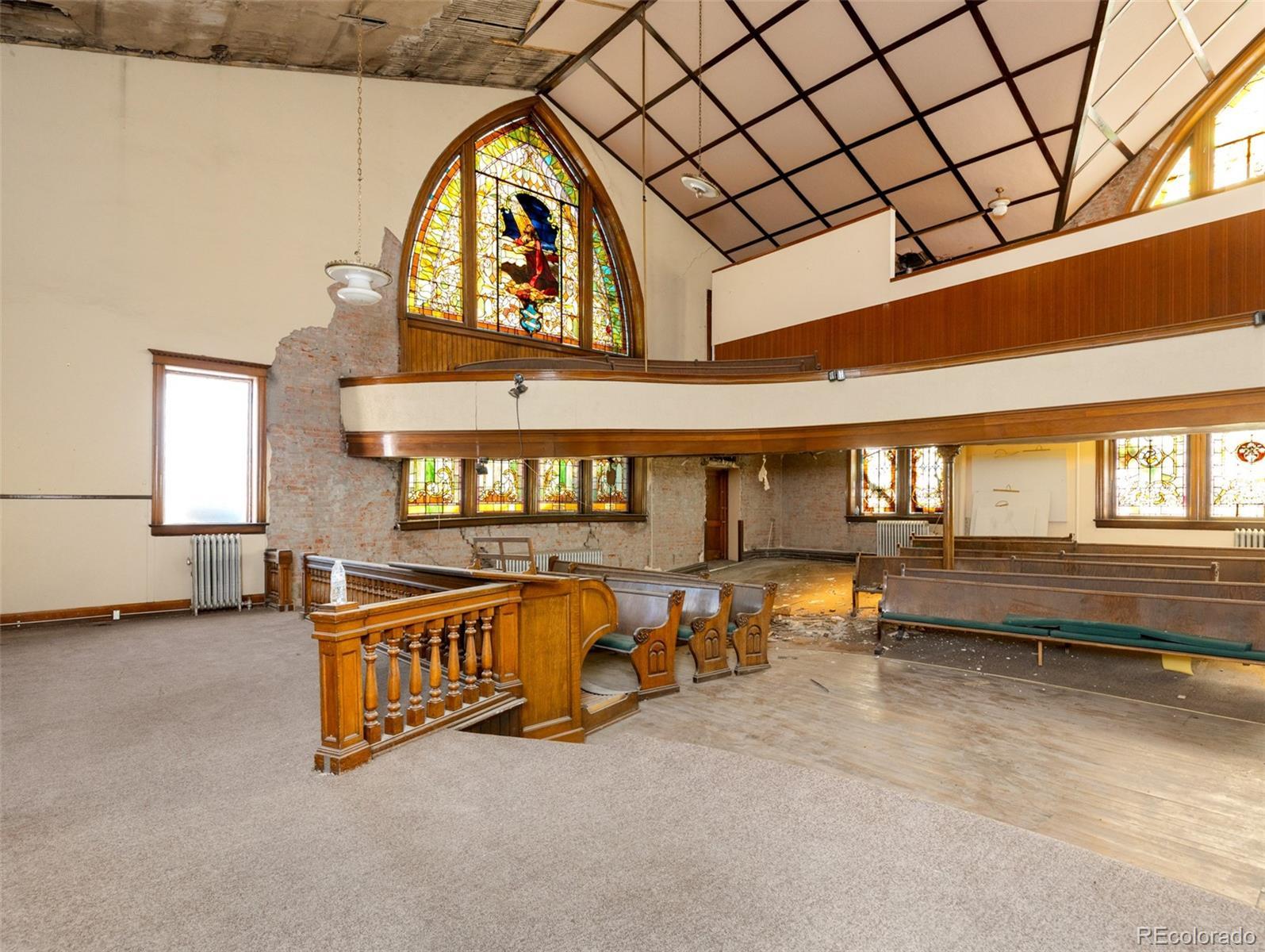 1902 late Victorian/Gothic Revival church complete with stained glass, original oak pews, and working pipe organ. The space is reminiscent of an intimate theatre and a perfect venue for performances, conversion to a loft or any number of possibilities. Previous owners had an art gallery. The main area has a balcony with serpentine oak pews, and a mezzanine-like area above that which also overlooks the stage area. Downstairs is a large living space or it would also be wonderful for a business setting; there are several outside entrances for specific areas. Trinidad is located between Denver and Santa Fe on I-25, on the historic Santa Fe Trail. The church is located in an existing National Register district in downtown on a high profile street, North Commercial St., and is eligible for Local Landmark designation. Municipal parking lot 1/2 block away. The property includes a fenced courtyard to the side of the church, and property to the rear also allows for personal parking.