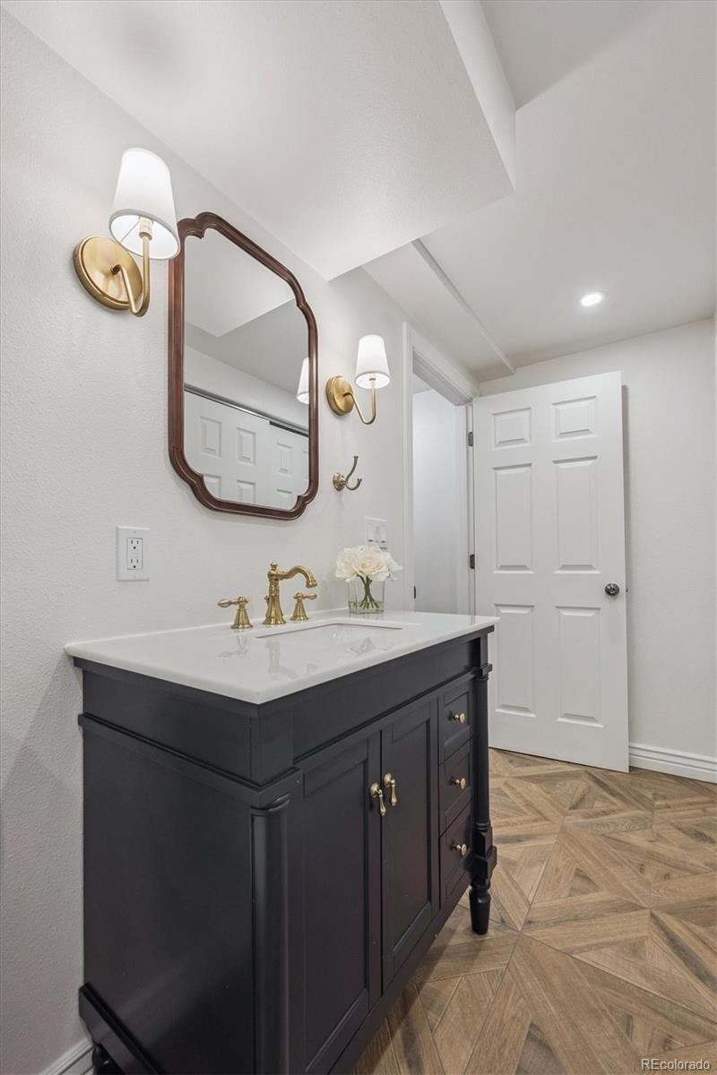 Welcome to this stunning Applewood remodel, masterfully reimagined with exceptional craftsmanship and Colorado style. Set on a 14,000+ sf corner lot in one of the area’s most established neighborhoods, this impeccably remodeled raised ranch offers over 3,750 square feet of curated living space. The expansive 5-bedroom, 3-bathroom layout has been thoughtfully redesigned for today's discerning homeowner. At the heart of the home lies a spectacular chef’s kitchen—an entertainer’s dream—featuring custom cabinetry, elegant quartz countertops, premium appliances, and brushed gold fixtures that add warmth and refinement. Three fully renovated bathrooms showcase designer tilework, custom cabinetry and quartz countertops, and frameless shower glass, including a luxe primary en suite. Every detail, from the solid hardwood doors to the hand-selected lighting and trim, speaks to quality and craftsmanship. The main level boasts new luxury vinyl plank flooring, while the expansive finished lower level—nearly 1,900 sq ft—features plush new carpeting and offers versatile living space ideal for a media lounge, game room, home gym, and guest suite. This level includes a generous Great Room, two spacious non-conforming bedrooms, a stylishly renovated bath, and large bonus/storage room. This floorplan offers multi-generational or house hacking opportunities. Outside, mature trees and professional landscaping frame a private backyard oasis with rock retaining walls and a secluded patio—perfect for alfresco dining or quiet evenings under the stars. Additional highlights include a new furnace, newer water heater and AC, newer roof, newer double pane windows and fence. Just steps from Lewis Meadows Park and scenic walking trails, and moments from the new Lutheran Medical Center and incoming Clear Creek Crossing shopping, dining, and entertainment options. This is a rare opportunity to own a refined, turn-key home in one of Applewood’s most desirable enclaves.