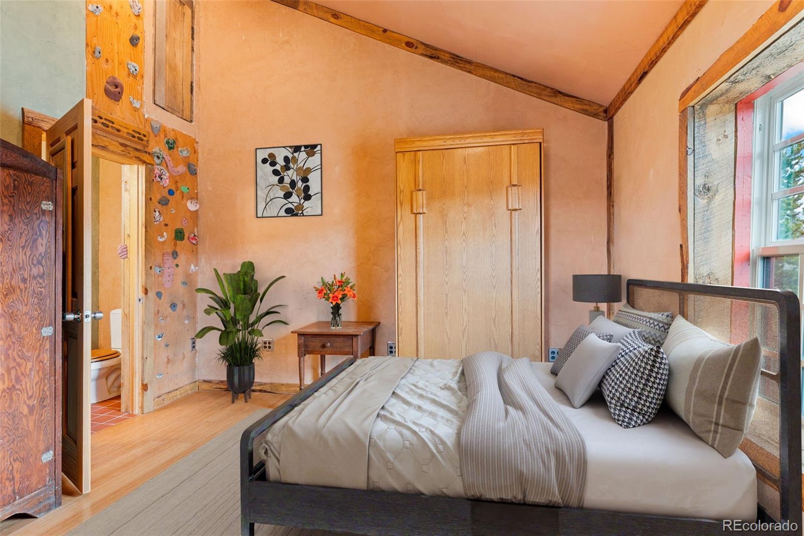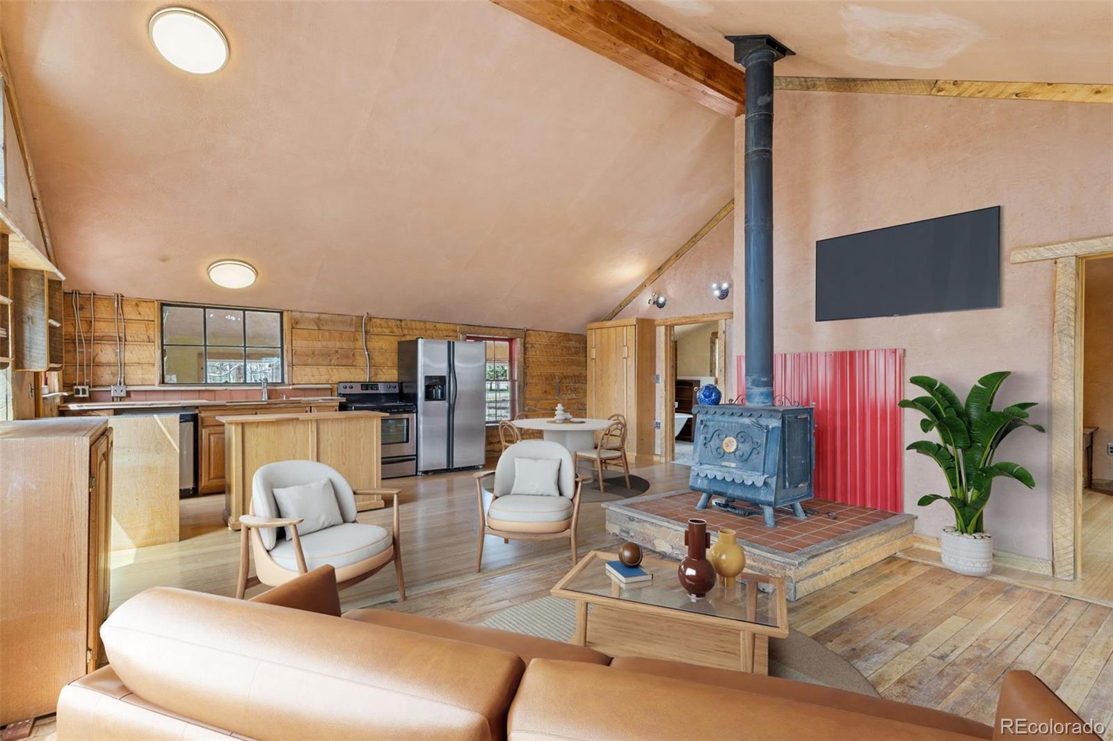 Step into Colorado history with this soulful log cabin in the heart of Alma—just south of Hoosier Pass with direct access to Breckenridge. Lovingly cared for by the same owner for 20 years, this property blends historic character, modern comfort, and versatile use. The original century-old log structure has been thoughtfully restored, and the home is move-in ready. A highlight is the downstairs studio apartment with its own kitchen, offering income potential, guest quarters, or a private creative space. The exterior is low-maintenance with a durable metal roof, efficient windows, and a spacious driveway for easy year-round access. Inside, the open-concept design is inspired by feng shui and Frank Lloyd Wright’s sense of flow. Features include radiant floors with nature-inspired patterns, clay-insulated walls for warmth and quiet, a cozy wood stove, and a luxurious 6.5’ clawfoot tub. High ceilings and passive solar design flood the home with light and mountain views. From trout fishing across the street to moose at your doorstep and Breckenridge skiing minutes away, this cabin is both a peaceful retreat and an income-producing opportunity. A rare chance to own a piece of Colorado’s history—where timeless craftsmanship meets modern versatility.