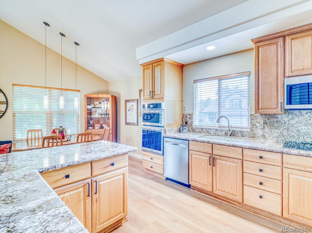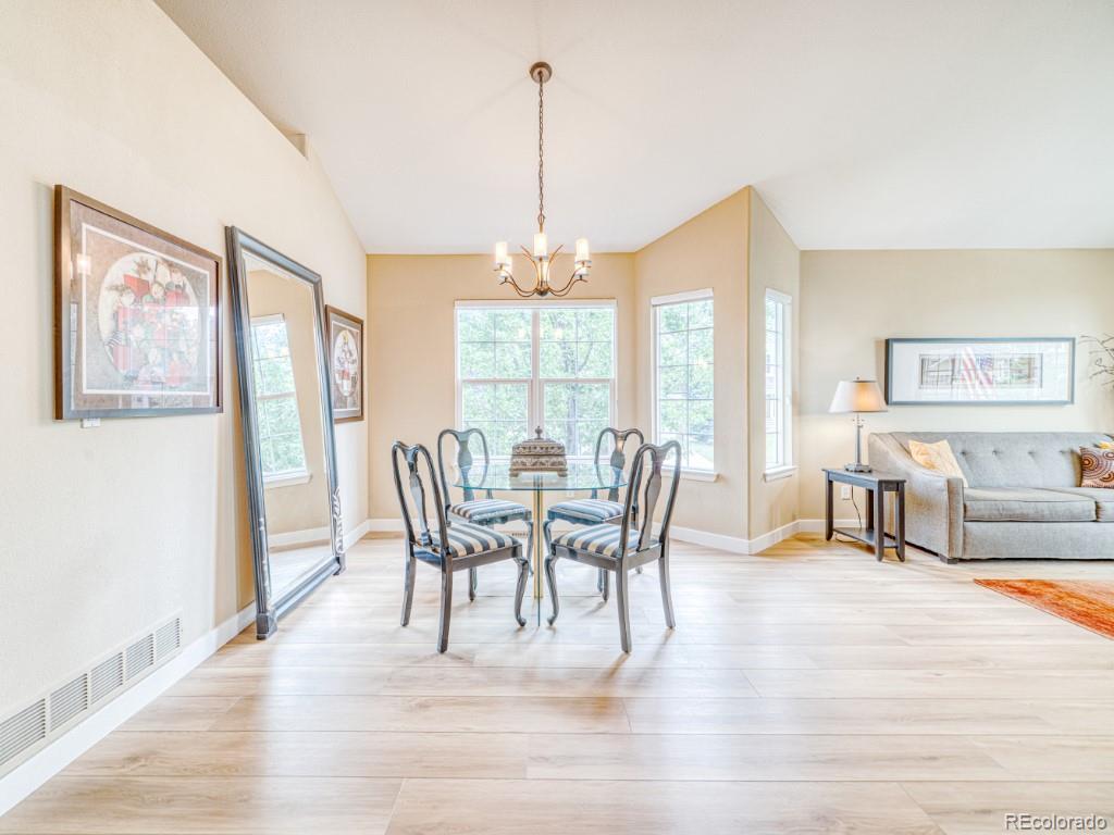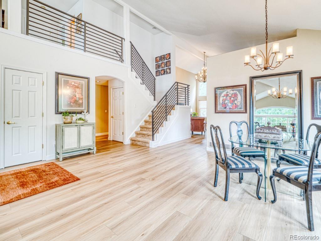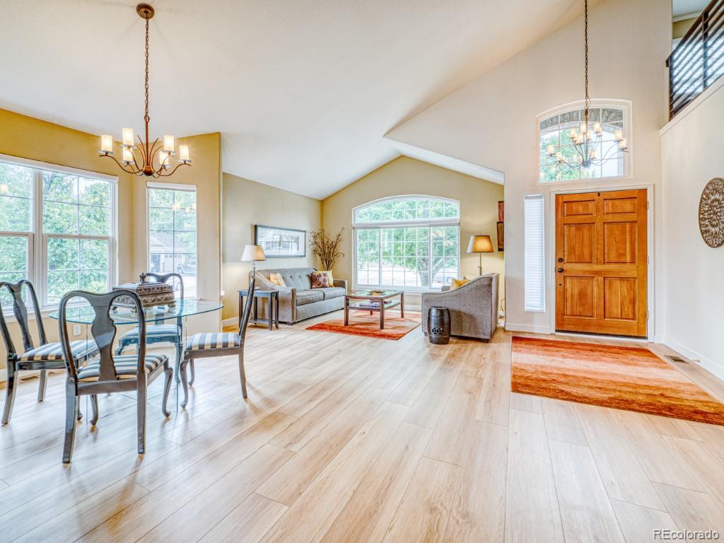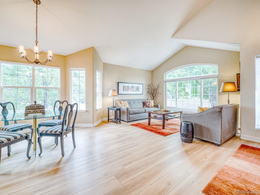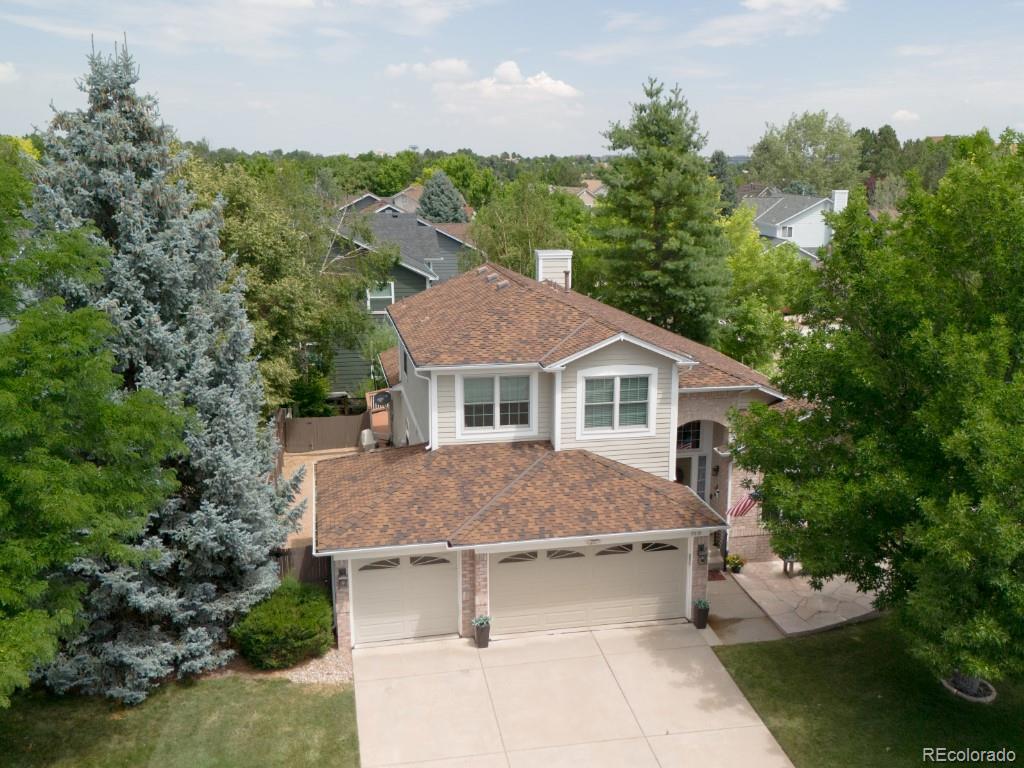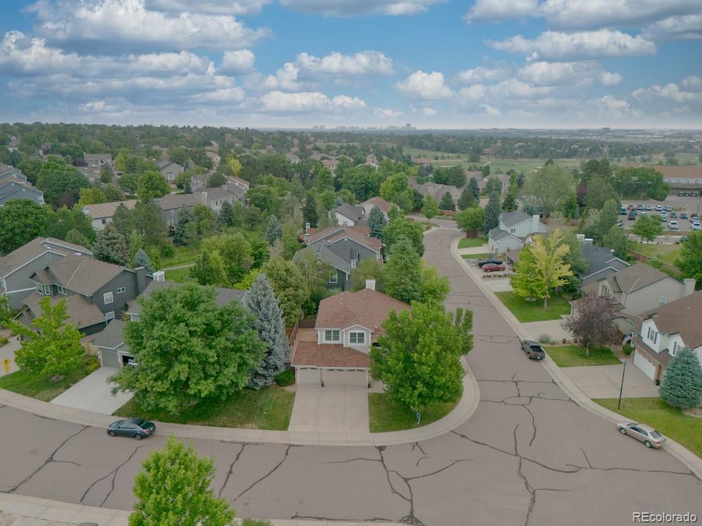 Major price improvement, and the sellers recently planted large bushes for more backyard privacy! Please contact the listing agent for more details. Main floor primary bedroom and bathroom! Discover serenity in this ideally located home on a corner lot in Cypress Greens, just a short stroll from Lone Tree Golf Course. The open concept layout and southern exposure illuminate 4 bedrooms, highlighted by a spacious main-floor primary suite. Recent upgrades include new kitchen appliances and flooring in 2025, complementing the updated master bath. A remodeled finished basement offers additional living space with a 3/4 bathroom and ample storage. Outdoors, enjoy a newly laid stone patio shaded by mature trees in the front, perfect for relaxation. The back deck, also shaded by mature trees, features a retractable awning for added comfort, and the back yard is very easy to maintain. Other features include Andersen windows, a 2021 roof replacement, gorgeous metal railings, and a large basement storage room. Security cameras, a new hot water heater, and leaf guards on the gutters provide added convenience and peace of mind. Close proximity to Park Meadows mall and a reasonably priced HOA make this home a must-see for modern living.