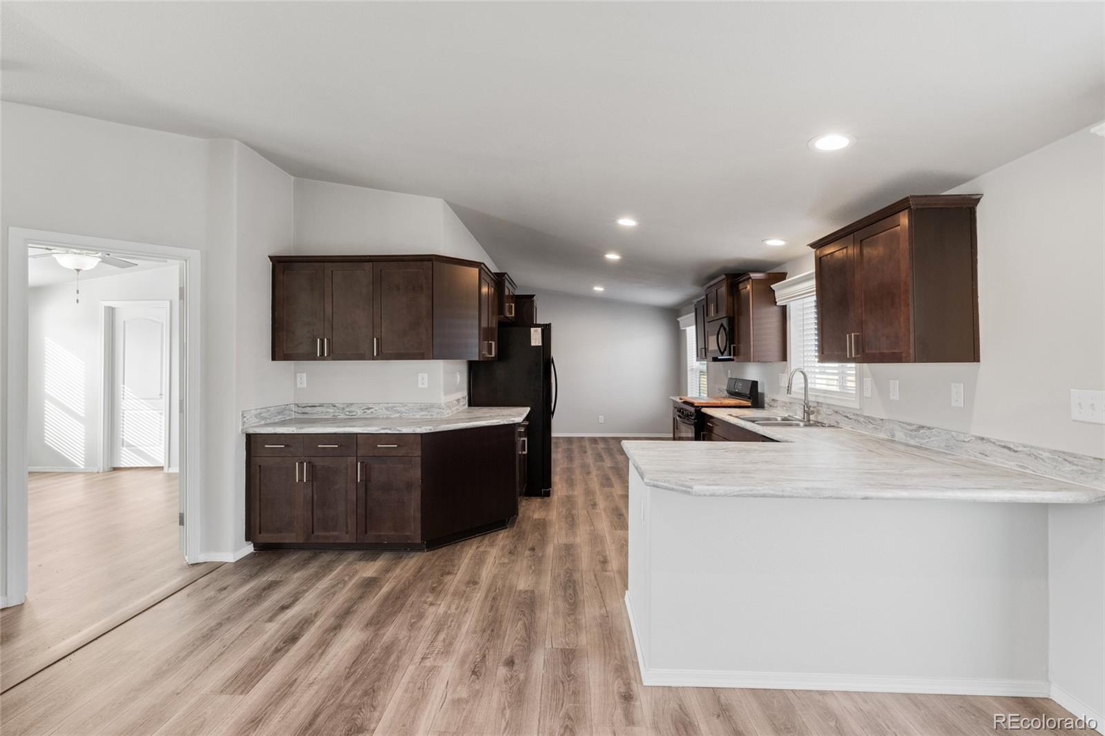 Immerse yourself in the allure of this 3 Bedroom Ranch Style masterpiece, thoughtfully crafted and awaiting your arrival. Step into a world of contemporary elegance, where an expansive open layout seamlessly connects living spaces. Beautiful black appliances grace the culinary haven, while the rich laminate flooring exudes a sense of timeless sophistication. A focal point of culinary delight, the kitchen stands as a testament to both functionality and beauty, promising endless moments of joy and connection. Your dream of a perfect home begins here, ready for you to make it your own.