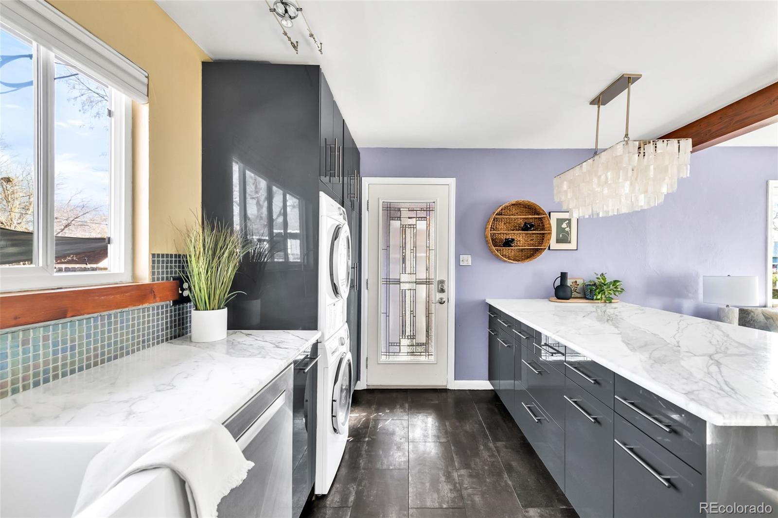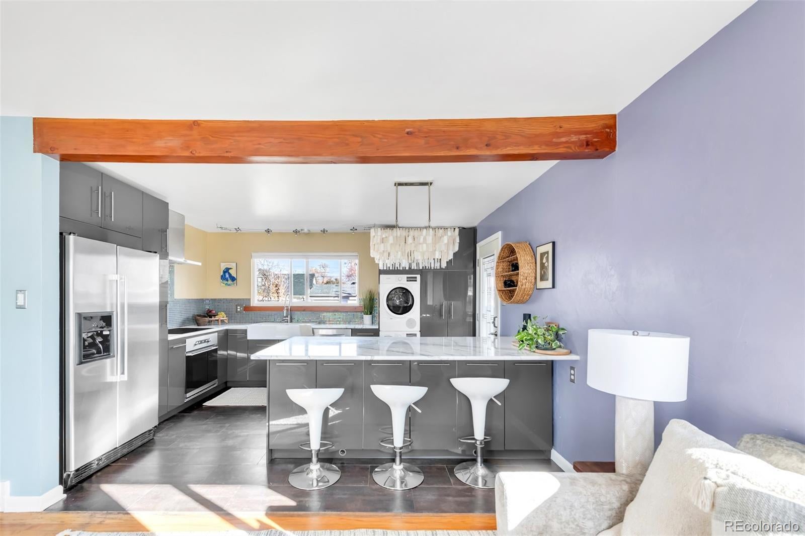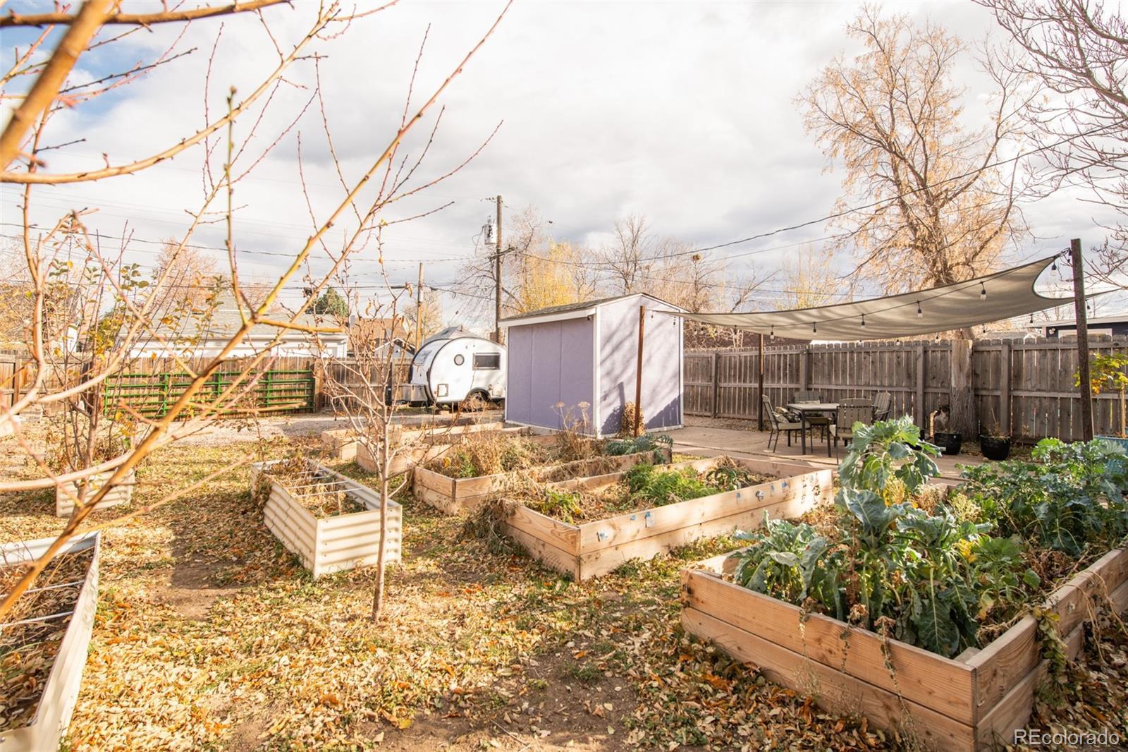 A rare blend of urban convenience and sunlit tranquility defines this inviting Olinger Gardens residence. Set on a quiet street yet moments from Wheat Ridge and Edgewater amenities, this thoughtfully updated home welcomes residents with an airy, open-concept layout and a luminous living room framed by large windows. The updated kitchen impresses with sleek cabinetry, stainless steel appliances, a stylish tiled backsplash and a peninsula illuminated by a contemporary light fixture. A stackable washer and dryer set adds everyday ease. Two bright bedrooms share a full bath with a linen closet. Outside, a stunning urban vegetable garden and private orchard create an exceptional backyard retreat with a shed and a patio. Upgrades include a newer roof, furnace and A/C. With parking for an RV, a carport and two off-street spaces, this home delivers comfort, character and uncommon outdoor abundance. A central location offers close proximity to Sloan’s Lake, Edgewater Public Market and restaurants.