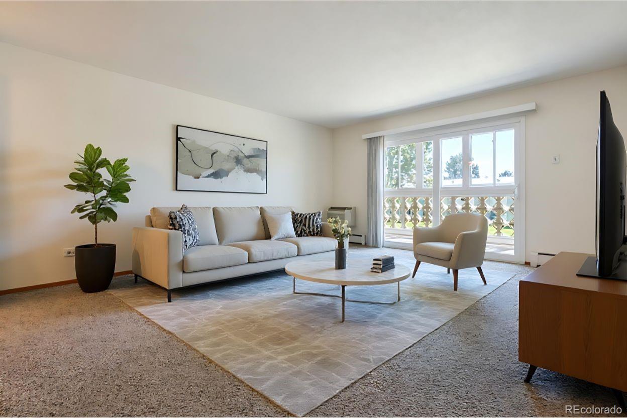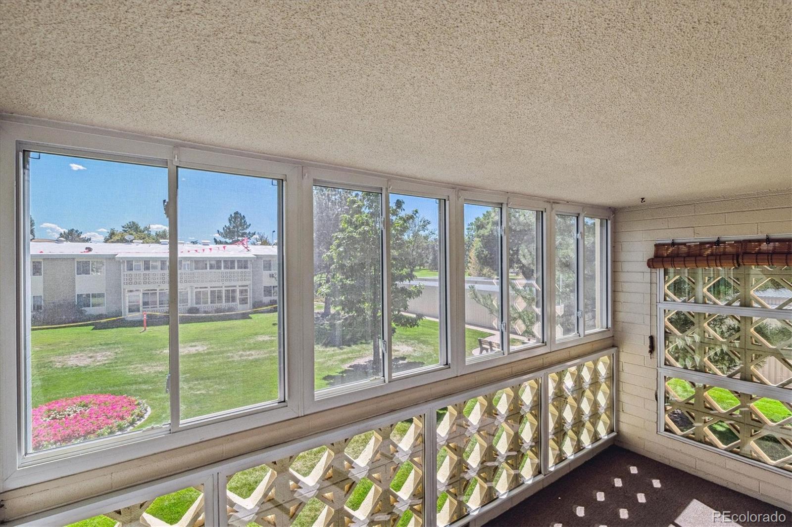 Welcome to this updated and move right in corner condo, on same floor as laundry- overlooks a beautiful courtyard with all day Southern sun! Updates thru-out, this 2 bedroom/1 bathroom is the 945 sf floorplan, and includes a 1 car detached garage close to building. Kitchen features updated wood-soft close cabinets extended more than most, and bonus countertop space. All white appliances included! The 3/4 Bathroom is a spacious walk-in shower, & updated vanity/top/fixtures. Neutral paint/carpet color scheme. Special double pane vinyl enclosed lanai and brand new vinyl slider door! 1 updated wall ac unit included in living room. Bonus storage room on same floor as condo. Great time to move into a ready to go home! **Windsor Gardens is Colorado's Largest Age 55+ Active Adult Living Condo Community. Did you know? Monthly HOA Dues include annual property taxes! And heat, water, sewer, trash, round-the-clock patrolling community responders, full time onsite association management, grounds/building maintenance, and activities department. Enjoy clubhouse amenities such as fitness center, indoor/outdoor pools, hot tub, sauna, billiards, library, craft rooms for ceramics, sewing, woodworking, and 9 hole par 3 golf course and onsite restaurant both open to the public. Stay engaged with a wide array of activities, clubs, and events scheduled every month. Additional features include garden plot program, private walking trail and nature preserve, and RV/Boat storage. The Highline Canal runs full length along south side of the complex. RTD Bus Stops located thru-out the community. FHA/VA approved. Close to restaurants, stores, shopping…Minutes to Lowry, Hwy 225, Cherry Creek…Easy access to DIA and downtown. Come see for yourself what Windsor Gardens has to offer. ©2021**
