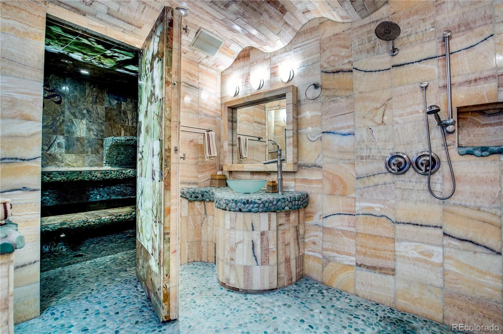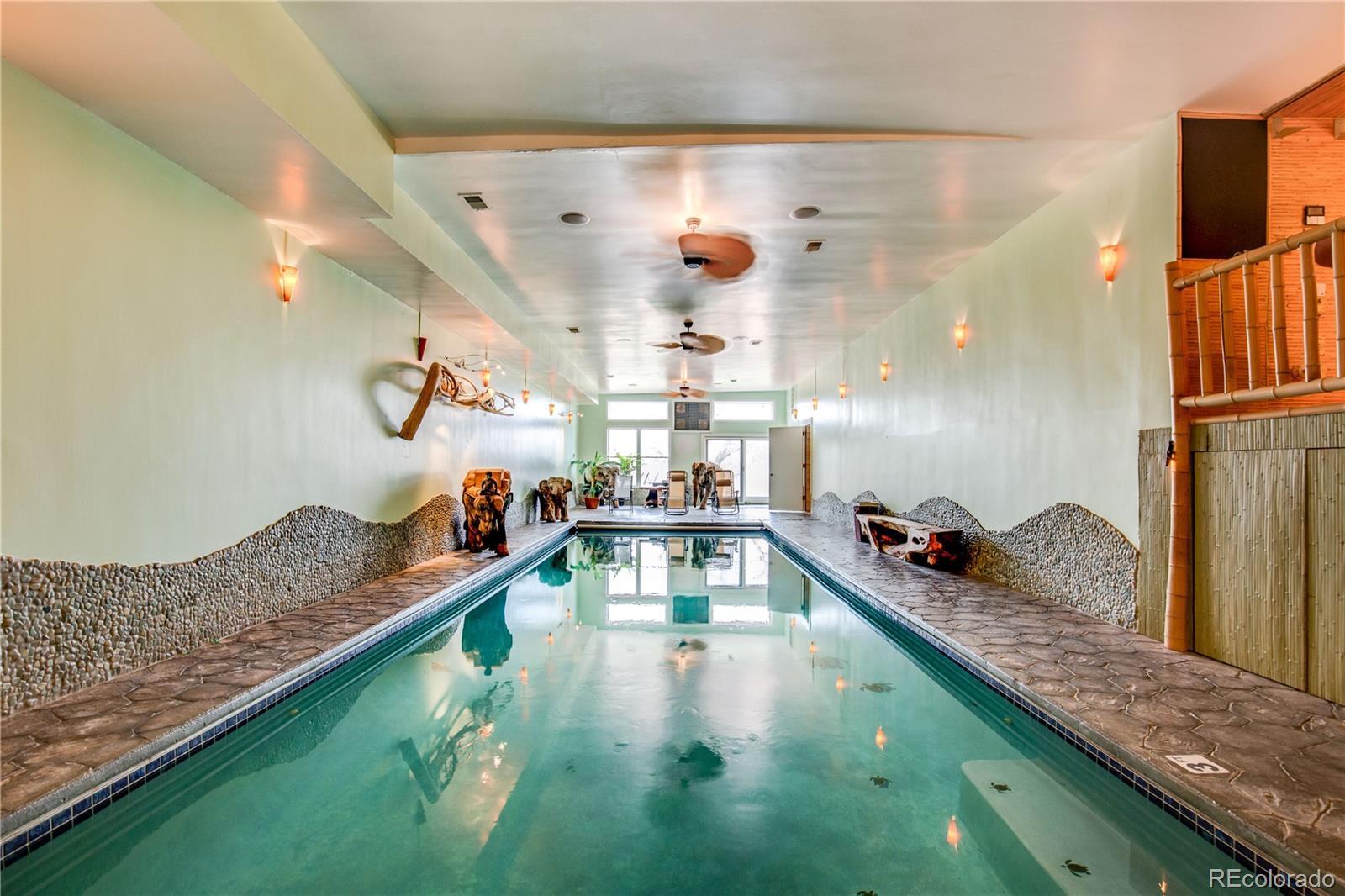 Custom 8,078 SF retreat on 1.68 acres with room for three horses, on property gate access to bridle path that wraps around the neighborhood, and a huge two-story outbuilding that can fit up to ten cars or serve as shop or barn. Mature pines and a wraparound deck frame a private setting with gazebo and fire pit. Inside, a resort feel. Sunroom with garden and water feature. Indoor hot tub. Chef’s kitchen with Sub-Zero, JennAir, Gaggenau, two Bosch dishwashers, radiant floors. Bamboo floors, Pella windows, whole-home audio. Wellness wing with nine foot saltwater pool, steam room, and large gym. Serene primary suite with fireplace, spa bath, and cedar closet. Two car attached plus massive outbuilding. Rare space and amenities in Arvada.
