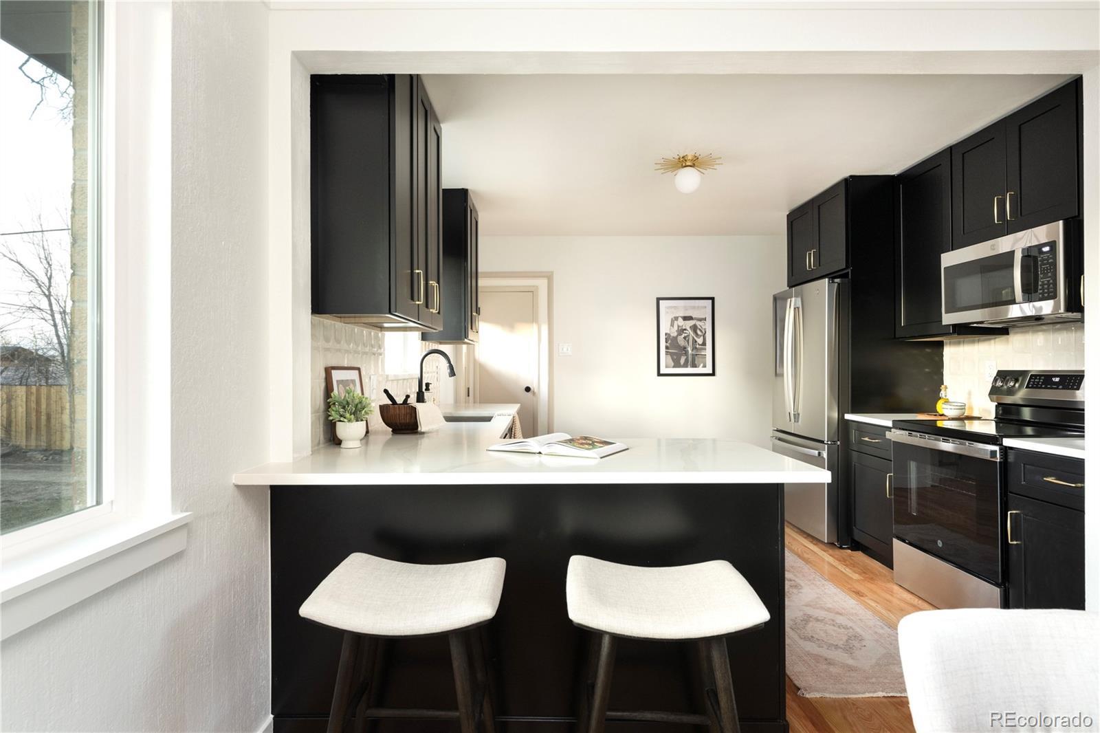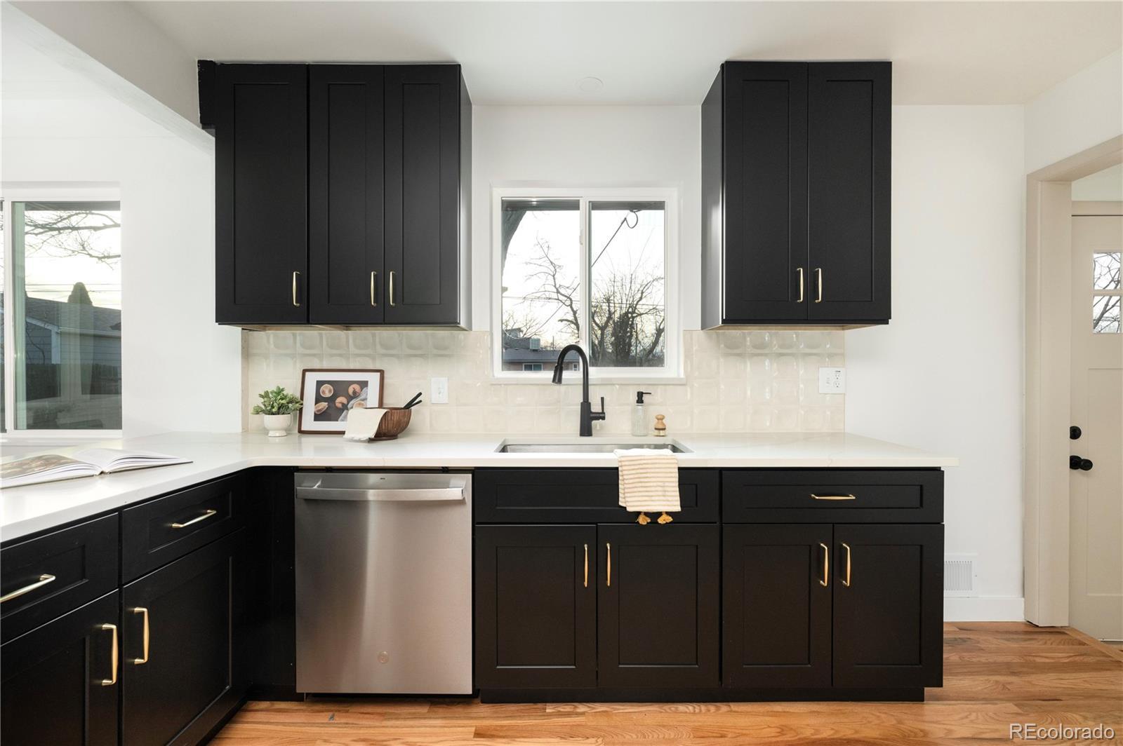 Experience the best of Denver living in this beautifully renovated home in one of Denver’s most popular neighborhoods just a HALF BLOCK from Sloan’s Lake! This classic mid-century brick ranch has been fully and thoughtfully updated and is completely move-in ready! A huge picture window floods the living room with natural light. Historic detailing in the coved ceilings and brick fireplace add character to the home and blend seamlessly with the home’s new modern features. The brand new kitchen with soft-close cabinets, quartz countertops, and stainless steel appliances is spacious and perfect for entertaining with countertop seating and an adjacent dining room. Both bathrooms are fully renovated with beautiful tile, vanities, lighting + hardware. A second living room in the basement has a gorgeous original brick fireplace, along with custom built-ins and shelving, making it a cozy retreat. There are so many noteworthy updates to include refinished hardwood floors, new windows, AC, carpet + tile, interior and exterior paint, fencing, lighting, hardware + fixtures throughout. The oversized .2 acre lot is a rarity in the heart of the city and offers a valuable investment for potential future expansion with an ADU, an addition, or development. This home truly offers the best combination of city living and an active outdoor lifestyle - explore miles of trails and stunning mountain and city views at Sloan’s Lake right outside your front door. This isn’t just a beautiful home, it’s your chance to live the quintessential Denver lifestyle.