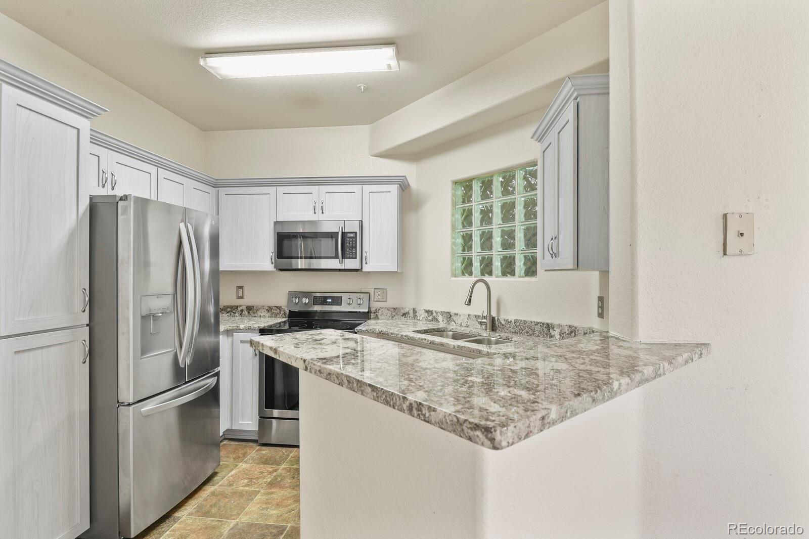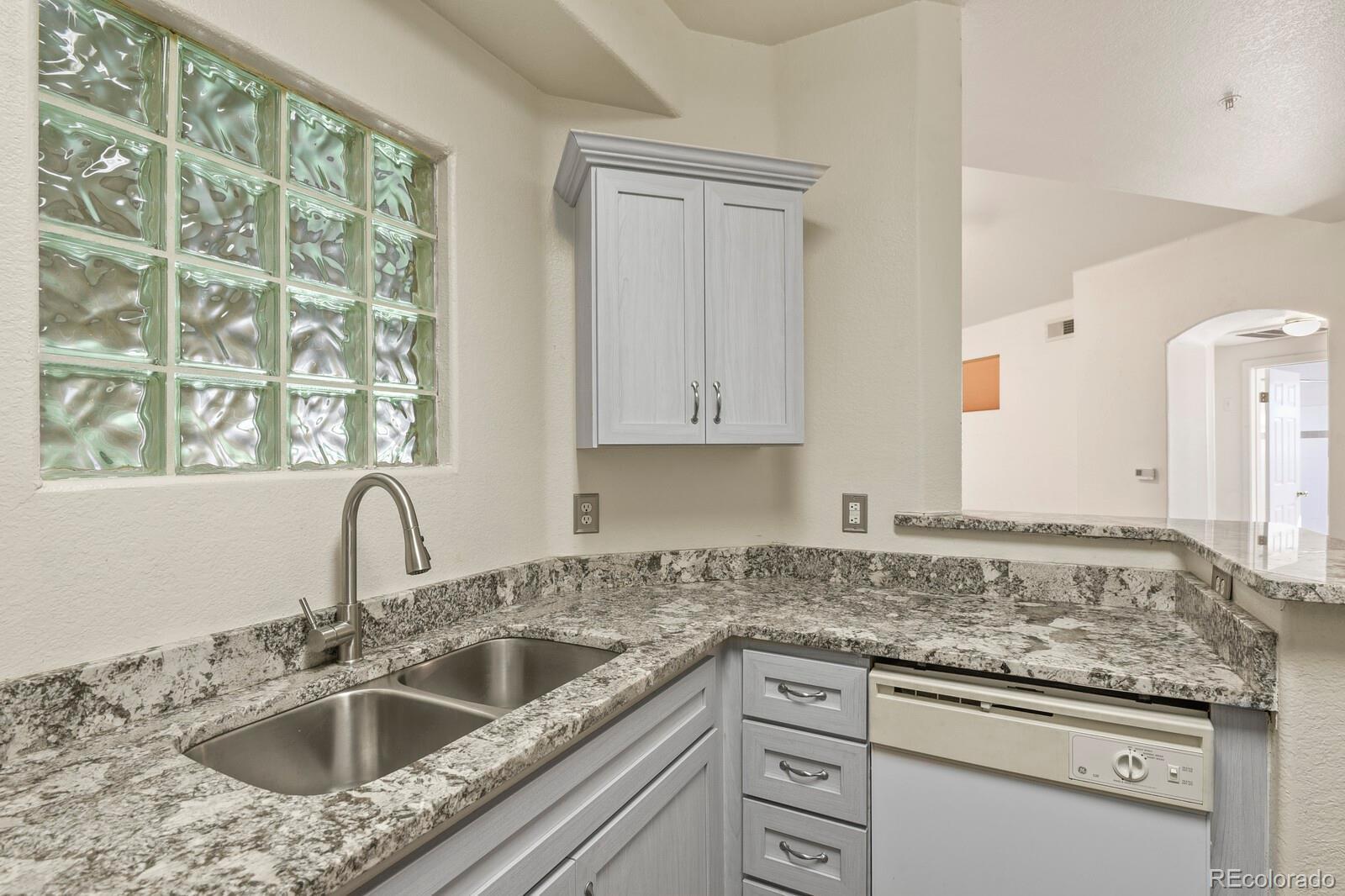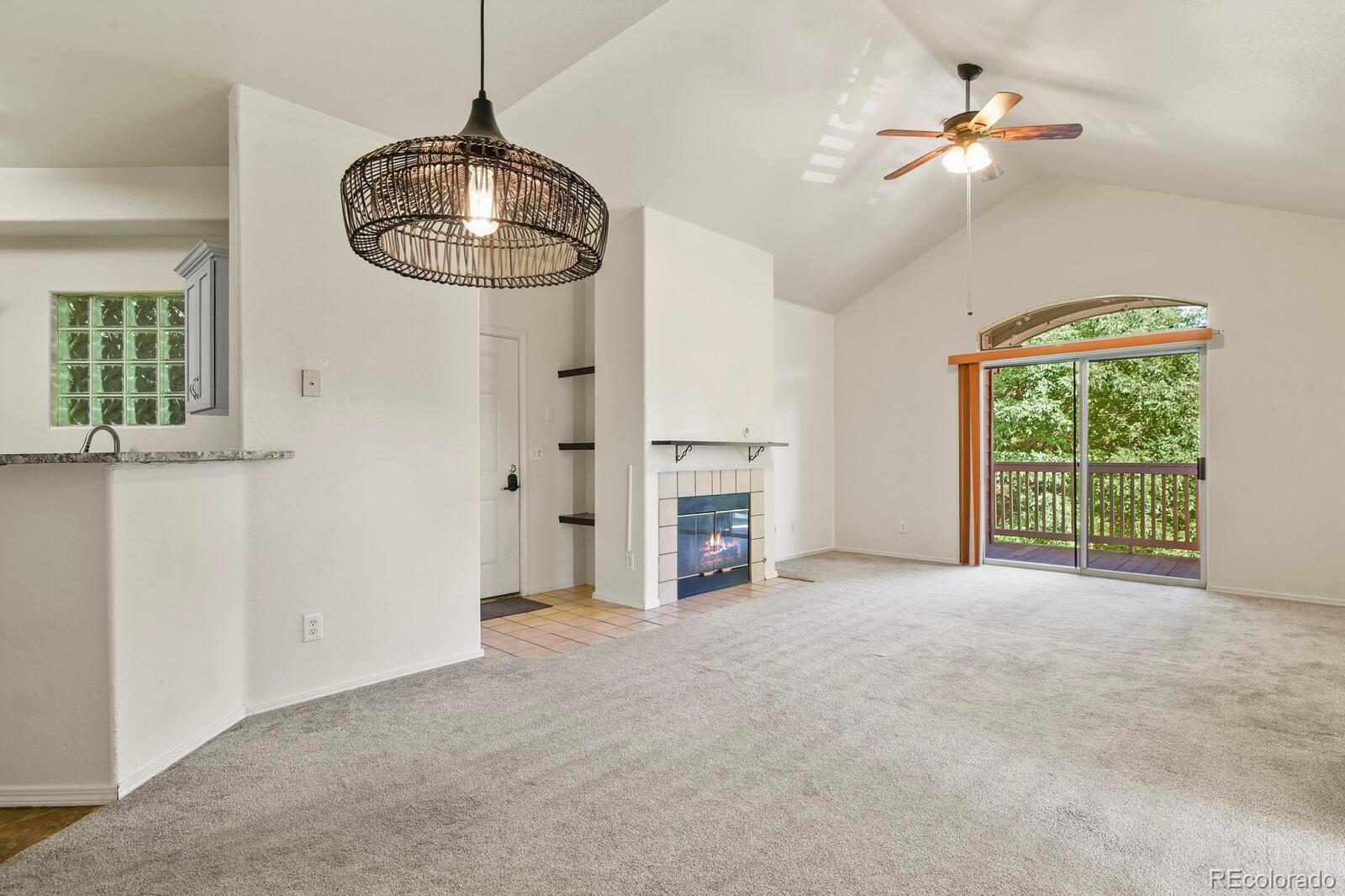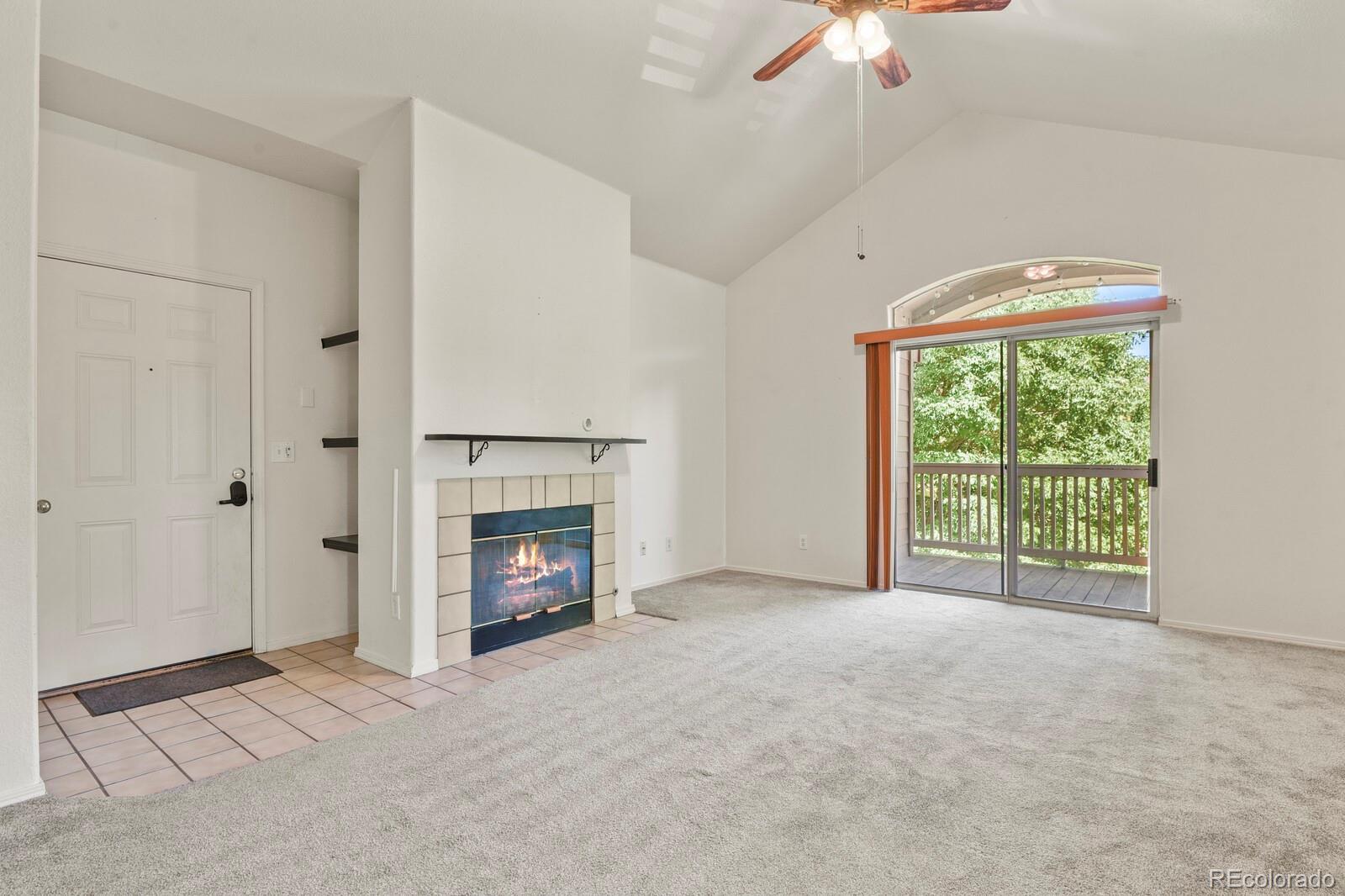 1 bedroom, 1 bathroom top floor unit with 9’ ceilings throughout and vaulted ceiling in main living area. Features include gas fireplace, covered balcony with large storage closet, and 10x20’ oversized garage with overhead storage. In unit laundry with washer and dryer included. Bedroom has southern exposure and walk-in closet. Building 6 is located in the rear of the property close to the Highline Canal. Community amenities include outdoor pool, hot tub/spa, and clubhouse with fitness center. Enjoy convenient access to the Highline Canal, parks, trails, dining, shopping, and a short commute to RTD Mineral Station.