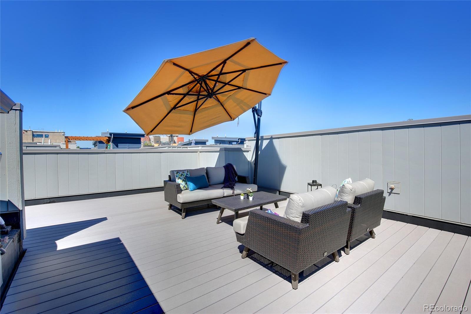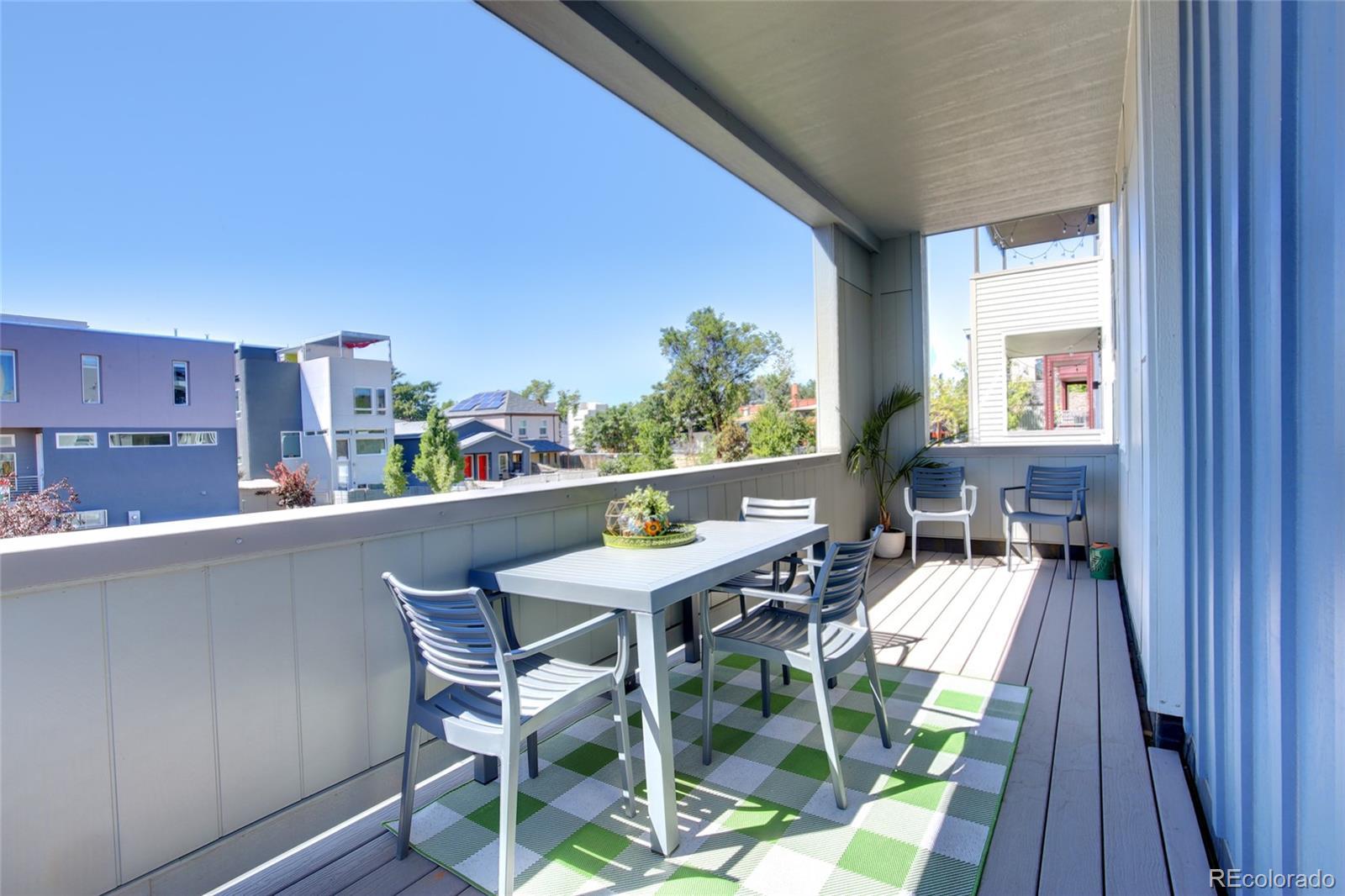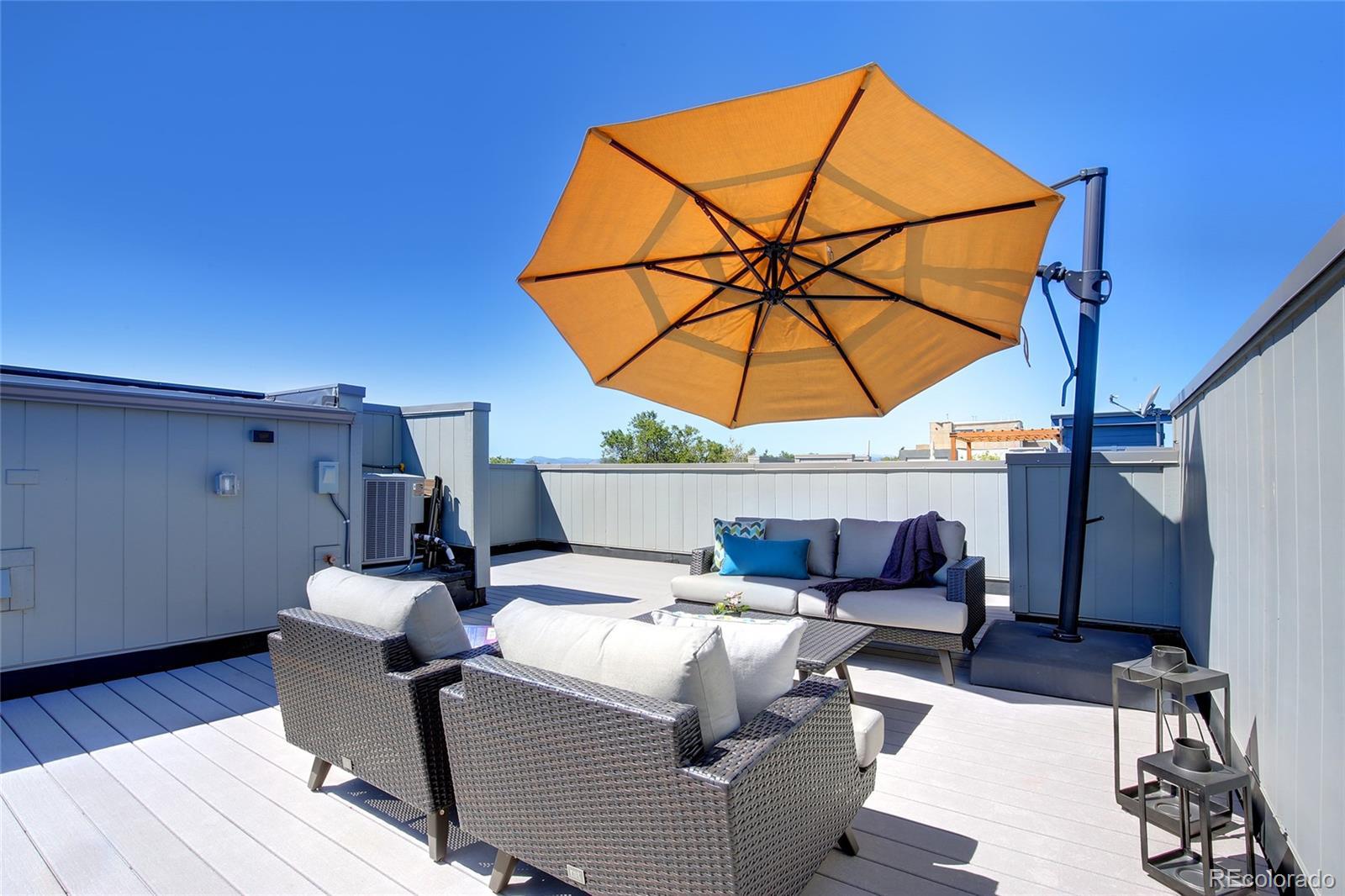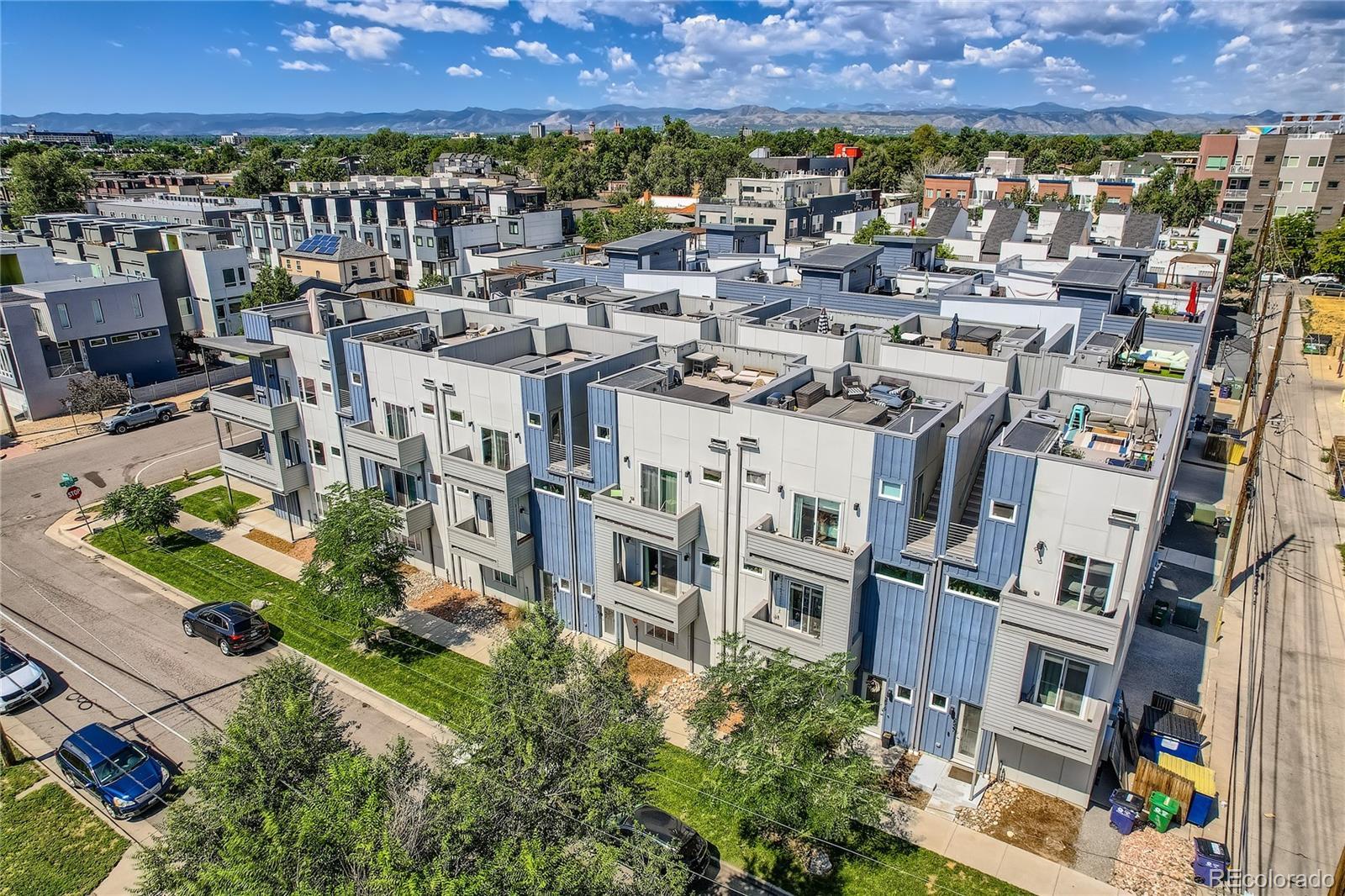 If you enjoy outdoor living and entertaining in a modern urban environment, this may be the one for you! Fabulous corner residence with both south and east exposure means all day sun and only one shared wall. These may be the most spacious and sunny decks in Jefferson Park. You'll love spending time outside on not one, but two wrap-around decks. Plus the 450sf roof top deck, which is designed to accommodate a hot tub, offers sweeping views of the Denver city skyline to the east, Mile High Stadium to the south and the mountains to the west. The main floor living area is spacious and bathed in natural light from windows on the east and south walls. Designer finishes include engineered wood floors, quartz countertops, glass mosaic backsplash and stainless steel appliances. The attached garage offers storage for all your toys and this is one of only two residences at Decatur 12 with an additional outdoor storage closet. When you're ready to retire for the night, head upstairs to the primary and junior suites, both of which offer ensuite bathrooms. You'll find the laundry closet conveniently located just outside of both bedrooms. The Jefferson Park neighborhood is central to the best of Denver including LoHi, LoDo, Larimer Square, Sloans Lake and RiNo. Easy access to I-25 just a few blocks away.