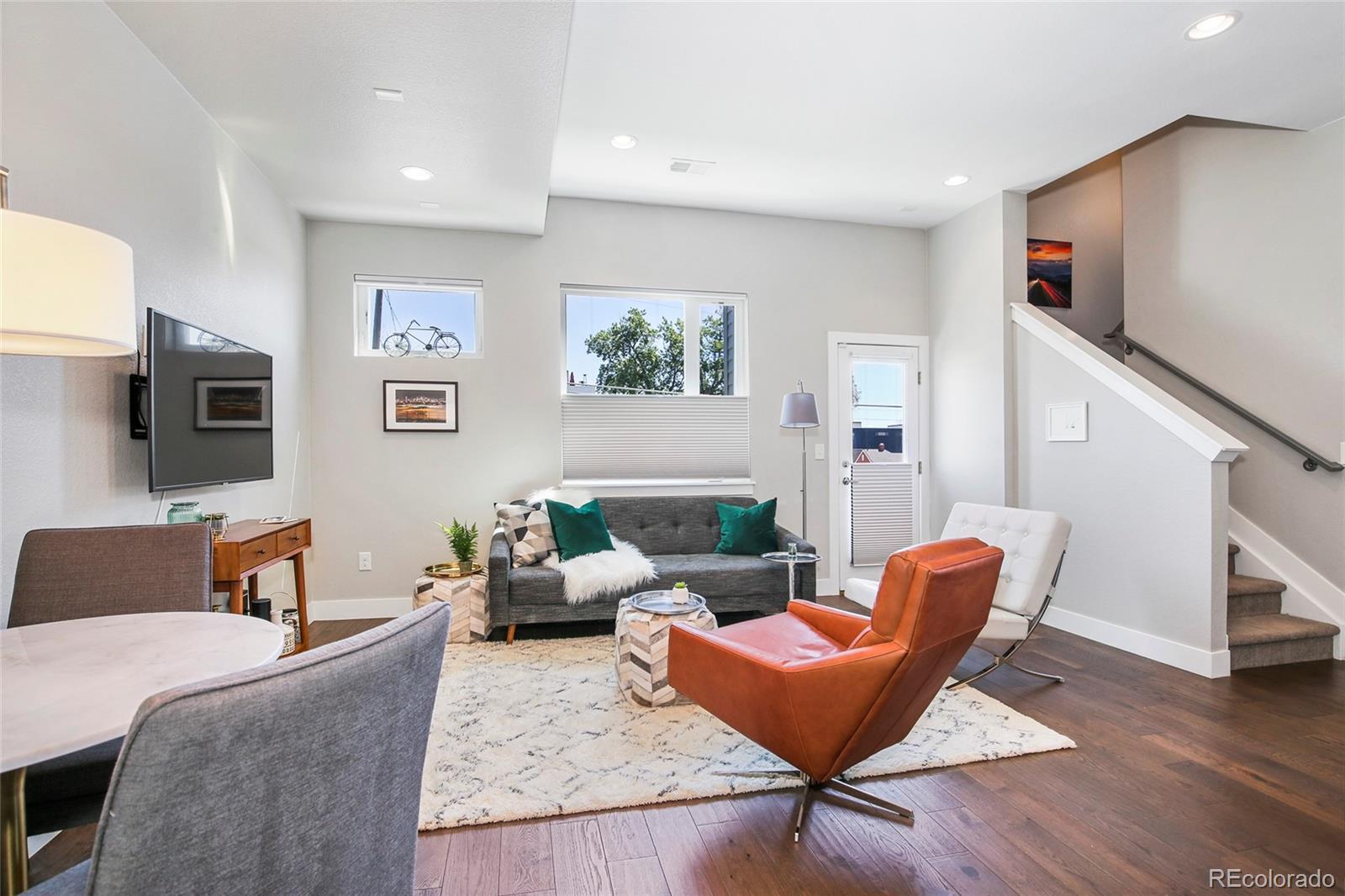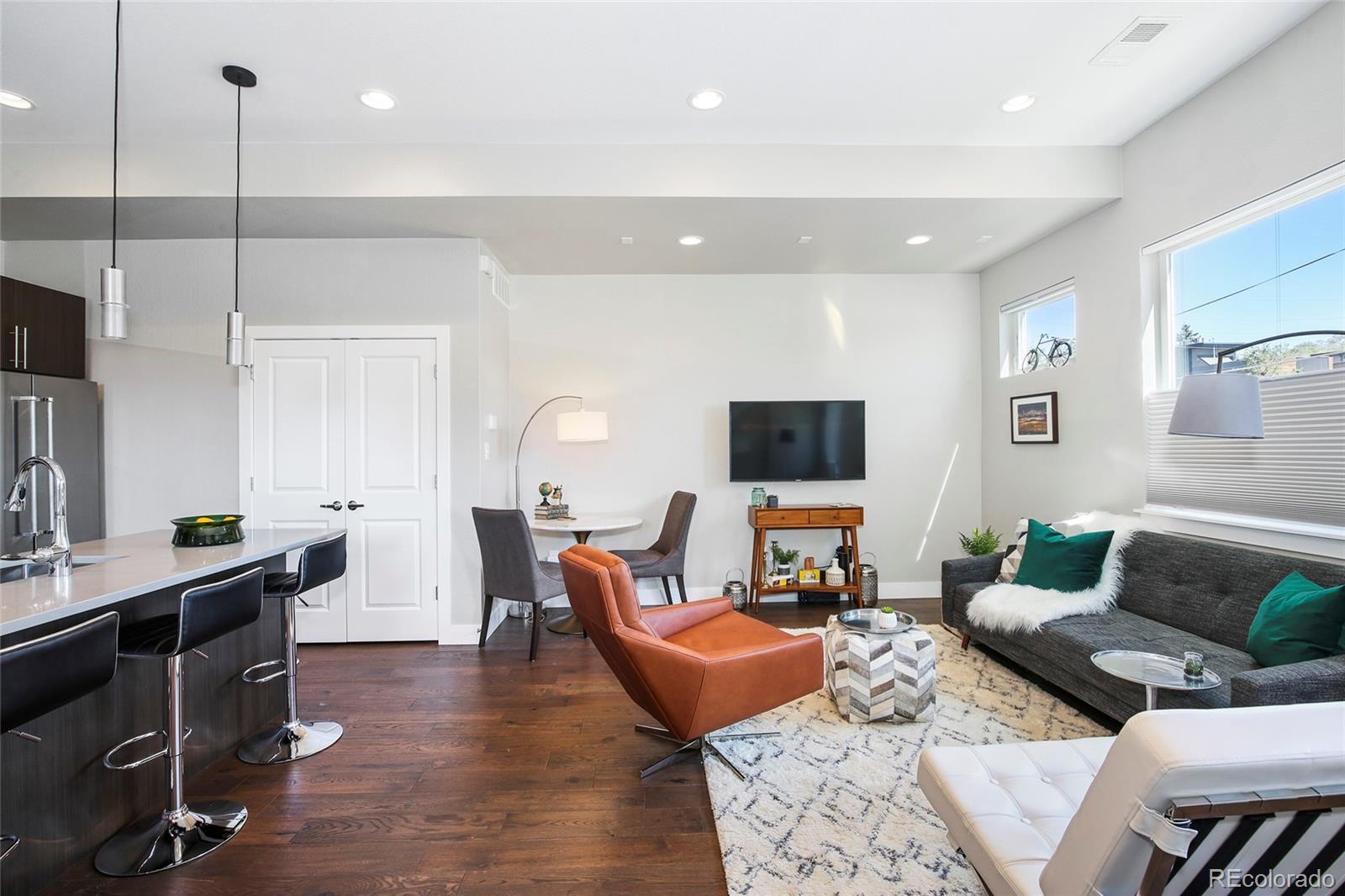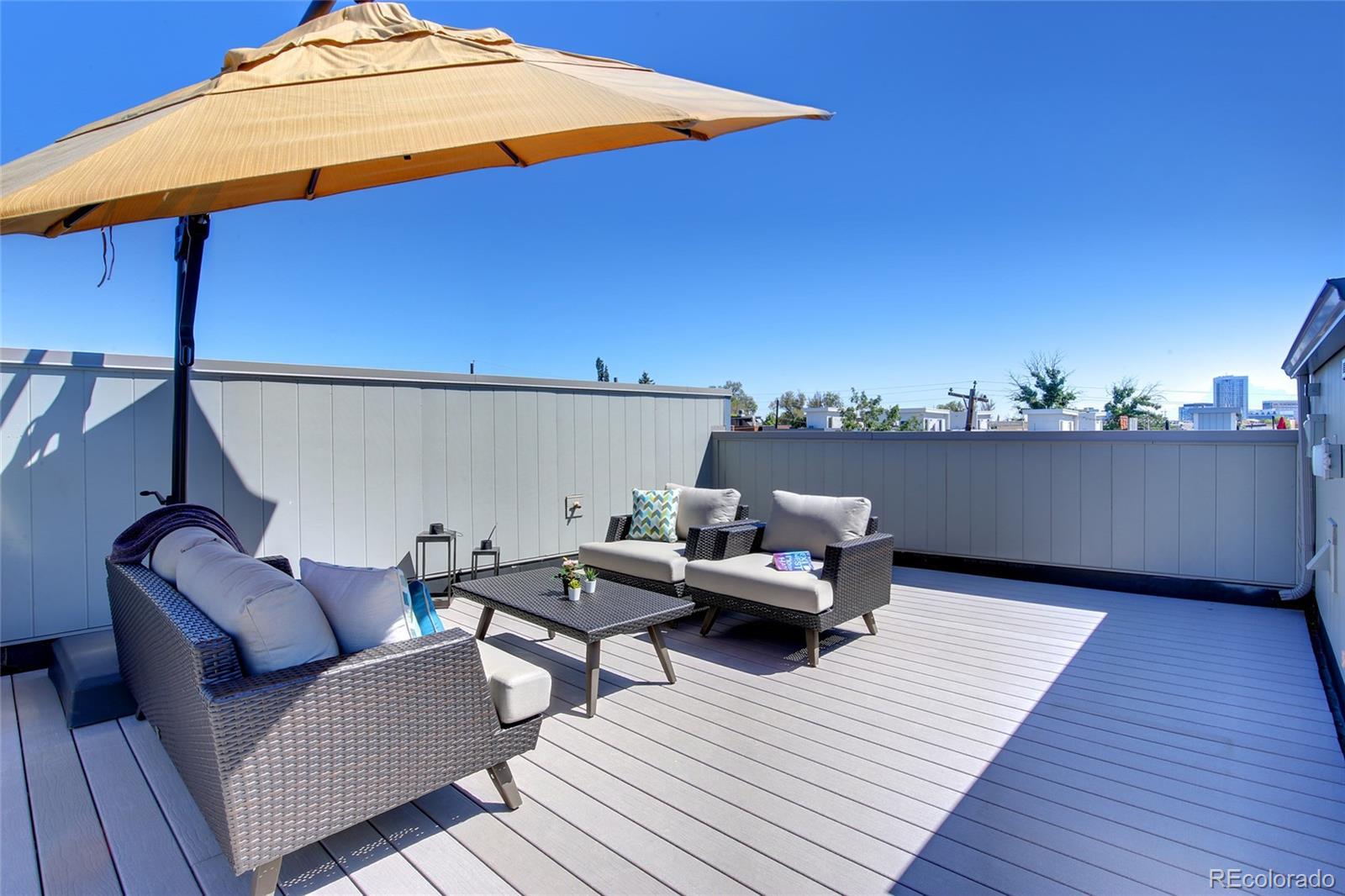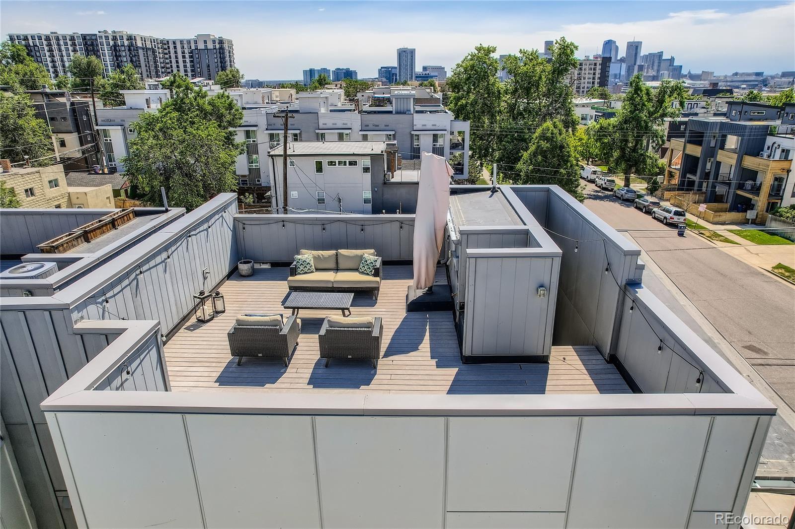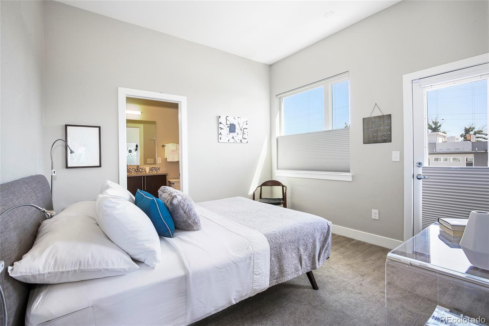 If you enjoy outdoor living and entertaining in a modern urban environment, this may be the one for you! Fabulous corner residence with both south and east exposure means all day sun and only one shared wall. These may be the most spacious and sunny decks in Jefferson Park. You'll love spending time outside on not one, but two wrap-around decks. Plus the 450sf roof top deck, which is designed to accommodate a hot tub, offers sweeping views of the Denver city skyline to the east, Mile High Stadium to the south and the mountains to the west. The main floor living area is spacious and bathed in natural light from windows on the east and south walls. Designer finishes include engineered wood floors, quartz countertops, glass mosaic backsplash and stainless steel appliances. The attached garage offers storage for all your toys and this is one of only two residences at Decatur 12 with an additional outdoor storage closet. When you're ready to retire for the night, head upstairs to the primary and junior suites, both of which offer ensuite bathrooms. You'll find the laundry closet conveniently located just outside of both bedrooms. The Jefferson Park neighborhood is central to the best of Denver including LoHi, LoDo, Larimer Square, Sloans Lake and RiNo. Easy access to I-25 just a few blocks away.